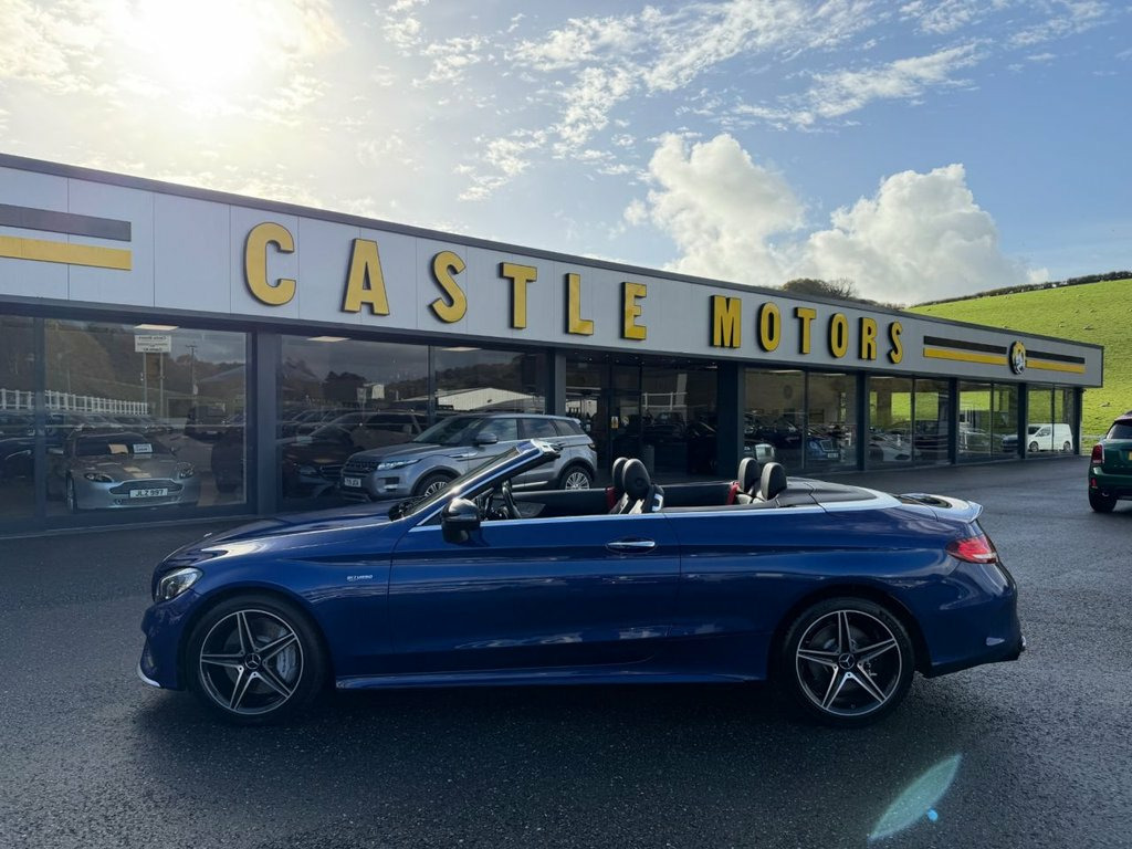 AMG V6 4Matic Convertible 367ps. Brilliant Blue Metallic with Black Artico leather and Suede, matching Blue convertible roof, Premium Package, five Spoke Black and Polished wheels, Panamerica grill, interior ambient lighting, Airscalf Neck Warmers, heated and electric memory adjustable seats, Red stitching and Red seatbelts, LED High Performance headlights, Piano Black and brushed aluminium trim, switchable AMG Performance exhaust, adjustable driving modes inc Dynamic, cruise control, climate control AC, Keyless Start and much more. 4Matic V6 Bi-Turbo 367PScovered under 42,000 miles covered, serviced before sale and beautiful throughout 18in Alloy Wheels - AMG 5 Spoke Design P, ABS - Anti-Lock Braking System, Acoustic Soft-Top - with Enhanced Climat, Active Bonnet - Pedestrian Safety Measur, Active Parking Assist including PARKTRON, Adaptive Brake Assist with Hold Function, Adaptive Brake Lamps, AIRCAP - Wind Deflector and Draught-Stop, AIRSCARF - Neck Level Heating System, Ambient Lighting, AMG Bodystyling - Front and Rear Apron a, AMG Boot Lid Spoiler in Body Colour, AMG Boot Logo in Central Screen, AMG Lettering in Diamond Grille, AMG Performance 4MATIC with Torque Distr, AMG Performance Exhaust System, AMG Ride Control Sports Suspension, Anti-Theft Protection Package, ASR - Acceleration Skid Control, ATTENTION Assist, A