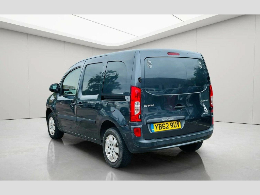 2013 Mercedes-Benz Citan 109 CDI BlueEfficiency Long Van – No VAT! Well-maintained Mercedes Citan finished in sleek black, ideal for businesbranding or daily use. Powered by the reliable 1.5 CDI diesel engine, it delivers excellent fuel economy and smooth performance. With only 98,670 warranted miles , this van has been well looked after and drives superbly.Equipped with rear-view camera, alloy wheels, 6 doors for easy access, 2 keys . Registered January 2013, (No VAT to pay!) – a huge saving for private buyers and small businesses.Viewing & test drive welcome. First to reserve buys.A tidy, economical, and practical van ready to go straight to work. Don’t miss this great-value Citan – contact us today to arrange a viewing or test drive!. 15in Wheels, ABS - Anti-Lock Braking System, Adaptive ESP - Electronic Stability Programme, Air Drying for Windscreen and Side Windows, Airbag - Driver, Aspherically Curved Mirror Glass - Exterior Mirrors, Automatically Activated Hazard Warning Lights During Emergency Braking, Battery and Alternator Management, Central Locking, Cruise Control, Daytime Running Lights, Door Mirrors - Heated and Electrically Adjustable, Doors - Sliding Side Load Door on Left Side, EBV - Electronic Brakeforce Distribution, Fill-Width Bulkhead, Front Power Windows with Convenience Feature on Drivers Side, Hill Start Assist, Hydraulic Brake Assist, Interior Light on D-Pillar with Switch-3 Settings, Load Securing Rings in Load Compartment, Lockable Glove Compartment, Pollen Filter, Power Steering - Electric, Radio, Seat Belt Warning Light and Buzzer for Drivers Seat, Seat belts - Front Height Adjustable with Two Stage Belt Force Limiters, Speed Limiter, Stowage Compartment Between Front Seats, Stowage Compartments in the Front Doors, Sun Protection in Windscreen Behind Interior Mirror, Sun Visor with Pockets on Driver and Front Passenger Side, Synthetic Floor Covering for Passenger and Load Compartment, Temperature Sensor incorporated into Exterior Mirrors, Third Brake Light, Tinted Glass All Round, Trip Computer, Twin Rear Doors - 180 Degree Opening Without Window.