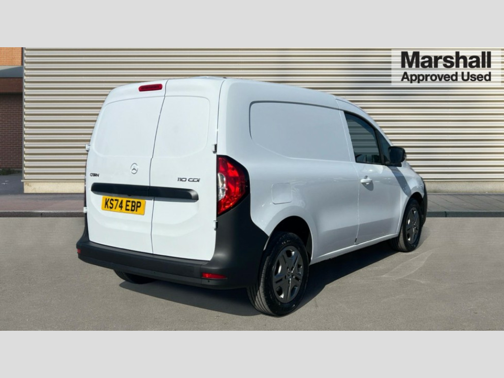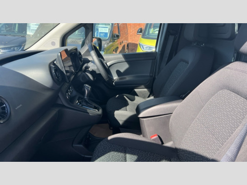 Mercedes-Benz Citan 110CDI Pro Van Auto Active lane keeping assist, Blind spot assist, Bluetooth interface with hands-free function, Communication module (LTE) for digital services, Cruise control and variable speed limiter, Instrument cluster with colour display, PAS, Pre-installation - Mercedes me connect, Rear parking aid, Reversing camera, Smartphone integration wireless with Android auto and Apple carplay, Speedometer mph and km/h, Traffic sign assist B, Trip computer, Tyre pressure monitoring front/rear, wireless, Aux input socket, Radio/MP3, USB Type C port, 180 degrees double-wing rear doors without windows, Air drying for windscreen and side windows, All round heat insulating glass, Aspherically curved exterior mirror glass, Automatic hazard light activation under emergency braking, Body coloured door handles, Daytime running lights, Electric folding and adjustable door mirrors, Electric front windows with one touch operation, Heated door mirrors, Left side sliding door, Light and rain sensors, Sliding door rail cover in vehicle colour, Third rear brake light, 12v electric socket in centre console, 6 Load securing rings on floor, Armrest with stowage compartment, Centre armrest and door centre panels in black grain, Driver and passengers sunvisors, Full length partition, Glove compartment closed in co-driver's side, Height and rake adjustable steering wheel, Interior roof lamp with switch on the D pillar and 3 way setting, LED interior light, LED load compartment lighting, Mirror in drivers sunblind, Multi function steering wheel, Overhead storage, Plastic flooring in front passenger compartment, Pollen filter, Pre-installation - Live traffic information, Pre-installation - Remote services plus, Pre-installation for digital extras, Storage compartments in doors, Attention assist B, Breakdown management, Driver and co-driver airbag, Front thorax-sidebags and window bags, Height adjustable seatbelts + pretensioners + force limiters, Mercedes-Benz emergency call system, Seat belt warning for driver and co-driver seats, Alarm, Central locking, Double lock, 17.4L AdBlue tank, 7 speed automatic transmission, Active brake assist, Brake system with ABS and ASR, ECO Start/stop function, Electronic stability programme, Enhanced payload, Fuel filter with water separator, Hill start assist, Particulate trap, Tirefit, Tyre optimised for roll resistance, Tyres without name of make