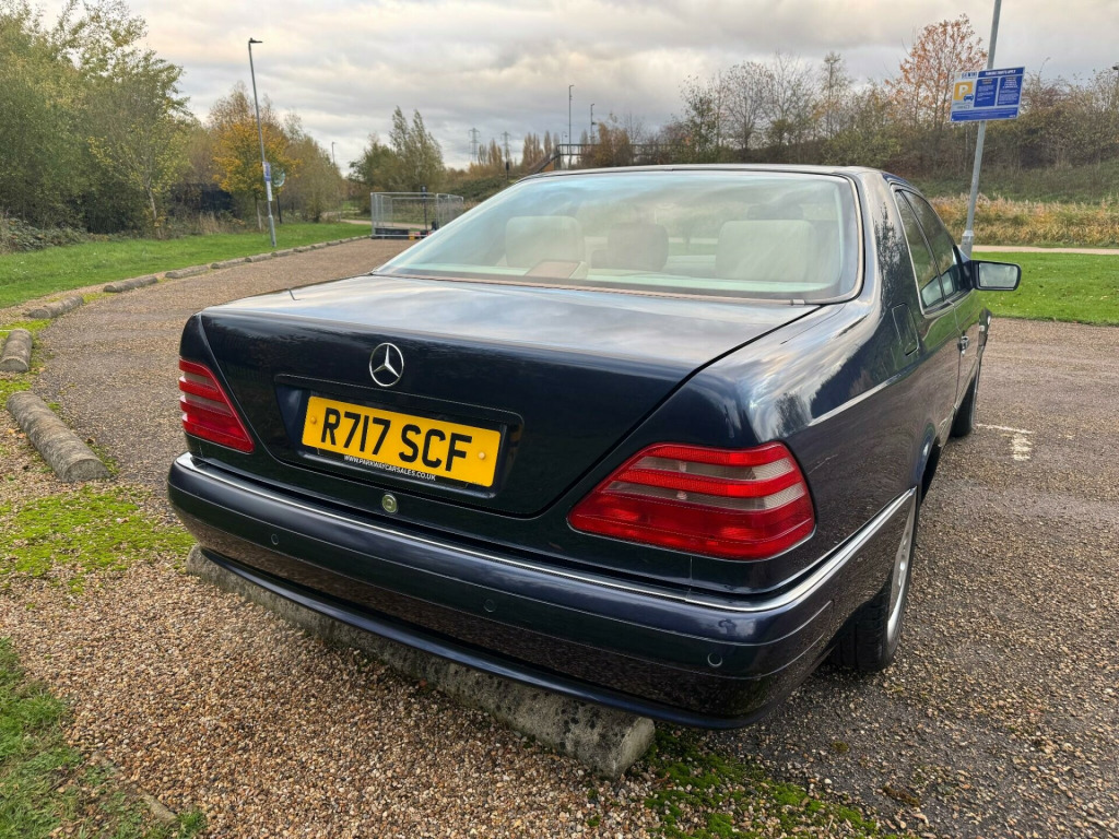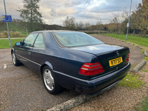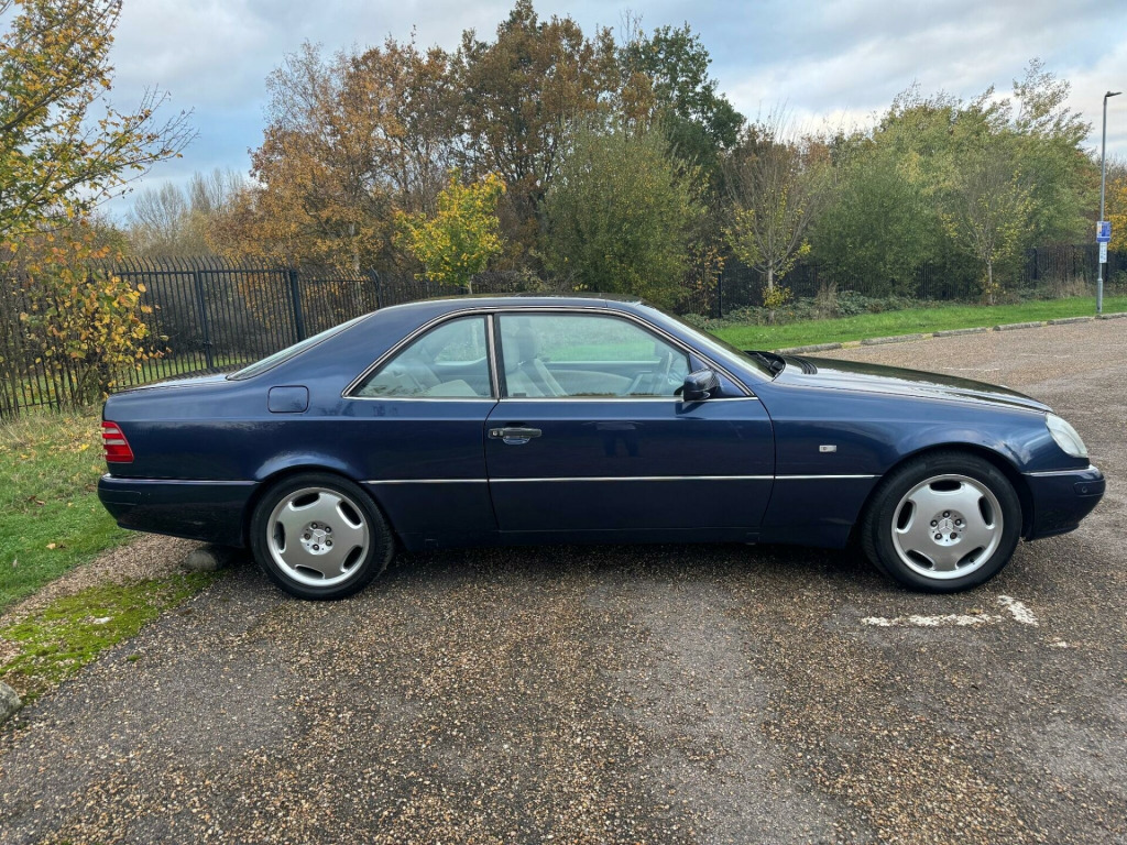 Allwood are pleased to bring to the market this lovely Mercedes CL 420. Presented in Azurite Blue with Champagnon Quartz leather, the car has the Mono Block alloy wheels, headlight wash wipe, electric front seats with 3 position memory, electric steering column adjustment, heated seats, electric raising and falling rear head restraints, wood and leather steering wheel, double glazing, plus the usual high level of specification found on high end Mercedes of this era.Originally supplied by Sunningdale Mercedes Benz where it was PDI'd on 18-05-1998 and registered on 21-05-1998 to its first owner. The first service was also at Sunningdale Mercedes in May 2000 9706 miles whereafter the next three services were completed by Pentagon Mercedes between November 2001 and September 2005 at which tim e it had completed 40907 miles. Services were carried out at 55454 and 66245 miles by two different independent specialists. 2015/17/18 saw services completed by an independent specialist with the last of these at 101775 miles. 2020/21/22 saw three further services completed up to 110317 miles. This is all of the history stamped in the original Mercedes Benz service books. However in addition there are sheets and sheets of invoices for mechanical and paintwork to help keep the car in the condition it is today.There is far too much to list here although some of the most recent show a service with Trident Mercedes specialist on 24-09-2025 at 115922 miles, a £1682 invoice for new rear springs and shock absorbers in August 2024, gearbox service, heater resistor, service and fuel pipes in May 2023 113000 miles.This example is far from your average old car and has had much care and money lavished upon it to keep the overall condition and drive as it is today.Should you require any further information please do not hesitate to contact the office and we will do our best to answer any questions you may have. Alternatively why not pay us a visit and have a look for yourself., od & leather steering wheel, rear centre armrest with storage