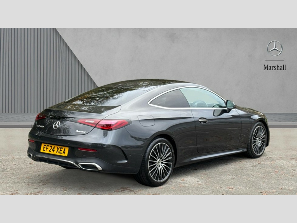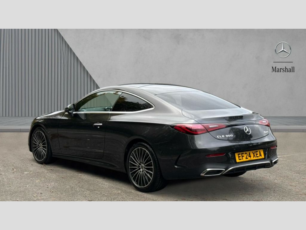 Mercedes-Benz Cle CLE 300 4Matic AMG Line Premium 2dr 9G-Tronic 5G Communications module, Active lane keeping assist, Blind spot assist, Bluetooth connection, Car wash mode, DYNAMIC SELECT with a choice of driving modes (ECO, Comfort, Sport, Sport+ and Individual), eCall emergency call system, Evasive manoeuvre support, Fingerprint scanner, Fluorescent jacket for driver, Fully digital 12.3" driver display screen, Hard-disk navigation, Hey Mercedes Voice activation, MBUX navigation premium, PAS, Passive person presence reminder, Portrait format 11.9" touchscreen central display with driver orientation, Smartphone integration with Apple CarPlay and Android auto, Traffic sign assist, Wireless charging system for mobile devices in the front, 66 litre fuel tank, 9G TRONIC plus automatic transmission, Agility control sports suspension lowered by 15 mm, Integrated starter generator Gen 2, Sporty engine sound system, Digital radio, MBUX extended functions, MBUX multimedia system, AMG bodystyling, AMG Line exterior, Auto headlights, Electric windows, Heat insulating dark tinted glass, LED 3rd brake light, LED Day time running light, LED digital light with adaptive highbeam assist plus, Panoramic sliding sunroof, Rain sensor windscreen wipers, Rear boot, Variable front intermittent wipers, 2 individual rear seats, 2 rear head restraints, 4 way lumbar support, Ambient lighting premium, AMG floor mats, AMG line interior, Belt feeder, Black fabric roof liner, Folding rear seat backrests, Front headrests, Heated front seats, Illuminated door sill panels with Mercedes Benz lettering, Instrument panel and beltlines in ARTICO manmade leather in nappa look, Leather upholstery, Multifunction sports steering wheel in nappa leather, Single front passenger seat, THERMATIC automatic climate control, Interior light pack - CLE, Keyless-Go comfort package - CLE, Memory seat pack - CLE, Mirror pack - CLE, Parking package with 360 degree camera - CLE, Stowage space package - CLE, USB package plus - CLE, Active braking assist, Anti-lock braking system (ABS), Braking system with larger brake discs on the front axle, Centre airbag, Electronic parking brake, Electronic Stability Programme (ESP), Front and rear seatbelt reminder, Hill start assist, Pedestrian protection, Pre Safe system, Tyre pressure monitoring system, Anti theft alarm system, Guard 360 degree vehicle protection plus, Increased anti-theft protection, Interior monitoring system, Anthracite linestructure lime wood trim with mixed fabric look metal finish centre console, 19" AMG multi spoke light alloy wheels painted in black with high sheen finish, Tirefit