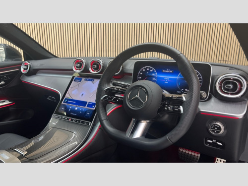 Mercedes-Benz Cle CLE 300e AMG Line Premium 2dr 9G-Tronic 5G Communications module, Acoustic presence indicator, Active lane keeping assist, Blind spot assist, Bluetooth connection, Car wash mode, DYNAMIC SELECT with a choice of driving modes (ECO, Comfort, Sport, Sport+ and Individual), eCall emergency call system, Evasive manoeuvre support, Fingerprint scanner, Fluorescent jacket for driver, Fully digital 12.3" driver display screen, Hard-disk navigation, Hey Mercedes Voice activation, MBUX augmented reality for navigation, MBUX navigation premium, PAS, Passive person presence reminder, Portrait format 11.9" touchscreen central display with driver orientation, Smartphone integration with Apple CarPlay and Android auto, Traffic sign assist, Wireless charging system for mobile devices in the front, 50 litre fuel tank, 9G TRONIC plus automatic transmission, AC charging, Charging cable for domestic socket, 5 m, straight, Comfort suspension, Integrated starter generator Gen 2, Mode 3 charging cable for wallbox and public charging stations with 5m upto 11kW, Self levelling suspension, Sporty engine sound system, Digital radio, MBUX extended functions, MBUX multimedia system, AMG bodystyling, AMG Line exterior, Auto headlights, Electric windows, Heat insulating dark tinted glass, LED 3rd brake light, LED Day time running light, LED digital light with adaptive highbeam assist plus, Panoramic sliding sunroof, Rain sensor windscreen wipers, Rear boot, Variable front intermittent wipers, 2 individual rear seats, 2 rear head restraints, 4 way lumbar support, Ambient lighting premium, Ambient lighting with projection of brand logo, AMG floor mats, AMG line interior, Belt feeder, Black fabric roof liner, Folding rear seat backrests, Front headrests, Heated front seats, Heated steering wheel, Illuminated door sill panels with Mercedes Benz lettering, Instrument panel and beltlines in ARTICO manmade leather in nappa look, Leather upholstery, Multifunction sports steering wheel in nappa leather, Power height and reach adjustable steering column, Single front passenger seat, THERMATIC automatic climate control, Interior light pack - CLE, Keyless-Go comfort package - CLE, Memory seat pack - CLE, Mirror pack - CLE, Parking package with 360 degree camera - CLE, Stowage space package - CLE, USB package plus - CLE, Active braking assist, Anti-lock braking system (ABS), Braking system with larger brake discs on the front axle, Centre airbag, Dual front airbags, Electric parking brake, Electronic Stability Programme (ESP), Front and rear seatbelt reminder, Hill start assist, Pedestrian protection, Pre Safe system, Rear side airbags, Tyre pressure monitoring system, Anti theft alarm system, Guard 360 degree vehicle protection plus, Increased anti-theft protection, Interior monitoring system, Anthracite linestructure lime wood trim with mixed fabric look metal finish centre console, 19" AMG multi spoke light alloy wheels painted in black with high sheen finish, Tirefit