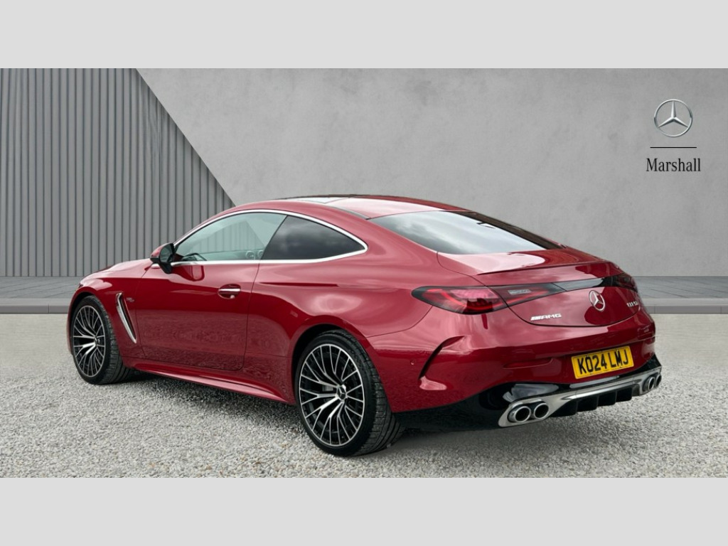 Mercedes-Benz Cle CLE 53 4Matic+ AMG Premium 2dr 9G-Tronic 5G Communications module, Active lane keeping assist, Attention assist, Blind spot assist, Bluetooth connection, Car wash mode, DYNAMIC SELECT with driving programs (Slippery, Comfort, Sport, Sport+ and Individual), eCall emergency call system, Evasive manoeuvre support, Fingerprint scanner, Fluorescent jacket for driver, Fully digital 12.3" driver display screen, Hard-disk navigation, Hey Mercedes Voice activation, High-resolution 11.9" multimedia colour display, MBUX navigation premium, PAS, Passive person presence reminder, Rear axle steering, Remote services, Service indicator assist, Smartphone integration with Apple CarPlay and Android auto, Speed limit assist, SPEEDTRONIC cruise control with variable speed limiter, Traffic sign assist, Wireless charging system for mobile devices in the front, 66 litre fuel tank, 9G TRONIC plus automatic transmission, AMG Ride Control suspension with adjustable damping, Integrated starter generator Gen 2, Petrol Particulate Filter (PPF), Sporty engine sound system, Digital radio, MBUX extended functions, MBUX multimedia system, Adaptive brake lights, AMG bodystyling, AMG fuel cap, AMG specific radiator grille with vertical struts in high gloss chrome and AMG logo, AMG spoiler lip, Auto headlights, Electric windows, Exterior mirror - Ambient lighting with projection of brand logo, Flared wheel arches, Heat insulating dark tinted glass, LED 3rd brake light, LED Day time running light, LED digital light with adaptive highbeam assist plus, LED tail lights, Mercedes AMG exterior, Panoramic sliding sunroof, Rain sensor windscreen wipers, Rear boot, Variable front intermittent wipers, 2 individual rear seats, 2 rear head restraints, 4 way lumbar support, Ambient lighting premium, AMG floor mats, AMG illuminated door sills with 'AMG' lettering and exchangeable cover, AMG performance steering wheel in nappa leather with AMG steering wheel button, Automatic child seat recognition sensor, Belt feeder, Black fabric roof liner, Folding rear seat backrests, Front headrests, Heated front seats, Instrument panel and beltlines in ARTICO manmade leather in nappa look, Mercedes AMG interior, Multifunction sports steering wheel in nappa leather, Single front passenger seat, Steering - Sport direct-steer system with speed sensitive steering, THERMATIC automatic climate control, Interior light pack - CLE, Keyless-Go comfort package - CLE, Memory pack - CLE, Mirror pack - CLE, Parking package with 360 degree camera - CLE, Stowage space package - CLE, USB package plus - CLE, Active bonnet, Active braking assist, Adaptive brake system with hold function and brake drying function, Anti-lock braking system (ABS), Automatic front passenger airbag deactivation, Braking system with larger brake discs on the front axle, Centre airbag, Dual stage airbags - driver and front passenger, side airbag in front seats,driver knee airbag, pelvis airbag and window bag for driver, Electronic parking brake, Electronic Stability Programme (ESP), First aid kit and warning triangle, Front and rear seatbelt reminder, Grey painted brake callipers, Hill start assist, ISOFIX child seat attachment points with top tether in rear, Pedestrian protection, Pre Safe system, Seat occupancy sensor for rear seats, Tyre pressure monitoring system, Anti theft alarm system, Central locking with interior switch, automatic locking and crash sensor with emergency opening function, Guard 360 degree vehicle protection plus, Increased anti-theft protection, Interior monitoring system, URBAN GUARD vehicle protection (Thatcham Category 1) consisting of break-in, anti-theft alarm system (ATA),interior monitoring and tow-away protection, ARTICO leather in dashboard with contrast stitching, Black open-pore aluminium lines wood trim with mixed fabric look metal finish centre console, 20" AMG Y spoke light alloy wheels painted in matt black and with high-sheen finish, Tirefit