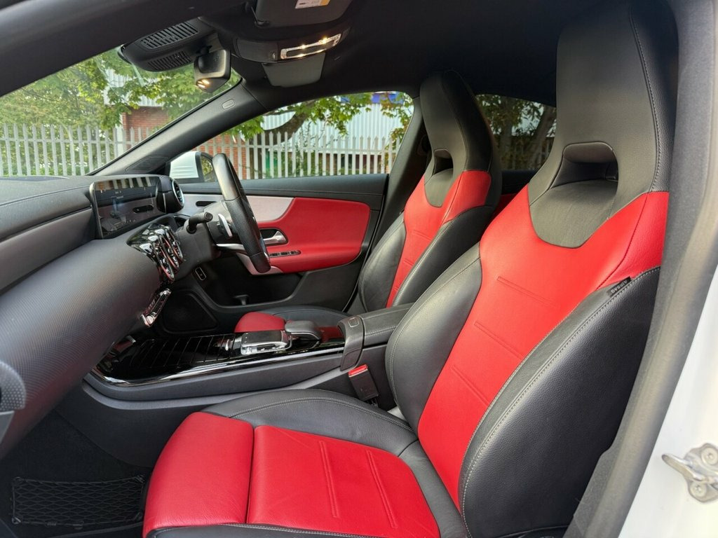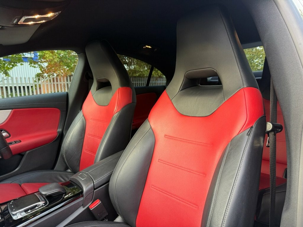 HERE WE HAVE A STUNNING LOW MILEAGE MERCEDES CLA BACKED WITH ITS FULL SERVICE HISTORY INCLUDING A RECENT SERVICE AND 12 MONTHS MOT, VERY WELL MAINTAINED, 2 FORMER OWNERS FROM NEW, WARRANTED LOW MILEAGE, VERY ECONOMICAL, LOVELY SPEC++RED AND BLACK LEATHER INTERIOR++HEATED SEATS++VIRTUAL DASHBAORD++APPLE CARPLAY++ANDROID AUTO++REVERSE CAMERA++PARKING SENSORS FRONT AND REAR++CRUISE CONTROL++LED AUTO HEADLIGHTS++LANE ASSIST++12 MONTHS AA BREAKDOWN COVER INCLUDED, WARRANTY INCLUDED, FINANCE AVAILABLE APPLY WITHIN, HPI CLEAR, OPEN 7 DAYS A WEEK, 2 KEYS, ULEZ AND CLEAN AIR ZONE COMPLIANT 18in Alloy Wheels - AMG 5-Twin-Spoke Des, ABS - Anti-Lock Braking System with BAS , Active Bonnet - Pedestrian Safety Measur, Active Brake ASSIST, Active Lane Keeping Assist, Adaptive Brake Lights, Air Conditioning - Air Vents with Surrou, Air Conditioning - THERMOTRONIC Luxury A, Airbag - Kneebag for Driver, Airbags - Dual-Stage - Driver and Front , Airbags - Head and Sidebags - Driver and, Airbags - Windowbags for Driver and Fron, Alarm System with Immobiliser and Interi, AMG Bodystyling - Front and Rear Apron a, ATTENTION Assist - Monitors Steering Beh, Automatic Child Seat Recognition Sensor , Beltline Strips and Weather Strip in Chr, Brake Calipers - Mercedes-Benz Lettering, Brake-Pad W