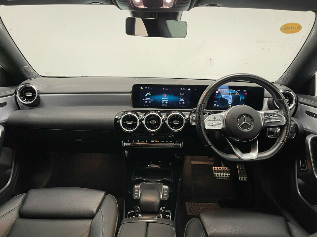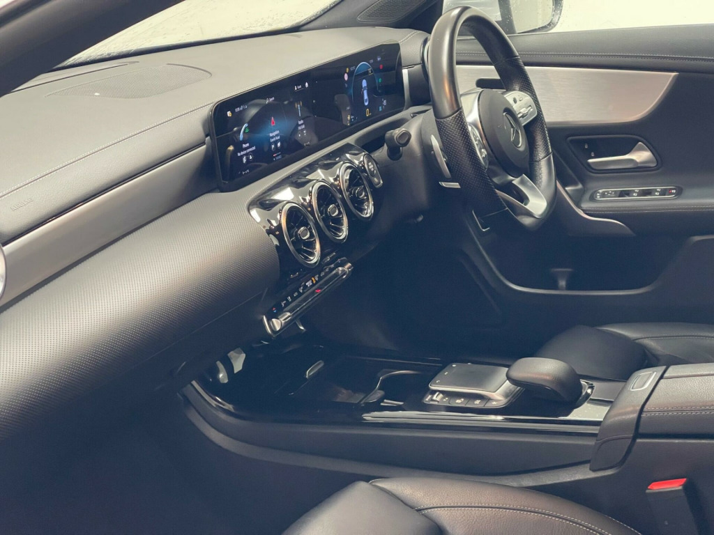 This 2021 Mercedes Benz CLA180 AMG Line is a superb example, having been owned by just one discerning individual. This stylish saloon boasts a 1.3 litre petrol engine and meets Euro 6 emissions standards. Inside, you'll find a premium experience with heated front seats for comfort, and the Mercedes Benz Sound System delivering 100W of clear audio. Stay connected and entertained with Bluetooth connectivity and seamless smartphone integration, including Apple CarPlay and Android Auto. The striking exterior is enhanced by LED High Performance headlamps with integrated daytime running lights, ensuring excellent visibility.With an impressive fuel economy of 46 miles per gallon, this CLA180 AMG Line offers an economical driving experience. Its low CO2 emissions also indicate a more environmentally conscious choice compared to many similar vehicles. This combination of efficient performance, advanced technology, and luxurious comfort makes this Mercedes Benz CLA a truly desirable option. in alloy wheels - amg 5-twin-spoke design - painted titanium grey with a high-sheen finish, abs - anti-lock braking system with bas - brake assist, amg bodystyling, attention assist - monitors steering behaviour and can help alert to long journey fatigue, active bonnet - pedestrian safety measure which detects an impact and raises bonnet by 65mm, active brake assist, active lane keeping assist, adaptive brake lights, air conditioning - air vents with surround in silver chrome, air conditioning - thermotronic luxury automatic climate control - two-zone with display, airbag - kneebag for driver, airbags - dual-stage - driver and front passenger, airbags - head and sidebags - driver and front passenger, airbags - windowbags for driver and front passenger, alarm system with immobiliser and interior protection - thatcham category 1, automatic child seat recognition sensor - pressure sensor, beltline strips - chrome, bluetooth connectivity, bonnet with power domes, brake-pad wear warning indicator, braking - adaptive brake assist with hold function and hill start assist, brushed stainless steel sports pedals with rubber studs, bumpers - body coloured, car wash mode, centre armrest - front with stowage, childproof locks - manually operated for rear doors and electrically operated for rear power windows, chrome weather strip, crash-responsive emergency lighting, cruise control with limiter, dab digital radio tuner, diamond radiator grille with pins in chrome - silver-painted louvre and insert in chrome, direct-steer speed sensitive steering, door handles - body coloured, door mirrors - electrically adjustable and heated with integrated led indicators, door sills - front door sills with mercedes-benz lettering, dynamic select with a choice of driving modes - eco-comfort-sport and individual, esp - electronic stability programme with asr - acceleration skid control, esp curve dynamic assist, electric parking brake, exhaust system - 2 visible tailpipe trim elements and rear apron with trim in chrome, first aid kit and warning triangle, floor mats with stitched amg lettering, glass - rear windscreen - heated with timer control, hard-disk navigation, headlamp assist - automatic headlamp activation, headlamps - led high performance with integrated led daytime running lights, heated front seats, hey mercedes - voice activation, high level third brake light - led, isofix and top-tether child seat fixing points in rear - two outer seats, instrument cluster - fluid level warning indicator for fuel - oil - coolant and washer fluid, instrument cluster - outside temperature display, instrument cluster - service indicator assist, instrument cluster - trip computer in multi-function display with current fuel consumption indicator, instrument display - 7in display, interior mirror with reading lamps in black and frameless, keyless-go starting function, led rear tail lights, lamp failure indicator, leather package, light and sight package, live traffic and map updates, luggage nets on driver and front passengers backrests, mbux multimedia system, media display - 10.25-inch with touchscreen, mercedes me connect - standard services, mercedes-benz sound system - 100w, mirror package, owners manual and service booklet - english, parking package, pre-installation for mercedes-benz link, pre-installation for private car share, pre-installation for vehicle monitoring, pre-installation for vehicle set-up, privacy glass, radio aerial integrated into windshields front and rear, rain-sensing windscreen wipers with two sensitivity settings, rear axle - multi-link, rear fog light, remote central locking and crash sensor with emergency opening function, roof lining - black, seat belt reminder - front and rear, seat belts - black, seat belts - rear three-point - 3, seat comfort package, seat occupancy sensor - front passenger seat, seats - rear seat backrests - split folding 40-20-40, smartphone integration comprising apple carplay and android auto, speed limit assist, sports seats with fixed head restraints, steering column - manually adjustable for height and reach, steering wheel - 3-spoke multi-function - trimmed in leather with perforated leather in grip area and flattened bottom section, steering wheel - galvanised shift paddles, storage compartment in centre console with retractable cover, summer tyres, sun visors with illuminated vanity mirrors, suspension - lowered comfort suspension, tirefit tyre-sealant kit, touchpad on centre console, trim - light longitudinal-grain aluminium, twin cup holders in front, tyre pressure monitoring system, urban guard vehicle protection, usb - type c - 2 ports in rear of stowage compartment, usb - type c - port in front stowage compartment, window line - chrome, windows - electric windows - 4, wireless charging