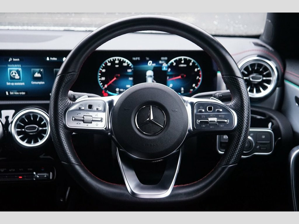 Prestige Car Supermarket in York presents this highly desirable and stylish 2023 Mercedes-Benz CLA180 AMG Line (Executive) Shooting Brake. Finished in optional Digital White metallic paintwork, costing £625.00, and featuring a sporting Black ARTICO Man-Made Leather and MICROCUT Microfibre interior with Contrasting Topstitching in Red and a Black Roof Lining, this automatic petrol estate delivers an efficient 136 horsepower. It rides on 18in AMG 5-Twin Spoke Light alloy wheels, painted in Black with a High-Sheen Finish, and features AMG Bodystyling and the Night Package, with High Gloss Black Beltline Strips and a High-Gloss Black Window Line. Illumination is provided by LED High Performance Headlamps and LED Tail Lamps, with Interior 64-Colour Ambient Lighting. Step inside the sophisticated cabin to find Heated Sports Seats, a 3-Spoke Multifunction Leather Steering Wheel with Galvanised Shift Paddles, and Thermotronic Luxury Automatic Dual-Zone Climate Control. Technology is cutting-edge with the 10.25in Digital Instrument Display, 10.25in Touchscreen Media Display, MBUX Hard-Disk Navigation with "Hey Mercedes" Voice Activation, and Smartphone Integration. Convenience and safety are paramount with KEYLESS-GO Starting Function, Active Lane Keeping Assist, the Parking Package, Privacy Glass, and GUARD 360 Vehicle Protection, ensuring a secure and well-equipped drive. ARTICO Man-Made Leather-MICROCUT Microfi, Digital White, 18in Alloy Wheels - AMG 5-Twin Spoke - L, ABS - Anti-Lock Braking System with BAS , AMG Bodystyling, ATTENTION Assist, Active Bonnet - Pedestrian Safety Measur, Active Brake Assist, Active Lane Keeping Assist, Adaptive Brake Lights, Air Conditioning - Air Vents with Surrou, Air Conditioning - THERMOTRONIC Luxury A, Airbag - Kneebag for Driver, Airbags - Dual-Stage - Driver and Front , Airbags - Head and Sidebags - Driver and, Airbags - Windowbags for Driver and Fron, Alarm System with Immobiliser and Interi, Automatic Child Seat Recognition Sensor , Beltline Strips - High Gloss Black, Bonnet with Power Domes, Brake Calipers with Merced