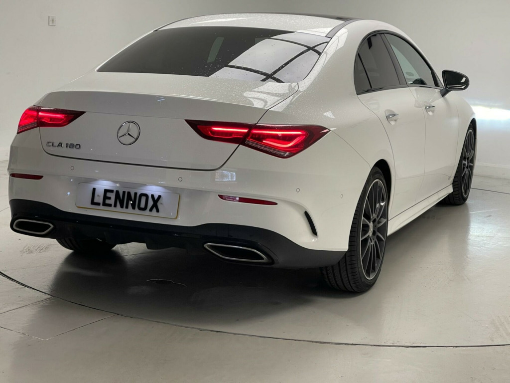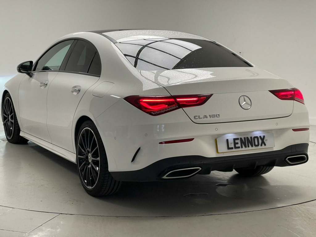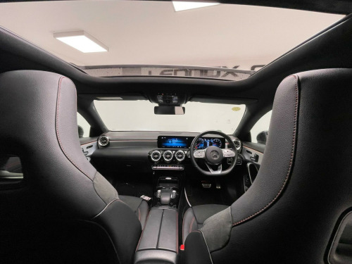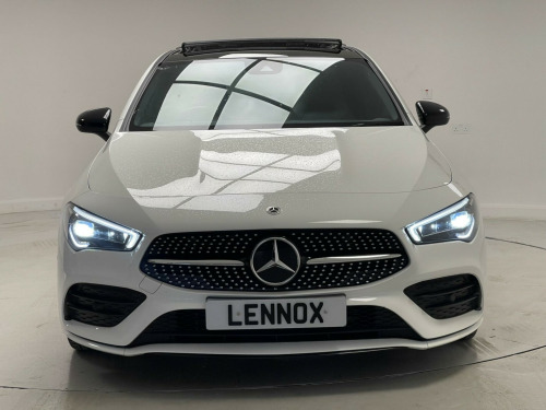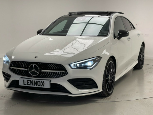 This 2023 Mercedes Benz CLA180 AMG Line Night Edition (Premium Plus) is a superb example, having had only one owner since new. This stylish vehicle boasts a 1.3 litre petrol engine and meets Euro 6 emissions standards. It comes equipped with a premium Mercedes Benz sound system delivering 100W through six speakers, and THERMOTRONIC luxury automatic climate control with a two zone display for ultimate comfort. Enjoy seamless connectivity with smartphone integration, including Apple CarPlay and Android Auto, and experience the open air with a panoramic opening sunroof. The MULTIBEAM LED headlamps with adaptive highbeam assist ensure excellent visibility in all conditions.The AMG Line Night Edition trim enhances the already striking design of this CLA, setting it apart from other vehicles. The inclusion of the Premium Plus package further elevates the experience, offering a suite of advanced features that demonstrate a commitment to luxury and cutting edge technology. This Mercedes Benz CLA represents a refined driving experience, blending performance, comfort, and sophisticated design. in alloy wheels - amg multi-spoke design - painted black with a high-sheen rim flange, abs - anti-lock braking system with bas - brake assist, amg bodystyling, attention assist, active bonnet - pedestrian safety measure which detects an impact and raises bonnet by 65mm, active brake assist, active lane keeping assist, adaptive brake lights, air conditioning - air vents with surround in silver chrome, air conditioning - thermotronic luxury automatic climate control - two-zone with display, airbag - kneebag for driver, airbags - dual-stage - driver and front passenger, airbags - head and sidebags - driver and front passenger, airbags - windowbags for driver and front passenger, alarm system with immobiliser and interior protection - thatcham category 1, automatic child seat recognition sensor - pressure sensor, beltline strips - high gloss black, bonnet with power domes, brake calipers with mercedes-benz lettering on front, brake-pad wear warning indicator, braking - adaptive brake assist with hold function and hill start assist, brushed stainless steel sports pedals with rubber studs, bumpers - body coloured, car wash mode, centre armrest - front with stowage, childproof locks - manually operated for rear doors and electrically operated for rear power windows, crash-responsive emergency lighting, cruise control with limiter, dab digital radio tuner, diamond radiator grille with pins in chrome - single silver louvre in high-gloss black, direct-steer system, door handles - body coloured, door mirrors - electrically adjustable and heated with integrated led indicators, door sills - illuminated front door sills with changeable cover, dual bluetooth interfaces, dynamic select with a choice of driving modes - eco-comfort-sport and individual, esp - electronic stability programme with asr - acceleration skid control, esp curve dynamic assist, electric parking brake, exhaust system - 2 visible tailpipe trim elements and rear apron with trim in chrome, first aid kit and warning triangle, floor mats with stitched amg lettering, glass - rear windscreen - heated with timer control, headlamp assist - automatic headlamp activation, heated front seats, hey mercedes - voice activation, high level third brake light - led, isofix and top-tether child seat fixing points in rear - two outer seats, instrument cluster - fluid level warning indicator for fuel - oil - coolant and washer fluid, instrument cluster - outside temperature display, instrument cluster - service indicator assist, instrument cluster - trip computer in multi-function display with current fuel consumption indicator, instrument display - 10.25in digital display, interior 64-colour ambient lighting, interior lighting - mirror with reading lamps in black - frameless, keyless-go package, keyless-go starting function, led tail lamps, lamp failure indicator, leather package, light and sight package, live traffic and map updates, luggage nets on driver and front passengers backrests, mbux multimedia system, mbux with hard-disk navigation, multibeam led headlamps with adaptive highbeam assist, media display - 10.25-inch with touchscreen, mercedes me - remote services, mercedes me connect - standard services, mercedes-benz sound system - output of 100w from six speakers, mirror package, navigation services, night package, owners manual - english, panoramic roof, parking package, power steering - speed sensitive, pre-installation for mercedes-benz link, pre-installation for private car share, privacy glass, radio aerial integrated into windshields front and rear, rain-sensing windscreen wipers with two sensitivity settings, rear armrest with two integral cup holders for drinks, rear axle - multi-link, rear fog lamp, remote central locking and crash sensor with emergency opening function, roof lining - black, seat belt reminder - front and rear, seat belts - black, seat belts - rear three-point - 3, seat comfort package, seat occupancy sensor - front passenger seat, seats - rear seat backrests - split folding 40-20-40, smartphone integration including apple carplay and android auto, speed limit assist, sports seats with fixed head restraints, steering column - manually adjustable for height and reach, steering wheel - 3-spoke multifunction - trimmed in leather with perforated leather in grip area and flattened bottom section, steering wheel - galvanised shift paddles, stowage compartment in centre console with retractable cover, summer tyres, sun visors with illuminated vanity mirrors, suspension - lowered comfort suspension, tirefit tyre-sealant kit, touchpad on centre console, traffic sign assist, trim - light longitudinal-grain aluminium, twin cup holders in front, tyre pressure monitoring system, urban guard vehicle protection with anti-theft alarm system, usb - type c - ports - two in stowage compartment and one in front of centre console, window line - high-gloss b