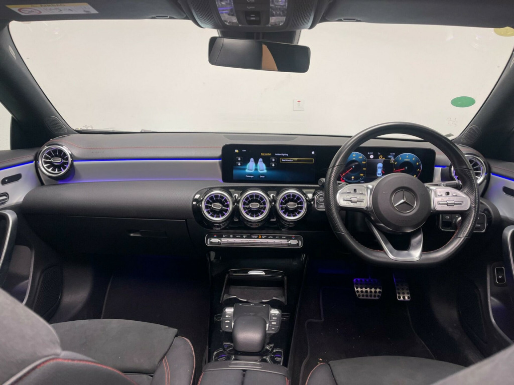 This 2023 Mercedes Benz CLA180 AMG Line Night Edition (Premium Plus) is a superb example, having had only one owner from new. This stylish saloon features a 1.3 litre petrol engine and meets Euro 6 emissions standards. It boasts a host of premium features including Smartphone Integration with Apple CarPlay and Android Auto, allowing seamless connection to your digital life. The Headlamp Assist automatically activates the headlights, while the comprehensive Parking Package, complete with front and rear sensors and a rear camera, makes manoeuvring effortless. Enjoy the open air with the expansive Panoramic Roof, and benefit from the convenience of the KEYLESS-GO Package for keyless entry.The AMG Line Night Edition trim enhances the already striking design of this CLA. The inclusion of the Premium Plus package signifies a higher level of specification, offering an elevated driving experience. These carefully selected features and the single owner provenance demonstrate a vehicle that has been well cared for and offers a superior proposition compared to other similar models on the market. in alloy wheels - amg multi-spoke design - painted black with a high-sheen rim flange, abs - anti-lock braking system with bas - brake assist, amg bodystyling, attention assist, active bonnet - pedestrian safety measure which detects an impact and raises bonnet by 65mm, active brake assist, active lane keeping assist, adaptive brake lights, air conditioning - air vents with surround in silver chrome, air conditioning - thermotronic luxury automatic climate control - two-zone with display, airbag - kneebag for driver, airbags - dual-stage - driver and front passenger, airbags - head and sidebags - driver and front passenger, airbags - windowbags for driver and front passenger, alarm system with immobiliser and interior protection - thatcham category 1, automatic child seat recognition sensor - pressure sensor, beltline strips - high gloss black, bonnet with power domes, brake calipers with mercedes-benz lettering on front, brake-pad wear warning indicator, braking - adaptive brake assist with hold function and hill start assist, brushed stainless steel sports pedals with rubber studs, bumpers - body coloured, car wash mode, centre armrest - front with stowage, childproof locks - manually operated for rear doors and electrically operated for rear power windows, crash-responsive emergency lighting, cruise control with limiter, dab digital radio tuner, diamond radiator grille with pins in chrome - single silver louvre in high-gloss black, direct-steer system, door handles - body coloured, door mirrors - electrically adjustable and heated with integrated led indicators, door sills - illuminated front door sills with changeable cover, dual bluetooth interfaces, dynamic select with a choice of driving modes - eco-comfort-sport and individual, esp - electronic stability programme with asr - acceleration skid control, esp curve dynamic assist, electric parking brake, exhaust system - 2 visible tailpipe trim elements and rear apron with trim in chrome, first aid kit and warning triangle, floor mats with stitched amg lettering, glass - rear windscreen - heated with timer control, headlamp assist - automatic headlamp activation, heated front seats, hey mercedes - voice activation, high level third brake light - led, isofix and top-tether child seat fixing points in rear - two outer seats, instrument cluster - fluid level warning indicator for fuel - oil - coolant and washer fluid, instrument cluster - outside temperature display, instrument cluster - service indicator assist, instrument cluster - trip computer in multi-function display with current fuel consumption indicator, instrument display - 10.25in digital display, interior 64-colour ambient lighting, interior lighting - mirror with reading lamps in black - frameless, keyless-go package, keyless-go starting function, led tail lamps, lamp failure indicator, leather package, light and sight package, live traffic and map updates, luggage nets on driver and front passengers backrests, mbux multimedia system, mbux with hard-disk navigation, multibeam led headlamps with adaptive highbeam assist, media display - 10.25-inch with touchscreen, mercedes me - remote services, mercedes me connect - standard services, mercedes-benz sound system - output of 100w from six speakers, mirror package, navigation services, night package, owners manual - english, panoramic roof, parking package, power steering - speed sensitive, pre-installation for mercedes-benz link, pre-installation for private car share, privacy glass, radio aerial integrated into windshields front and rear, rain-sensing windscreen wipers with two sensitivity settings, rear armrest with two integral cup holders for drinks, rear axle - multi-link, rear fog lamp, remote central locking and crash sensor with emergency opening function, roof lining - black, seat belt reminder - front and rear, seat belts - black, seat belts - rear three-point - 3, seat comfort package, seat occupancy sensor - front passenger seat, seats - rear seat backrests - split folding 40-20-40, smartphone integration including apple carplay and android auto, speed limit assist, sports seats with fixed head restraints, steering column - manually adjustable for height and reach, steering wheel - 3-spoke multifunction - trimmed in leather with perforated leather in grip area and flattened bottom section, steering wheel - galvanised shift paddles, stowage compartment in centre console with retractable cover, summer tyres, sun visors with illuminated vanity mirrors, suspension - lowered comfort suspension, tirefit tyre-sealant kit, touchpad on centre console, traffic sign assist, trim - light longitudinal-grain aluminium, twin cup holders in front, tyre pressure monitoring system, urban guard vehicle protection with anti-theft alarm system, usb - type c - ports - two in stowage compartment and one in front of centre console, window line - high-gloss 