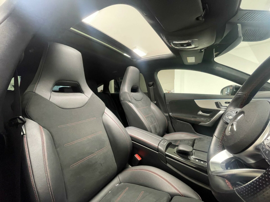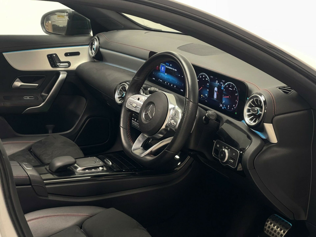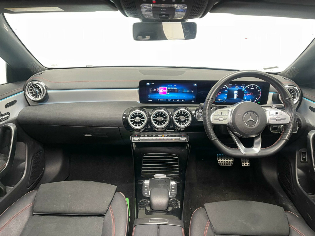 This 2023 Mercedes-Benz CLA180 AMG Line Night Edition (Premium Plus) is a superb example, having been cherished by just one owner from new. It boasts a responsive 1.3 litre petrol engine, meeting Euro 6 emissions standards, and is presented in the striking AMG Line Night Edition trim. This particular model comes equipped with the advanced MULTIBEAM LED Headlamps, which feature Adaptive Highbeam Assist for optimal visibility, and automatic headlamp activation for convenience. Inside, you'll find the comfort of heated front seats and the ease of KEYLESS-GO entry, allowing you to step into this sophisticated saloon and drive away effortlessly.The inclusion of Dual Bluetooth Interfaces offers seamless connectivity for your devices, enhancing your driving experience. These premium features, combined with the car's single ownership and recent registration, set this Mercedes-Benz CLA apart from others. The combination of the powerful yet efficient engine, the luxurious AMG Line Night Edition styling, and the advanced technology package makes this a truly desirable vehicle for anyone seeking a refined and well equipped compact executive car. in alloy wheels - amg multi-spoke design - painted black with a high-sheen rim flange, abs - anti-lock braking system with bas - brake assist, amg bodystyling, attention assist, active bonnet - pedestrian safety measure which detects an impact and raises bonnet by 65mm, active brake assist, active lane keeping assist, adaptive brake lights, air conditioning - air vents with surround in silver chrome, air conditioning - thermotronic luxury automatic climate control - two-zone with display, airbag - kneebag for driver, airbags - dual-stage - driver and front passenger, airbags - head and sidebags - driver and front passenger, airbags - windowbags for driver and front passenger, alarm system with immobiliser and interior protection - thatcham category 1, automatic child seat recognition sensor - pressure sensor, beltline strips - high gloss black, bonnet with power domes, brake calipers with mercedes-benz lettering on front, brake-pad wear warning indicator, braking - adaptive brake assist with hold function and hill start assist, brushed stainless steel sports pedals with rubber studs, bumpers - body coloured, car wash mode, centre armrest - front with stowage, childproof locks - manually operated for rear doors and electrically operated for rear power windows, crash-responsive emergency lighting, cruise control with limiter, dab digital radio tuner, diamond radiator grille with pins in chrome - single silver louvre in high-gloss black, direct-steer system, door handles - body coloured, door mirrors - electrically adjustable and heated with integrated led indicators, door sills - illuminated front door sills with changeable cover, dual bluetooth interfaces, dynamic select with a choice of driving modes - eco-comfort-sport and individual, easypack tailgate, esp - electronic stability programme with asr - acceleration skid control, esp curve dynamic assist, electric parking brake, exhaust system - 2 visible tailpipe trim elements and rear apron with trim in chrome, first aid kit and warning triangle, floor mats with stitched amg lettering, glass - rear windscreen - heated with timer control, headlamp assist - automatic headlamp activation, heated front seats, hey mercedes - voice activation, high level third brake light - led, isofix and top-tether child seat fixing points in rear - two outer seats, instrument cluster - fluid level warning indicator for fuel - oil - coolant and washer fluid, instrument cluster - outside temperature display, instrument cluster - service indicator assist, instrument cluster - trip computer in multi-function display with current fuel consumption indicator, instrument display - 10.25in digital display, interior 64-colour ambient lighting, interior lighting - mirror with reading lamps in black - frameless, keyless-go package, keyless-go starting function, led tail lamps, lamp failure indicator, leather package, light and sight package, live traffic and map updates, luggage nets on driver and front passengers backrests, mbux multimedia system, mbux with hard-disk navigation, multibeam led headlamps with adaptive highbeam assist, media display - 10.25-inch with touchscreen, mercedes me - remote services, mercedes me connect - standard services, mercedes-benz sound system - output of 100w from six speakers, mirror package, navigation services, night package, owners manual - english, panoramic roof, parking package, power steering - speed sensitive, pre-installation for mercedes-benz link, pre-installation for private car share, privacy glass, radio aerial integrated into windshields front and rear, rain-sensing windscreen wipers with two sensitivity settings, rear armrest with two integral cup holders for drinks, rear axle - multi-link, rear fog lamp, remote central locking and crash sensor with emergency opening function, roof lining - black, seat belt reminder - front and rear, seat belts - black, seat belts - rear three-point - 3, seat comfort package, seat occupancy sensor - front passenger seat, seats - rear seat backrests - split folding 40-20-40, smartphone integration including apple carplay and android auto, speed limit assist, sports seats with fixed head restraints, steering column - manually adjustable for height and reach, steering wheel - 3-spoke multifunction - trimmed in leather with perforated leather in grip area and flattened bottom section, steering wheel - galvanised shift paddles, stowage compartment in centre console with retractable cover, summer tyres, sun visors with illuminated vanity mirrors, suspension - lowered comfort suspension, tirefit tyre-sealant kit, touchpad on centre console, traffic sign assist, trim - light longitudinal-grain aluminium, twin cup holders in front, tyre pressure monitoring system, urban guard vehicle protection with anti-theft alarm system, usb - type c - ports - two in stowage comp