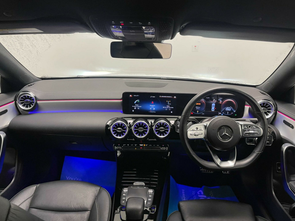 This 2022 Mercedes Benz CLA180 AMG Line Premium is a superb example, having had only one owner since new. This stylish saloon features a 1.3 litre petrol engine and meets Euro 6 emissions standards. It comes equipped with LED High Performance headlamps with integrated LED daytime running lights, and the convenience of the KEYLESS GO package for effortless entry and starting. Inside, you'll find THERMOTRONIC luxury automatic climate control with two zones, ensuring comfort for all occupants, and heated front seats for those cooler days. A Bluetooth connection is also included for seamless integration of your devices.With an impressive fuel economy of 46 miles per gallon, this CLA180 AMG Line Premium offers an efficient driving experience. Its low CO2 emissions further highlight its appeal as a more environmentally conscious choice compared to many similar vehicles. This combination of Mercedes Benz quality, desirable AMG Line trim, and practical features makes this a compelling option for anyone seeking a premium compact car. in alloy wheels - amg 5-twin-spoke design - painted titanium grey with a high-sheen finish, abs - anti-lock braking system with bas - brake assist, amg bodystyling, attention assist, active bonnet - pedestrian safety measure which detects an impact and raises bonnet by 65mm, active brake assist, active lane keeping assist, adaptive brake lights, air conditioning - air vents with surround in silver chrome, air conditioning - thermotronic luxury automatic climate control - two-zone with display, airbag - kneebag for driver, airbags - dual-stage - driver and front passenger, airbags - head and sidebags - driver and front passenger, airbags - windowbags for driver and front passenger, alarm system with immobiliser and interior protection - thatcham category 1, automatic child seat recognition sensor - pressure sensor, beltline strips - chrome, bluetooth connection, bonnet with power domes, brake-pad wear warning indicator, braking - adaptive brake assist with hold function and hill start assist, brushed stainless steel sports pedals with rubber studs, bumpers - body coloured, car wash mode, centre armrest - front with stowage, childproof locks - manually operated for rear doors and electrically operated for rear power windows, chrome weather strip, crash-responsive emergency lighting, cruise control with limiter, dab digital radio tuner, diamond radiator grille with pins in chrome - silver-painted louvre and insert in chrome, direct-steer system, door handles - body coloured, door mirrors - electrically adjustable and heated with integrated led indicators, door sills - illuminated front door sills with changeable cover, dynamic select with a choice of driving modes - eco-comfort-sport and individual, esp - electronic stability programme with asr - acceleration skid control, esp curve dynamic assist, electric parking brake, exhaust system - 2 visible tailpipe trim elements and rear apron with trim in chrome, first aid kit and warning triangle, floor mats with stitched amg lettering, glass - rear windscreen - heated with timer control, headlamp assist - automatic headlamp activation, headlamps - led high performance with integrated led daytime running lights, heated front seats, hey mercedes - voice activation, high level third brake light - led, isofix and top-tether child seat fixing points in rear - two outer seats, instrument cluster - fluid level warning indicator for fuel - oil - coolant and washer fluid, instrument cluster - outside temperature display, instrument cluster - service indicator assist, instrument cluster - trip computer in multi-function display with current fuel consumption indicator, instrument display - 10.25in digital display, interior 64-colour ambient lighting, interior lighting - mirror with reading lamps in black - frameless, keyless-go package, keyless-go starting function, led tail lamps, lamp failure indicator, lane keeping assist, leather package, light and sight package, live traffic and map updates, luggage nets on driver and front passengers backrests, mbux multimedia system, mbux with hard-disk navigation, media display - 10.25-inch with touchscreen, mercedes me - remote services, mercedes me connect - standard services, mirror package, owners manual - english, parking package, power steering - speed sensitive, pre-installation for mercedes-benz link, pre-installation for private car share, privacy glass, radio aerial integrated into windshields front and rear, rain-sensing windscreen wipers with two sensitivity settings, rear armrest with two cup holders, rear axle - multi-link, rear fog lamp, remote central locking and crash sensor with emergency opening function, roof lining - black, seat belt reminder - front and rear, seat belts - black, seat belts - rear three-point - 3, seat comfort package, seat occupancy sensor - front passenger seat, seats - rear seat backrests - split folding 40-20-40, smartphone integration including apple carplay and android auto, speed limit assist, sports seats with fixed head restraints, steering column - manually adjustable for height and reach, steering wheel - 3-spoke multi-function - trimmed in leather with perforated nappa leather in grip area and flattened bottom section, steering wheel - galvanised shift paddles, storage compartment in centre console with retractable cover, summer tyres, sun visors with illuminated vanity mirrors, suspension - lowered comfort suspension, tirefit tyre-sealant kit, touchpad on centre console, trim - light longitudinal-grain aluminium, twin cup holders in front, tyre pressure monitoring system, urban guard vehicle protection with anti-theft alarm system, usb - type c - ports - two in stowage compartment and one in front of centre console, window line - chrome, windows - electric windows - 4