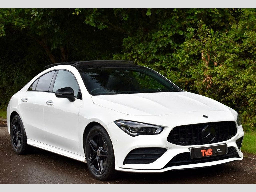 2021 Mercedes Benz CLA 180 AMG Line (Premium Plus 2) 7G DCT 136 ps 4 door coupe (Euro 6) - Automatic - Digital White with two tone black and red full leather interior - 43k miles - 2 former keepers - 2 remote keys - Mercedes Benz main dealer service history - just serviced for sale by independent Mercedes specialist - fresh 12 months MOT with no advisories - Platinum warranty - full 12 months AA roadside assistance also included! Night Pack! CLA45 AMG rear spoiler! AMG GT front grill! Gloss black AMG alloy wheels! Panoramic roof! Ambient lighting! Apple CarPlay/Android Auto! Rear parking camera! Digital White, 18in Alloy Wheels - AMG 5-Twin-Spoke Des, ABS - Anti-Lock Braking System with BAS , AMG Bodystyling, ATTENTION Assist - Monitors Steering Beh, Active Bonnet - Pedestrian Safety Measur, Active Brake ASSIST, Active Lane Keeping Assist, Adaptive Brake Lights, Air Conditioning - Air Vents with Surrou, Air Conditioning - THERMOTRONIC Luxury A, Airbag - Kneebag for Driver, Airbags - Dual-Stage - Driver and Front , Airbags - Head and Sidebags - Driver and, Airbags - Windowbags for Driver and Fron, Alarm System with Immobiliser and Interi, Automatic Child Seat Recognition Sensor , Beltline Strips - Chrome, Bonnet with Power Domes, Brake Calipers - Mercedes-Benz Lettering, Brake-Pad We