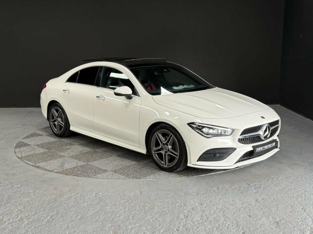 Dorset Prestige Cars are proud to present you this 2020 Mercedes-Benz CLA AMG line Premium Plus 2. Finished in white with black and red contrast leather interior, panoramic glass sliding roof, privacy glass, front and rear parking sensors, reverse camera, 18 inch alloy wheels, ambient lighting pack, satellite navigation, Burmeister audio, mercedes-Benz illuminated door entry, automatic headlights, multifunction steering wheel, cruise control, digital dual climate control, heated seats, electric memory seats. This car comes with two remote keys, Full service history = 09/04/21@16209 Merc main dealer, 12/03/22@31977 Merc main dealer, 14/02/23@48066 specialist, 17/07/24@66139 specialist, 14/02/25@69499 specialist , Nationwide Delivery Trailered or Driven you Choose, 6 Months Warranty+ Extended warranties available 12 Months AA Breakdown.... This vehicle comes with 6 months Warranty for full peace of mind (up to 36 month extension available), 3 or 5 year ceramic coating available, train station collection service, nationwide delivery available on all vehicles. Part Exchange welcome. Open Monday to Saturday ***Viewing By Appointment Only*** All Major Credit and Debit Cards Accepted. Please visit our website for more information on our services and to view our other vehicles currently in stock. Secure this vehicle today for £500 deposit T&Cs Apply! All our vehicles are HPI clear and have been through our workshop for a full health check for peace of mind. See our 5***** reviews , Buy with confidence through us. Find us on Facebook Instagram and YouTube! View our full range of cars on our website and Autotrader profile.