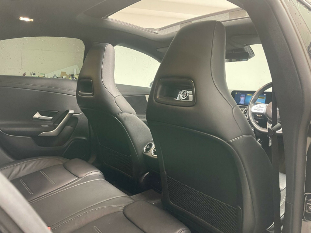 This 2022 Mercedes Benz CLA180 AMG Line Premium Plus 2 offers a sophisticated driving experience with its 1.3 litre petrol engine and Euro 6 emissions class. As a 2022 model, it benefits from modern technology and design. This particular variant, the CLA180 AMG Line, is enhanced by the Premium Plus 2 package, bringing a host of desirable features. Inside, you'll find electrically adjustable front memory seats with lumbar support for ultimate comfort, and the convenience of wireless charging for your devices.The Mercedes Benz CLA180 AMG Line Premium Plus 2 is equipped with a comprehensive parking package, including front and rear sensors along with a rear camera, making manoeuvring effortless. Enjoy your favourite music through the 225W Mercedes Benz sound system, and stay connected with smartphone integration that supports both Apple CarPlay and Android Auto. These features collectively elevate the CLA above similar vehicles, offering a more refined and convenient ownership experience. in alloy wheels - amg 5-twin-spoke design - painted titanium grey with a high-sheen finish, abs - anti-lock braking system with bas - brake assist, amg bodystyling, attention assist - monitors steering behaviour and can help alert to long journey fatigue, active bonnet - pedestrian safety measure which detects an impact and raises bonnet by 65mm, active brake assist, active lane keeping assist, adaptive brake lights, air conditioning - air vents with surround in silver chrome, air conditioning - thermotronic luxury automatic climate control - two-zone with display, airbag - kneebag for driver, airbags - dual-stage - driver and front passenger, airbags - head and sidebags - driver and front passenger, airbags - windowbags for driver and front passenger, alarm system with immobiliser and interior protection - thatcham category 1, automatic child seat recognition sensor - pressure sensor, beltline strips - chrome, bonnet with power domes, brake calipers - mercedes-benz lettering on front, brake-pad wear warning indicator, braking - adaptive brake assist with hold function and hill start assist, brushed stainless steel sports pedals with rubber studs, bumpers - body coloured, centre armrest - front with stowage, childproof locks - manually operated for rear doors and electrically operated for rear power windows, chrome weather strip, crash-responsive emergency lighting, cruise control with limiter, dab digital radio tuner, diamond radiator grille with pins in chrome - silver-painted louvre and insert in chrome, direct-steer speed sensitive steering, door handles - body coloured, door mirrors - electrically adjustable and heated with integrated led indicators, door sills - front door sill panels with mercedes-benz lettering - illuminated, dual bluetooth interfaces, dynamic select with a choice of driving modes - eco-comfort-sport and individual, esp - electronic stability programme with asr - acceleration skid control, esp curve dynamic assist, electric parking brake, exhaust system - 2 visible tailpipe trim elements and rear apron with trim in chrome, first aid kit and warning triangle, floor mats with stitched amg lettering, glass - rear windscreen - heated with timer control, hard-disk navigation, headlamp assist - automatic headlamp activation, heated front seats, hey mercedes - voice activation, high level third brake light - led, isofix and top-tether child seat fixing points in rear - two outer seats, instrument cluster - fluid level warning indicator for fuel - oil - coolant and washer fluid, instrument cluster - outside temperature display, instrument cluster - service indicator assist, instrument cluster - trip computer in multi-function display with current fuel consumption indicator, instrument display - 10.25in display, interior 64-colour ambient lighting, keyless-go starting function, keyless entry, led rear tail lights, lamp failure indicator, light and sight package, live traffic and map updates, luggage nets on driver and front passengers backrests, mbux multimedia system, multibeam led headlights with adaptive highbeam assist plus, media display - 10.25-inch with touchscreen, mercedes me connect - standard services, mercedes-benz sound system - 225 w, mirror package, navigation services, panoramic roof, parking package, pre-installation for mercedes-benz link, pre-installation for private car share, pre-installation for vehicle monitoring, pre-installation for vehicle set-up, privacy glass, radio aerial integrated into windshields front and rear, rain-sensing windscreen wipers with two sensitivity settings, rear armrest with two cup holders, rear axle - multi-link, rear fog light, remote central locking and crash sensor with emergency opening function, roof lining - black, seat belt reminder - front and rear, seat belts - black, seat belts - rear three-point - 3, seat comfort package, seat occupancy sensor - front passenger seat, seats - electrically adjustable front memory seats with lumbar support, seats - rear seat backrests - split folding 40-20-40, smartphone integration comprising apple carplay and android auto, spectacles compartment for driver, speed limit assist, sports seats with fixed head restraints, steering column - manually adjustable for height and reach, steering wheel - 3-spoke multi-function - trimmed in leather with perforated leather in grip area and flattened bottom section, steering wheel - galvanised shift paddles, storage compartment in centre console with retractable cover, summer tyres, sun visors with illuminated vanity mirrors, suspension - lowered comfort suspension, tirefit tyre-sealant kit, touchpad on centre console, traffic sign assist, trim - light longitudinal-grain aluminium, twin cup holders in front, tyre pressure monitoring system, usb - type c - 2 ports in rear of stowage compartment, usb - type c - port in front stowage compartment, windows - electric windows - 4, wireless charging