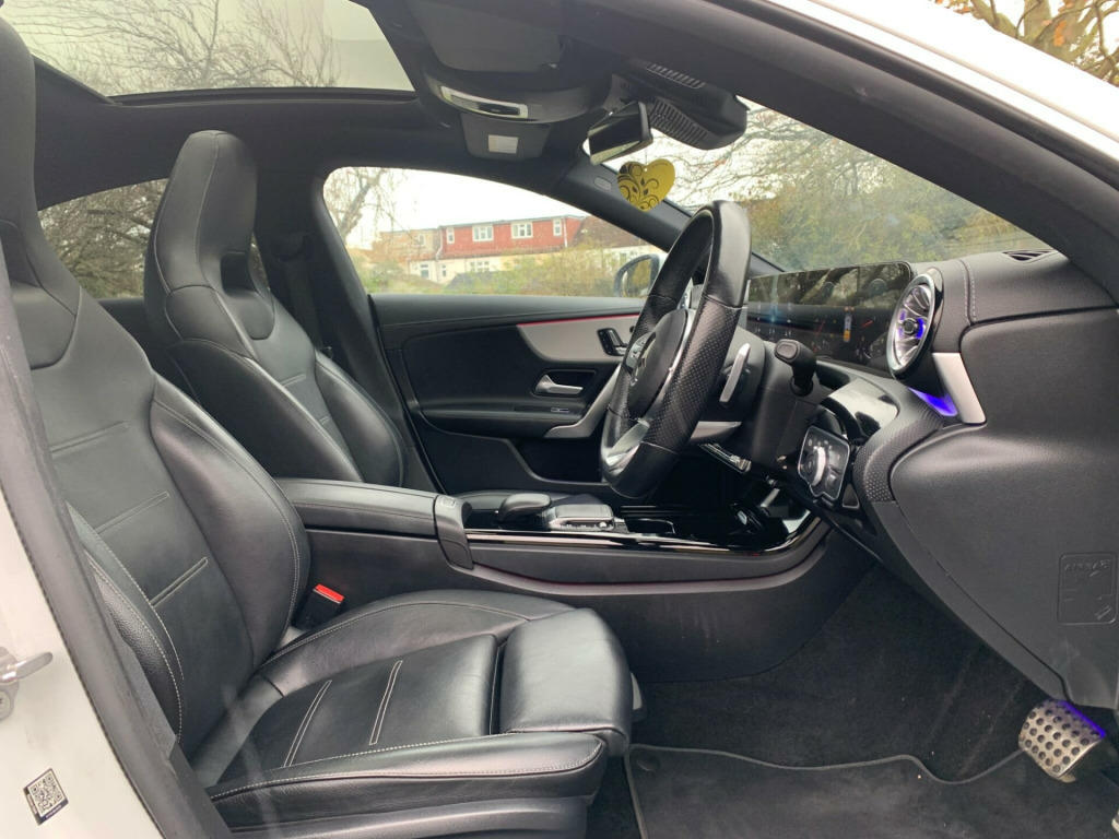 The Mercedes-Benz CLA is a sleek and sophisticated vehicle that exudes style and refinement. This 2021 CLA180 AMG Line (Premium Plus 2) is a premium trim model, boasting a 1.3L Petrol Engine and Euro 6 emission class, ensuring a smooth and environmentally friendly driving experience. With a full dealership service history, you can have confidence in the vehicle's reliability and performance. This particular CLA has been well cared for by its single owner, who has meticulously maintained the vehicle's condition. Key features include the advanced MULTIBEAM LED Headlights with Adaptive Highbeam Assist Plus, Keyless Entry for added convenience, a premium Mercedes-Benz Sound System, heated front seats, and electrically adjustable front memory seats with lumbar support.One of the standout features of this CLA is its impressive fuel economy, achieving an impressive 46 mpg, making it an excellent choice for those looking to save on fuel costs. Additionally, its low CO2 emissions make it an environmentally friendly option. With a 12-month MOT provided on purchase, you can drive away with peace of mind. This CLA is a fantastic example of a well-crafted vehicle that offers a perfect blend of style, performance, and practicality, making it an excellent choice for anyone looking for a reliable and efficient vehicle., in alloy wheels - amg 5-twin-spoke design - painted titanium grey with a high-sheen finish, abs - anti-lock braking system with bas - brake assist, amg bodystyling, attention assist - monitors steering behaviour and can help alert to long journey fatigue, active bonnet - pedestrian safety measure which detects an impact and raises bonnet by 65mm, active brake assist, active lane keeping assist, adaptive brake lights, air conditioning - air vents with surround in silver chrome, air conditioning - thermotronic luxury automatic climate control - two-zone with display, airbag - kneebag for driver, airbags - dual-stage - driver and front passenger, airbags - head and sidebags - driver and front passenger, airbags - windowbags for driver and front passenger, alarm system with immobiliser and interior protection - thatcham category 1, automatic child seat recognition sensor - pressure sensor, beltline strips - chrome, bonnet with power domes, brake calipers - mercedes-benz lettering on front, brake-pad wear warning indicator, braking - adaptive brake assist with hold function and hill start assist, brushed stainless steel sports pedals with rubber studs, bumpers - body coloured, centre armrest - front with stowage, childproof locks - manually operated for rear doors and electrically operated for rear power windows, chrome weather strip, crash-responsive emergency lighting, cruise control with limiter, dab digital radio tuner, diamond radiator grille with pins in chrome - silver-painted louvre and insert in chrome, direct-steer speed sensitive steering, door handles - body coloured, door mirrors - electrically adjustable and heated with integrated led indicators, door sills - front door sill panels with mercedes-benz lettering - illuminated, dual bluetooth interfaces, dynamic select with a choice of driving modes - eco-comfort-sport and individual, esp - electronic stability programme with asr - acceleration skid control, esp curve dynamic assist, electric parking brake, exhaust system - 2 visible tailpipe trim elements and rear apron with trim in chrome, first aid kit and warning triangle, floor mats with stitched amg lettering, glass - rear windscreen - heated with timer control, hard-disk navigation, headlamp assist - automatic headlamp activation, heated front seats, hey mercedes - voice activation, high level third brake light - led, isofix and top-tether child seat fixing points in rear - two outer seats, instrument cluster - fluid level warning indicator for fuel - oil - coolant and washer fluid, instrument cluster - outside temperature display, instrument cluster - service indicator assist, instrument cluster - trip computer in multi-function display with current fuel consumption indicator, instrument display - 10.25in display, interior 64-colour ambient lighting, keyless-go starting function, keyless entry, led rear tail lights, lamp failure indicator, light and sight package, live traffic and map updates, luggage nets on driver and front passengers backrests, mbux multimedia system, multibeam led headlights with adaptive highbeam assist plus, media display - 10.25-inch with touchscreen, mercedes me connect - standard services, mercedes-benz sound system - 225 w, mirror package, navigation services, panoramic roof, parking package, pre-installation for mercedes-benz link, pre-installation for private car share, pre-installation for vehicle monitoring, pre-installation for vehicle set-up, privacy glass, radio aerial integrated into windshields front and rear, rain-sensing windscreen wipers with two sensitivity settings, rear armrest with two cup holders, rear axle - multi-link, rear fog light, remote central locking and crash sensor with emergency opening function, roof lining - black, seat belt reminder - front and rear, seat belts - black, seat belts - rear three-point - 3, seat comfort package, seat occupancy sensor - front passenger seat, seats - electrically adjustable front memory seats with lumbar support, seats - rear seat backrests - split folding 40-20-40, smartphone integration comprising apple carplay and android auto, spectacles compartment for driver, speed limit assist, sports seats with fixed head restraints, steering column - manually adjustable for height and reach, steering wheel - 3-spoke multi-function - trimmed in leather with perforated leather in grip area and flattened bottom section, steering wheel - galvanised shift paddles, storage compartment in centre console with retractable cover, summer tyres, sun visors with illuminated vanity mirrors, suspension - lowered comfort suspension, tirefit tyre-sealant kit, touchpad on centre console, traffic sign assist, trim