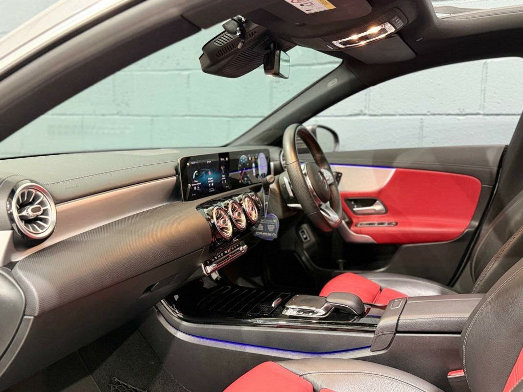 Discover this 2019 Mercedes Benz CLA180 AMG Line (Premium Plus), a sophisticated saloon that offers a blend of style and comfort. This Euro 6 compliant model is powered by an efficient 1.3 litre petrol engine, delivering a notable fuel economy of 46 miles per gallon. The AMG Line trim enhances its sporty appeal, while the Premium Plus package adds a host of desirable features. Inside, you'll find electrically adjustable front memory seats, an energising package for a more pleasant driving experience, and illuminated Mercedes Benz door sills for a touch of class. Comfort is further assured with a rear armrest and THERMOTRONIC luxury automatic climate control, ensuring a pleasant environment for all occupants.This Mercedes Benz CLA stands out with its low CO2 emissions, indicating a more environmentally conscious choice compared to similar vehicles. The combination of its efficient 1.3L petrol engine and advanced engineering contributes to its impressive 46 mpg fuel economy, making it an economical option for your daily journeys. The inclusion of the Energising Package and the THERMOTRONIC climate control system highlights the premium comfort and convenience this vehicle offers, setting it apart from others in its class. o-tone leather - classic red-black, 18in alloy wheels - amg 5-twin-spoke design - painted titanium grey with a high-sheen finish, abs - anti-lock braking system with bas - brake assist, amg bodystyling - front and rear apron and side skirts, attention assist - monitors steering behaviour and can help alert to long journey fatigue, active bonnet - pedestrian safety measure which detects an impact and raises bonnet by 65mm, active brake assist, active lane keeping assist, adaptive brake lights, air conditioning - air vents with surround in silver chrome, air conditioning - thermotronic luxury automatic climate control - two-zone with display, airbag - kneebag for driver, airbags - dual-stage - driver and front passenger, airbags - head and sidebags - driver and front passenger, airbags - windowbags for driver and front passenger, alarm system with immobiliser and interior protection - thatcham category 1, augmented reality navigation, automatic child seat recognition sensor - pressure sensor, beltline strips and weather strip in chrome, brake calipers - mercedes-benz lettering on front, brake-pad wear warning indicator, braking - adaptive brake assist with hold function and hill start assist, brushed stainless steel sports pedals with rubber studs, bumpers - body coloured, centre armrest - front with stowage, childproof locks - manually operated for rear doors and electrically operated for rear power windows, crash-responsive emergency lighting, cruise control with limiter, dab digital radio tuner, diamond radiator grille with pins in chrome - silver-painted louvre and insert in chrome, direct-steer speed sensitive steering, door handles - body coloured, door mirrors - electrically adjustable and heated with integrated led indicators, dual bluetooth interfaces, dynamic select with a choice of driving modes - eco-comfort-sport and individual, esp - electronic stability programme with asr - acceleration skid control, esp curve dynamic assist, electric parking brake, energizing package, exhaust system - twin trapezoidal tailpipes in polished stainless steel, first aid kit and warning triangle, floor mats with stitched amg lettering, glass - rear windscreen - heated with timer control, glove compartment - illuminated, hard-disk navigation, headlamp assist - automatic headlamp activation, heated front seats, hey mercedes - voice activation, high level third brake light - led, isofix and top-tether child seat fixing points in rear - two outer seats, illuminated mercedes-benz door sills, instrument cluster - fluid level warning indicator for fuel - oil - coolant and washer fluid, instrument cluster - outside temperature display, instrument cluster - service indicator assist, instrument cluster - trip computer in multi-function display with current fuel consumption indicator, instrument display - 10.25in display, interior 64-colour ambient lighting, keyless-go starting function, keyless entry, led rear tail lights, lamp failure indicator, light and sight package, live traffic and map updates, luggage nets on driver and front passengers backrests, mbux multimedia system, multibeam led headlights with adaptive highbeam assist plus, media display - 10.25-inch with touchscreen, mercedes me connect - standard services, mercedes-benz sound system - 225 w, mirror package, navigation services, panoramic roof, parking package, pre-installation for mercedes-benz link, pre-installation for private car share, privacy glass, radio aerial integrated into windshields front and rear, rain-sensing windscreen wipers with two sensitivity settings, rear armrest, rear axle - multi-link, rear fog light, remote central locking and crash sensor with emergency opening function, roof lining - black, seat belt reminder - front and rear, seat belts - black, seat belts - rear three-point - 3, seat comfort package, seat occupancy sensor - front passenger seat, seats - electrically-adjustable front memory seats, seats - rear seat backrests - split folding 40-20-40, seats with fixed head restraints, smartphone integration, speed limit assist, steering column - manually adjustable for height and reach, steering wheel - 3-spoke multi-function - trimmed in leather with perforated leather in grip area and flattened bottom section, steering wheel - galvanised shift paddles, storage compartment in centre console with retractable cover, summer tyres, sun visors with illuminated vanity mirrors, suspension - lowered comfort suspension, tirefit tyre-sealant kit, touchpad on centre console, traffic sign assist, trim - light longitudinal-grain aluminium, twin cup holders in front, tyre pressure monitoring system, usb - type c - 2 ports in rear of stowage compartment, usb - type c - port in front stowage compartment, windows -