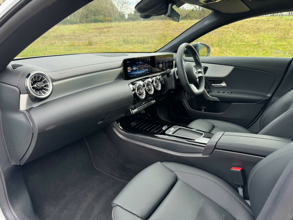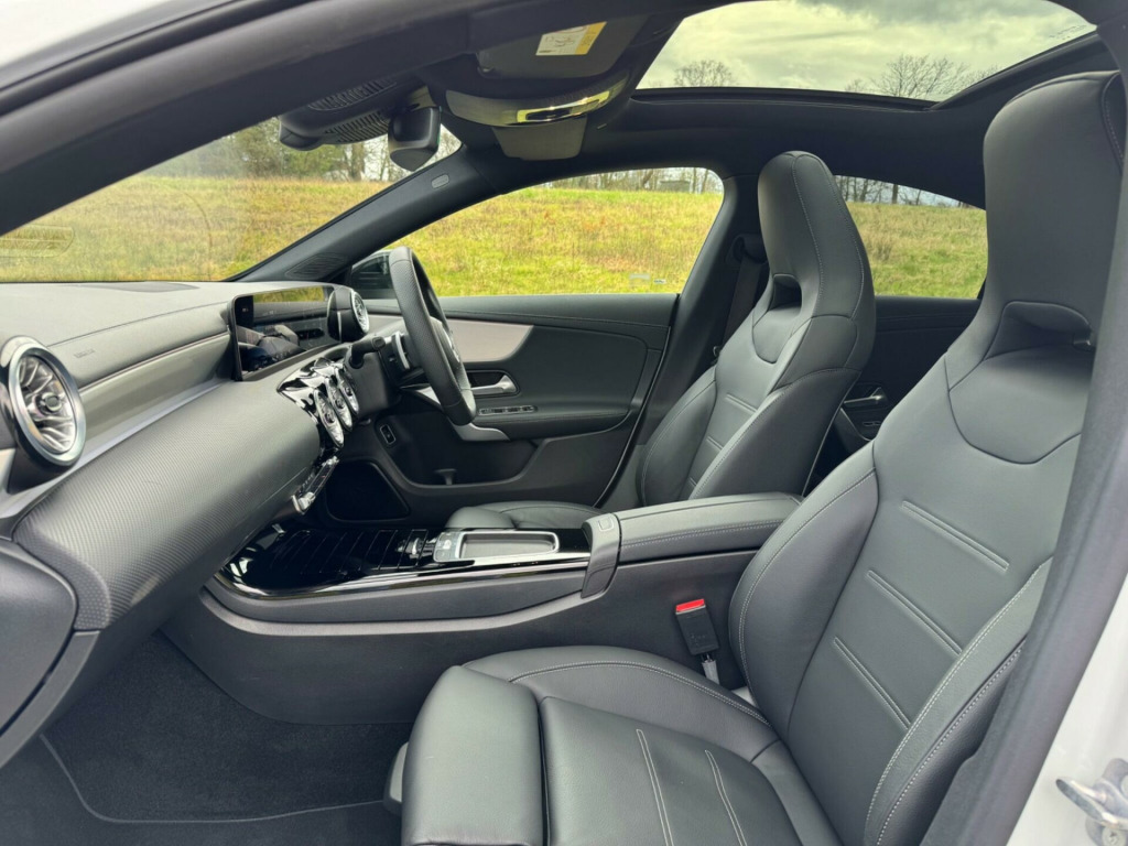 *Very *rare*1 former from new ,Mercedes service history, just been serviced ,**Night **addition ** Full Glass panoramic roof with electric blind, Virtual cockpit, Touchscreen, Reverse camera plus parking sensors, electric heated memory Amg sport seats finished black, Ambient lighting with 64 different colours satellite navigation With 3-D map ,DAB radio ,aux ,usb ,AMG Multifunction steering wheel Finished with F1 paddle shift Adaptive High beam assist Command online with touchpad ,Privacy glass ,upgrade Hey Mercedes with voice activation, GT Grill Finished in glossy blackBurmester Sound system ,heated AMG Sport seats Memory function Driving assist package, heated electric folding mirrors ,Apple CarPlay, LED day running lights ,AMG Body styling ,19 inch AMG alloy wheels keyless go Plus keyless entryParking package ,HPI Clear , All ,debit and credit cards accepted part exchange welcome finance available choice of 2 in stock This 2024 Mercedes Benz CLA180h AMG Line (Premium Plus) presents an exceptional ownership proposition with an incredibly low mileage of just 7265 miles, having been cherished by only one owner. This stylish saloon features a sophisticated 1.3 litre petrol hybrid engine, meeting Euro 6 emission standards, and boasts the sporty AMG Line trim. The Premium Plus package enhances the driving experience with a comprehensive Parking Package including a 360-degree camera for effortless manoeuvring, alongside convenient wireless charging for your devices.Further elevating this Mercedes Benz CLA are its advanced MULTIBEAM LED headlamps with adaptive highbeam assist, ensuring optimal visibility in all conditions. Stay comfortable with the THERMOTRONIC luxury automatic climate control, offering two zone climate settings with a clear display. For added safety and peace of mind, the vehicle is equipped with Blind Spot Assist, a vital feature that helps monitor your surroundings. These carefully selected features and its pristine provenance demonstrate a superior level of specification and care compared to other vehicles of its kind. in alloy wheels - amg multi-spoke design - aerodynamically optimised - painted black with a high-sheen rim flange, abs - anti-lock braking system with bas - brake assist, amg bodystyling, attention assist, active bonnet - pedestrian safety measure which detects an impact and raises bonnet by 65mm, active brake assist, active lane keeping assist, adaptive brake lights, air conditioning - air vents with surround in silver chrome, air conditioning - thermotronic luxury automatic climate control - two-zone with display, airbag - kneebag for driver, airbags - dual-stage - driver and front passenger, airbags - head and sidebags - driver and front passenger, airbags - windowbags for driver and front passenger, alarm system with immobiliser and interior protection - thatcham category 1, automatic child seat recognition sensor - pressure sensor, beltline strips - high gloss black, blind spot assist, bluetooth connection, bonnet with power domes, brake calipers with mercedes-benz lettering on front, brake-pad wear warning indicator, brakes - perforated front brake discs, braking - adaptive brake assist with hold function and hill start assist, brushed stainless steel sports pedals with rubber studs, bumpers - body coloured, car wash mode, centre armrest - front with stowage, childproof locks - manually operated for rear doors and electrically operated for rear power windows, crash-responsive emergency lighting, cruise control with limiter, dab digital radio tuner, direct-steer system, door handles - body coloured, door mirrors - electrically adjustable and heated with integrated led indicators, door sills - illuminated front door sills with changeable cover and mercedes-benz lettering, dynamic select with a choice of driving modes - eco-comfort-sport and individual, esp - electronic stability programme with asr - acceleration skid control, esp curve dynamic assist, electric parking brake, exhaust system - 2 visible tailpipe trim elements and rear apron with trim in chrome, exit warning function, first aid kit and warning triangle, floor mats with stitched amg lettering, guard 360 vehicle protection, glass - rear windscreen - heated with timer control, headlamp assist - automatic headlamp activation, heated front seats, hey mercedes - voice activation, high level third brake light - led, isofix and top-tether child seat fixing points in rear - two outer seats, instrument cluster - fluid level warning indicator for fuel - oil - coolant and washer fluid, instrument cluster - outside temperature display, instrument cluster - service indicator assist, instrument cluster - trip computer in multi-function display with current fuel consumption indicator, instrument display - 10.25in digital display, interior 64-colour ambient lighting, interior lighting - mirror with reading lamps in black - frameless, keyless-go starting function, keyless go comfort package, led tail lamps, lamp failure indicator, light and sight package, live traffic and map updates, luggage nets on driver and front passengers backrests, mbux augmented reality for navigation, mbux multimedia system, mbux with hard-disk navigation, multibeam led headlamps with adaptive highbeam assist, media display - 10.25-inch with touchscreen, memory package, mercedes me - remote services, mercedes me connect - standard services, mercedes-benz advanced sound system - 225w, mirror package, navigation services, night package, owners manual - english, panoramic roof, parking package with 360-degree camera, power steering - speed sensitive, pre-installation for mercedes-benz link, pre-installation for private car share, privacy glass, radiator grille with mercedes-benz pattern in chrome - central star and single louvre in high-gloss black with chrome inlay, radio aerial integrated into windshields front and rear, rain-sensing windscreen wipers with two sensitivity settings, rear armrest with two integral cup holders for dri