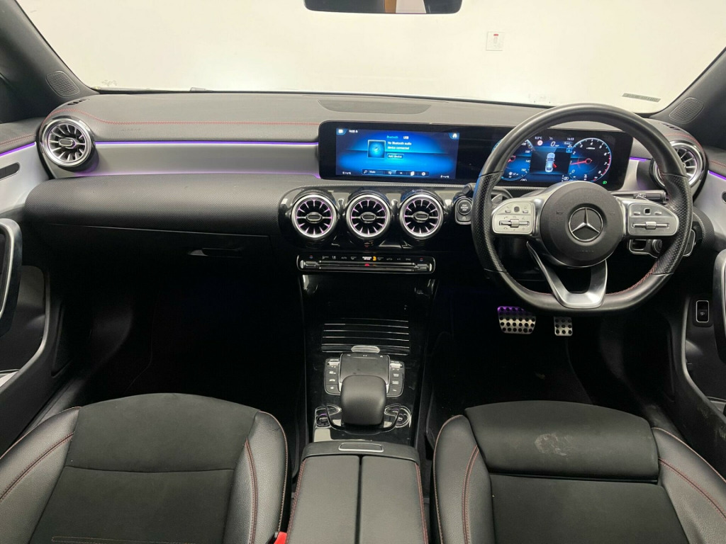 This 2023 Mercedes-Benz CLA200 AMG Line (Executive) is a superb example, having had only one owner since new. This stylish saloon boasts a 1.3 litre petrol engine and meets Euro 6 emission standards. The AMG Line trim enhances its sporty appeal, while the inclusion of Smartphone Integration with Apple CarPlay and Android Auto ensures seamless connectivity. You'll also appreciate the convenience of Headlamp Assist for automatic activation, dual Bluetooth interfaces for multiple device pairing, and a quality Mercedes-Benz Sound System delivering 100W through six speakers. The striking LED High Performance headlamps with integrated daytime running lights provide excellent visibility.With a highlight fuel economy of 46 miles per gallon, this CLA200 offers an efficient driving experience. Its low CO2 emissions further contribute to its appeal, indicating it performs better than many similar vehicles in its class. This combination of impressive economy, advanced technology, and the prestige of a single owner makes this Mercedes-Benz CLA a compelling choice for discerning drivers. in alloy wheels - amg 5-spoke design - aerodynamically optimised - painted in black with high-sheen finish, abs - anti-lock braking system with bas - brake assist, amg bodystyling, attention assist, active bonnet - pedestrian safety measure which detects an impact and raises bonnet by 65mm, active brake assist, active lane keeping assist, adaptive brake lights, air conditioning - air vents with surround in silver chrome, air conditioning - thermotronic luxury automatic climate control - two-zone with display, airbag - kneebag for driver, airbags - dual-stage - driver and front passenger, airbags - head and sidebags - driver and front passenger, airbags - windowbags for driver and front passenger, alarm system with immobiliser and interior protection - thatcham category 1, automatic child seat recognition sensor - pressure sensor, beltline strips - high gloss black, bonnet with power domes, brake calipers with mercedes-benz lettering on front, brake-pad wear warning indicator, braking - adaptive brake assist with hold function and hill start assist, brushed stainless steel sports pedals with rubber studs, bumpers - body coloured, car wash mode, centre armrest - front with stowage, childproof locks - manually operated for rear doors and electrically operated for rear power windows, crash-responsive emergency lighting, cruise control with limiter, dab digital radio tuner, diamond radiator grille with pins in chrome - single silver louvre in high-gloss black, direct-steer system, door handles - body coloured, door mirrors - electrically adjustable and heated with integrated led indicators, door sills - illuminated front door sills with changeable cover, dual bluetooth interfaces, dynamic select with a choice of driving modes - eco-comfort-sport and individual, esp - electronic stability programme with asr - acceleration skid control, esp curve dynamic assist, electric parking brake, exhaust system - 2 visible tailpipe trim elements and rear apron with trim in chrome, first aid kit and warning triangle, floor mats with stitched amg lettering, glass - rear windscreen - heated with timer control, headlamp assist - automatic headlamp activation, headlamps - led high performance with integrated led daytime running lights, heated front seats, hey mercedes - voice activation, high level third brake light - led, isofix and top-tether child seat fixing points in rear - two outer seats, instrument cluster - fluid level warning indicator for fuel - oil - coolant and washer fluid, instrument cluster - outside temperature display, instrument cluster - service indicator assist, instrument cluster - trip computer in multi-function display with current fuel consumption indicator, instrument display - 10.25in digital display, interior 64-colour ambient lighting, interior lighting - mirror with reading lamps in black - frameless, keyless-go starting function, led tail lamps, lamp failure indicator, leather package, light and sight package, live traffic and map updates, luggage nets on driver and front passengers backrests, mbux multimedia system, mbux with hard-disk navigation, media display - 10.25-inch with touchscreen, mercedes me - remote services, mercedes me connect - standard services, mercedes-benz sound system - output of 100w from six speakers, mirror package, navigation services, night package, owners manual - english, parking package, power steering - speed sensitive, pre-installation for mercedes-benz link, pre-installation for private car share, privacy glass, radio aerial integrated into windshields front and rear, rain-sensing windscreen wipers with two sensitivity settings, rear axle - multi-link, rear fog lamp, remote central locking and crash sensor with emergency opening function, roof lining - black, seat belt reminder - front and rear, seat belts - black, seat belts - rear three-point - 3, seat comfort package, seat occupancy sensor - front passenger seat, seats - rear seat backrests - split folding 40-20-40, smartphone integration including apple carplay and android auto, speed limit assist, sports seats with fixed head restraints, steering column - manually adjustable for height and reach, steering wheel - 3-spoke multifunction - trimmed in leather with perforated leather in grip area and flattened bottom section, steering wheel - galvanised shift paddles, stowage compartment in centre console with retractable cover, summer tyres, sun visors with illuminated vanity mirrors, suspension - lowered comfort suspension, tirefit tyre-sealant kit, touchpad on centre console, traffic sign assist, trim - light longitudinal-grain aluminium, twin cup holders in front, tyre pressure monitoring system, urban guard vehicle protection with anti-theft alarm system, usb - type c - ports - two in stowage compartment and one in front of centre console, window line - high-gloss black, windows - electric windows - 4