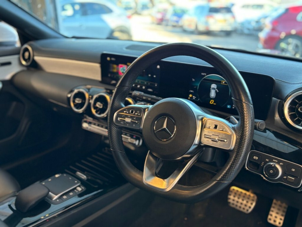 2 KEYS+1 FORMER KEEPER+PRIVACY+FULL LEATHER SEATS+PARK CONTROL+NAV+CLIMATE+DIGITAL DASH+CLIMATE+MEDIA+BLUETOOTH+USB+AUX+DAB+ALLOYS+CRUISE+HEATED FRONT SEATS+HPI CLEAR+VOSA MOT HISTORY, CLEAN +GREAT DRIVE+GOOD MPG, FULL DEALER FACILITIES+FINANCE ARRANGED, PART EXCHANGE WELCOME+The car is in very good condition in and out . Bodywork and interior clean for age and mileage . Interior is clean and tyres good ,Engine and gearbox in good order. This 2021 Mercedes Benz CLA200 AMG Line offers a sophisticated driving experience with its 1.3 litre petrol engine and Euro 6 emission class. As a CLA200 AMG Line variant, it benefits from the sporty AMG Line trim, enhancing its visual appeal and interior feel. This model is equipped with LED High Performance headlamps featuring integrated LED daytime running lights, complemented by automatic headlamp activation for convenience. Inside, you'll find THERMOTRONIC luxury automatic climate control with two zones and a display, ensuring comfort for all occupants. Enjoy seamless connectivity with smartphone integration, including both Apple CarPlay and Android Auto. The Mercedes Benz Sound System delivers a clear audio experience with 100W output from six speakers. This CLA200 AMG Line achieves an impressive highlight fuel economy of 46 mpg, making it an efficient choice. Furthermore, its acceleration from 0 to 60 mph in just 8.4 seconds indicates a responsive performance that stands out compared to similar vehicles. 18in Alloy Wheels - AMG 5-Twin-Spoke Des, ABS - Anti-Lock Braking System with BAS , Active Bonnet - Pedestrian Safety Measur, Active Brake Assist, Active Lane Keeping Assist, Adaptive Brake Lights, Air Conditioning - Air Vents with Surrou, Air Conditioning - THERMOTRONIC Luxury A, Airbag - Kneebag for Driver, Airbags - Dual-Stage - Driver and Front , Airbags - Head and Sidebags - Driver and, Airbags - Windowbags for Driver and Fron, Alarm System with Immobiliser and Interi, AMG Bodystyling, ATTENTION Assist, Automatic Child Seat Recognition Sensor , Beltline Strips - Chrome, Bluetooth Connection, Bonnet with Power Domes, Brake-Pad Wear Warning Indicator, Braking - Adaptive Brake Assist with