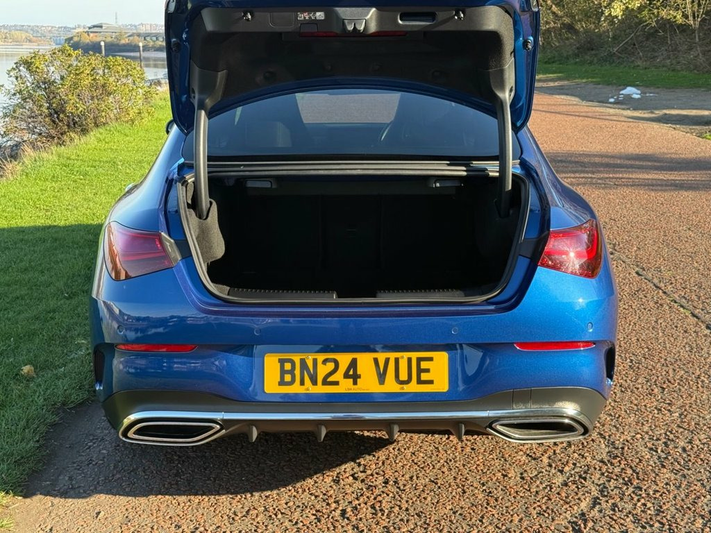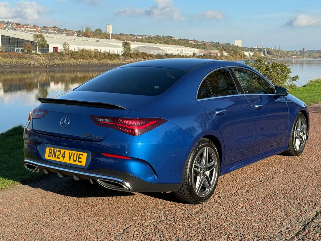WE ARE DELIGHTED TO OFFER YOU FOR SALE THIS STUNNING MERCEDES CLA 200 AMG LINE. THIS BREATH TAKING LOW MILAGE EXAMPLE COMES WITH A GREAT SPECIFICATION THAT INCLUDES 18" DIAMOND CUT ALLOYS ON A FULL SET OF CONTINENTAL TYRES, PRIVACY GLASS, HALF LEATHER HEATED SEATS, FULL SIZE DIGITAL DISPLAY, APPLE CARPLAY, AMBIENT LIGHTING, BLUETOOTH AUDIO, SAT NAV, DAB RADIO, REVERSE CAMERA, AIRCON, USBC INPUT, ADAPTIVE CRUISE CONTROL, AUTOMATIC GEARBOX, PLEASE NOTE THE NEXT SERVICE ON THIS CAR IS PRE PAID FOR, AND MUCH MUCH MORE! FOR YOUR ADDED PEACE OF MIND, SHE IS COVERED BY A MERCEDES WARRANTY UNTIL 2027 AND WILL BE PROVIDED WITH A FULL HEALTH CHECK PRIOR TO DELIVERY. IF YOU ARE INTERESTED, PLEASE GET IN CONTACT WITH US AS SOON AS POSSIBLE, AS SHE WON'T HANG AROUND FOR LONG! 18in Alloy Wheels - AMG 5-Twin-Spoke - P, ABS - Anti-Lock Braking System with BAS , Active Bonnet - Pedestrian Safety Measur, Active Brake Assist, Active Lane Keeping Assist, Adaptive Brake Lights, Air Conditioning - Air Vents with Surrou, Air Conditioning - THERMATIC Automatic C, Airbag - Kneebag for Driver, Airbags - Dual-Stage - Driver and Front , Airbags - Head and Sidebags - Driver and, Airbags - Windowbags for Driver and Fron, Alarm System with Immobiliser and Interi, AMG Bodystyling, ATTENTION Assist, Automatic Child Seat Recognition Sensor , Beltline and Windowline Trim Strip in Hi, Bluetooth Connection, Bonnet with Power Domes, Brake Calipers with Mercedes-Benz Letter, Brake-Pad Wea