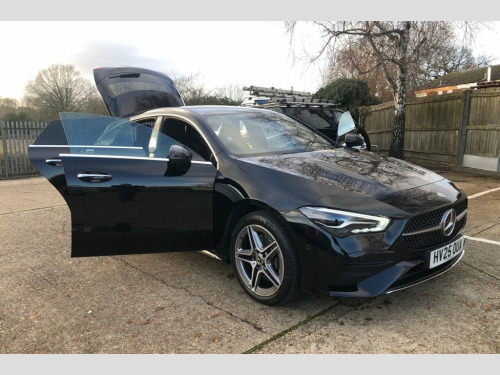This 2025 Mercedes-Benz CLA250e AMG Line (Executive) presents an exceptional opportunity with an MOT valid until March 2028 and an incredibly low mileage. This Euro 6 compliant plug-in hybrid combines a 1.3L petrol engine with electric power, offering an efficient and dynamic driving experience. The vehicle boasts a clear history check and features striking LED High Performance Headlamps with integrated daytime running lights and Adaptive High Beam Assist, alongside THERMATIC automatic climate control for your comfort. Further enhancing this premium saloon are convenient features such as wireless phone charging and a Mercedes-Benz Sound System delivering 100W through six speakers. Safety is paramount, with Blind Spot Assist included to provide an extra layer of awareness on the road. These carefully selected features and its remarkably low mileage for a 2025 model indicate that this CLA250e AMG Line is in a superior condition compared to other vehicles of its type. ARTICO Man-Made Leather-MICROCUT Microfi, Cosmos Black, 18in Alloy Wheels - AMG 5-Twin-Spoke Des, ABS - Anti-Lock Braking System with BAS , AMG Bodystyling, ATTENTION Assist, Acoustic Ambient Protection, Active Bonnet - Pedestrian Safety Measur, Active Brake Assist, Adaptive Brake Lights, Air Conditioning - Air Vents with Surrou, Air Conditioning - THERMATIC Automatic C, Airbag - Kneebag for Driver, Airbags - Dual-Stage - Driver and Front , Airbags - Head and Sidebags - Driver and, Airbags - Windowbags for Driver and Fron, Alarm System with Immobiliser and Interi, Automatic Child Seat Recognition Sensor , Beltline and Windowline in Chrome, Blind Spot Assist, Bluetooth Connection, Bonnet with