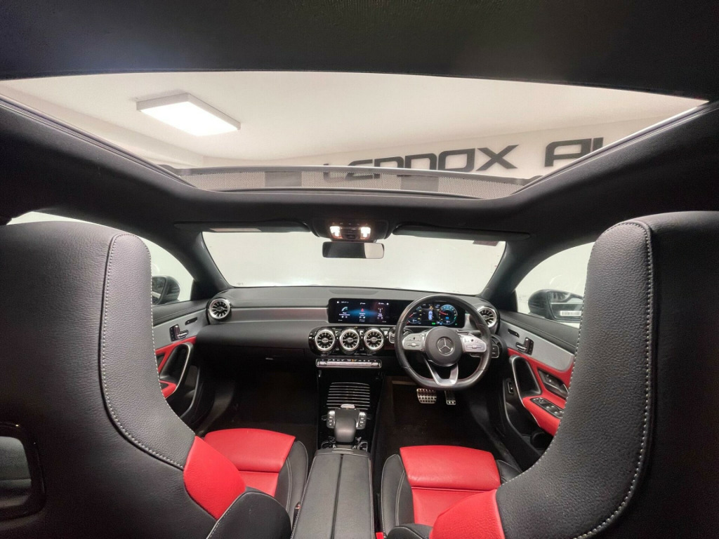 This 2021 Mercedes-Benz CLA250e AMG Line (Premium Plus) is a standout choice, having been cherished by just one owner and boasting remarkably low mileage for its age at only 36396 miles. This Euro 6 compliant plug in hybrid model features a 1.3L petrol engine, offering an efficient and dynamic driving experience. The AMG Line trim enhances its sporty appeal, while the Premium Plus package includes impressive MULTIBEAM LED Headlamps with Adaptive Highbeam Assist for superior visibility. You'll also benefit from a 7.4 kW AC charging system, a convenient charging socket, acoustic ambient protection, and intelligent radar-based recuperation technology.The advanced technology within this Mercedes-Benz CLA250e is designed to elevate your journeys. The MULTIBEAM LED Headlamps automatically adjust to provide optimal illumination without dazzling other drivers, a clear advantage over standard lighting systems. Furthermore, the plug-in hybrid powertrain, combined with the sophisticated charging and recuperation systems, signifies a more efficient and environmentally conscious approach to motoring compared to traditional petrol or diesel vehicles. This CLA250e AMG Line (Premium Plus) represents a compelling blend of luxury, performance, and cutting edge technology. in alloy wheels - amg 5-twin-spoke design - painted titanium grey with a high-sheen finish, abs - anti-lock braking system with bas - brake assist, amg bodystyling, attention assist, acoustic ambient protection, active bonnet - pedestrian safety measure which detects an impact and raises bonnet by 65mm, active brake assist, active lane keeping assist, adaptive brake lights, air conditioning - air vents with surround in silver chrome, air conditioning - thermotronic luxury automatic climate control - two-zone with display, airbag - kneebag for driver, airbags - dual-stage - driver and front passenger, airbags - head and sidebags - driver and front passenger, airbags - windowbags for driver and front passenger, alarm system with immobiliser and interior protection - thatcham category 1, automatic child seat recognition sensor - pressure sensor, beltline strips - chrome, bonnet with power domes, brake-pad wear warning indicator, brakes - perforated front brake discs, braking - adaptive brake assist with hold function and hill start assist, brushed stainless steel sports pedals with rubber studs, bumpers - body coloured, car wash mode, centre armrest - front with stowage, charging cable - 3 pin plug - mode 2 - 5m - straight, charging cable for wallbox and public charging stations - mode 3 charging cable - 4m straight, charging socket, charging system - ac charging system rated at 7.4 kw, childproof locks - manually operated for rear doors and electrically operated for rear power windows, chrome weather strip, comfort suspension, crash-responsive emergency lighting, cruise control with limiter, dab digital radio tuner, diamond radiator grille with pins in chrome - silver-painted louvre and insert in chrome, direct-steer system, door handles - body coloured, door mirrors - electrically adjustable and heated with integrated led indicators, door sills - illuminated front door sills with changeable cover, dual bluetooth interfaces, dynamic select with a choice of driving modes - eco-comfort-sport and individual, easy-pack electric tailgate, esp - electronic stability programme with asr - acceleration skid control, esp curve dynamic assist, electric parking brake, exhaust system - 2 visible tailpipe trim elements and rear apron with trim in chrome, first aid kit and warning triangle, floor mats with stitched amg lettering, glass - rear windscreen - heated with timer control, headlamp assist - automatic headlamp activation, heated front seats, hey mercedes - voice activation, high level third brake light - led, isofix and top-tether child seat fixing points in rear - two outer seats, instrument cluster - fluid level warning indicator for fuel - oil - coolant and washer fluid, instrument cluster - outside temperature display, instrument cluster - service indicator assist, instrument cluster - trip computer in multi-function display with current fuel consumption indicator, instrument display - 10.25in digital display, interior 64-colour ambient lighting, interior lighting - mirror with reading lamps in black - frameless, keyless-go package, keyless-go starting function, led tail lamps, lamp failure indicator, leather package, light and sight package, live traffic and map updates, luggage nets on driver and front passengers backrests, mbux augmented reality for navigation, mbux multimedia system, mbux with hard-disk navigation, multibeam led headlamps with adaptive highbeam assist, media display - 10.25-inch with touchscreen, mercedes me - remote services, mercedes me connect - standard services, mercedes-benz sound system - 225 w, mirror package, owners manual - english, panoramic roof, parking package, pre-entry climate control, pre-installation for mercedes-benz link, pre-installation for private car share, privacy glass, radar-based recuperation, radio aerial integrated into windshields front and rear, rain-sensing windscreen wipers with two sensitivity settings, rear armrest with two cup holders, rear axle - multi-link, rear fog lamp, remote central locking and crash sensor with emergency opening function, remote and charging services plus, roof lining - black, seat belt reminder - front and rear, seat belts - black, seat belts - rear three-point - 3, seat comfort package, seat occupancy sensor - front passenger seat, seats - electrically adjustable front memory seats with lumbar support, seats - rear seat backrests - split folding 40-20-40, smartphone integration including apple carplay and android auto, speed limit assist, sports seats with fixed head restraints, steering column - manually adjustable for height and reach, steering wheel - 3-spoke multi-function - trimmed in leather with perforated nappa leather in grip area and flattened bottom