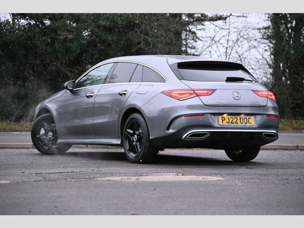 Prestige Car Supermarket in York presents this 2022 Mercedes-Benz CLA 250e AMG Line (Premium) Shooting Brake, finished in Mountain Grey with black leather upholstery and combining plug-in hybrid efficiency with distinctive AMG styling. This well-specified model features AMG bodystyling, 18in AMG 5-spoke aerodynamically optimised alloy wheels, Night Package elements, high-gloss black exterior detailing and illuminated AMG door sills for a sporty, premium appearance. Inside, the cabin is equipped with the MBUX multimedia system featuring twin 10.25in digital displays, hard-disk navigation, live traffic updates and Hey Mercedes voice activation, alongside smartphone integration with Apple CarPlay and Android Auto. Comfort is enhanced by heated front sports seats, two-zone THERMOTRONIC automatic climate control, KEYLESS-GO starting, pre-entry climate control and 64-colour ambient lighting. The Premium specification also adds a reversing camera via the Parking Package, Mercedes-Benz sound system, privacy glass and mirror package. Safety and driver assistance highlights include Active Brake Assist, Active Lane Keeping Assist, ATTENTION Assist, Traffic Sign Assist, speed limit assist, multiple airbags and ISOFIX rear seat mounting points. Plug-in hybrid technology includes a 15.6kWh battery, AC charging capability and radar-based recuperation, delivering refined performance with added efficiency in a practical and stylish shooting brake body style. Leather - Black, Mountain Grey, 18in Alloy Wheels - AMG 5-Spoke Design -, ABS - Anti-Lock Braking System with BAS , AMG Bodystyling, ATTENTION Assist, Acoustic Ambient Protection, Active Bonnet - Pedestrian Safety Measur, Active Brake Assist, Active Lane Keeping Assist, Adaptive Brake Lights, Air Conditioning - Air Vents with Surrou, Air Conditioning - THERMOTRONIC Luxury A, Airbag - Kneebag for Driver, Airbags - Dual-Stage - Driver and Front , Airbags - Head and Sidebags - Driver and, Airbags - Windowbags for Driver and Fron, Alarm System with Immobiliser and Interi, Automatic Child Seat Recognition Sensor , Beltline Strips - High Gloss Black, Bonnet with Power Domes, Brake Calipers with Me