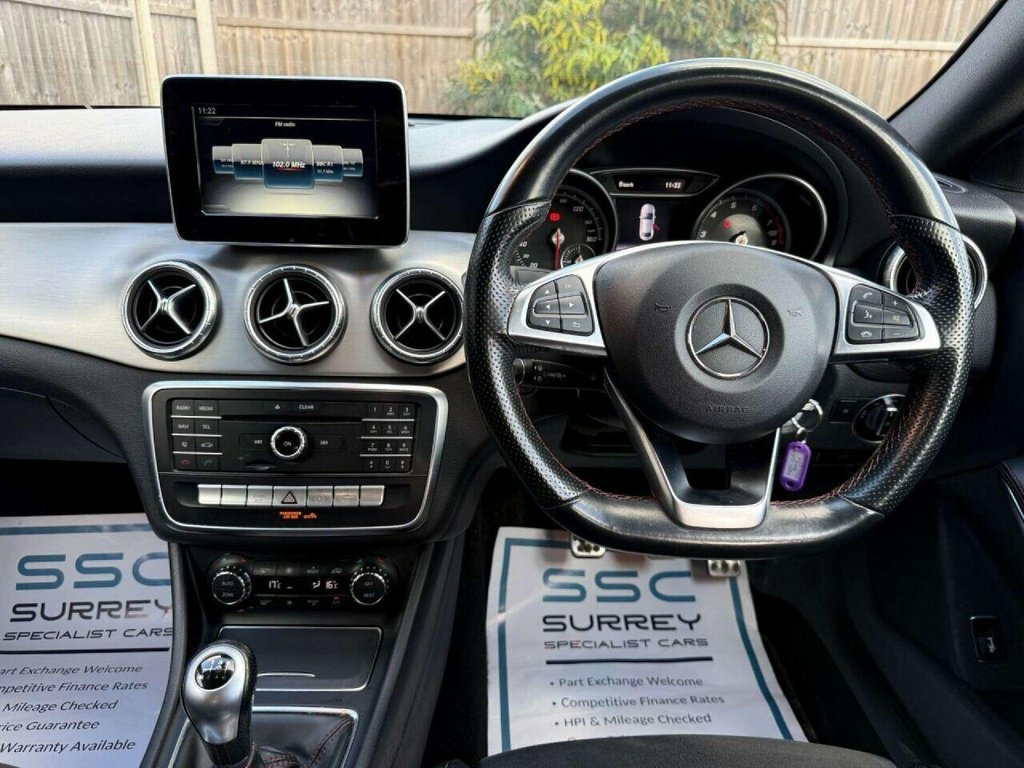 Surrey Specialist Cars are proud to present our lovely Mercedes Benz CLA180 AMG Line. This amazing car comes with Service History, finished in stunning metallic black with grey contrast interior. The car was last serviced in April 2025 at 51,516 miles. The car has a MOT until January 2026 so it is ready to go. The 1.6L Petrol engine offers superb economy at 52 MPG on combined cycle. Features Include Multifunction Steering Wheel, Trip Computer, Satellite Navigation, Parking Sensors, Stereo/Phone Control, Cruise Control, Speed Limiter, Stereo/Phone Control, Apple CarPlay, FM Radio, CD Player, Bluetooth Audio, USB Input, Eco Mode, Climate Control, 12V Charging Socket, 6 Speed Manual Gearbox, Electric Windows, 18 Inch AMG Alloy Wheels and two Remote Control Keys to name a few. We are open 7 days a week, and prepare all of our cars to the highest standards. We have a Click & Collect option available, and can also arrange delivery on request. All cars are HPI clear and a full history report is provided with every car. We welcome any inspection and viewing is highly recommended. All cars are available with our AA warranty starting from just ?150 for 3 months. Debit and credit card facilities are available and we offer competitive finance packages. If you have any questions or would like to view any of our cars give us a call or drop us a message on whatsapp 01483 363 144 to arrange an appointment with one of our team. We also offer full bespoke walkaround videos on request. W 18in Alloy Wheels - AMG 5-Twin Spoke Pai, ABS - Anti-Lock Braking System, AMG Bodystyling, ASR - Acceleration Skid Control, ATTENTION Assist, Active Bonnet - Pedestrian Safety Measur, Active Brake Assist with Hold Function -, Active Braking Assist, Air Conditioning - THERMOTRONIC Luxury A, Air Vents with Chrome Surround and Cruci, Airbag - Kneebag for Driver, Airbags - Automatic Front Passenger Airb, Airbags - Driver and Front Passenger, Airbags - Sidebag for Driver and Front P, Airbags - Windowbags, Ambient Lighting - Interior Door Handles, Ambient Lighting - Single Colour in Head, Anti-Theft Protection Package, Armrest - Front on Centre Console with F, Audio 20 CD Multimedia System, Beltli