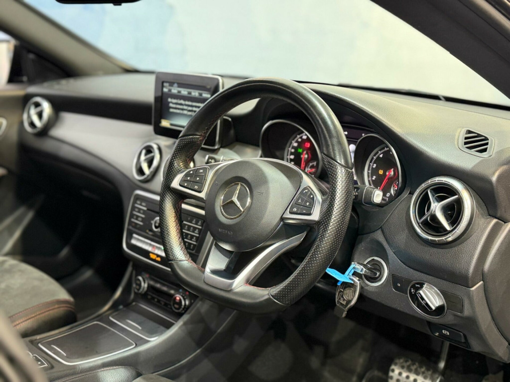 This 2018 Mercedes Benz CLA180 AMG Line is a superb example, having had only two owners from new. It boasts a 1.6 litre petrol engine and meets Euro 6 emissions standards. Inside, you'll find a wealth of desirable features including a panoramic sliding sunroof, heated seats as part of the Exclusive and AMG Exclusive packages, and a heated windscreen washer system for those colder mornings. The Lane Tracking Package, which includes Blind Spot Assistance, adds an extra layer of safety and awareness.This particular CLA180 AMG Line offers excellent running costs, achieving an impressive 52 miles per gallon. Its low CO2 emissions and low insurance group rating further highlight its efficiency and affordability compared to similar vehicles. This combination of stylish design, premium features, and economical performance makes it a compelling choice. in alloy wheels - amg 5-twin spoke painted in black with a high sheen finish, abs - anti-lock braking system with bas - brake assist, amg bodystyling, attention assist, active bonnet, active brake assist with hold function and hill start assist, adaptive brake assist, adaptive brake lamps, air conditioning - air vents with chrome surround and cruciform nozzle, airbag - kneebag for driver, airbags - dual stage - driver and front passenger, airbags - sidebags for driver and front passenger, airbags - windowbags for driver and front passenger, ambient lighting - interior door handles, ambient lighting in headrests, anti-theft protection package, armrest - front on centre console with fore-aft adjustment and contrast stitching with stowage compartment beneath, audio 20 radio-cd, automatic child seat recognition sensor, automatic front passenger airbag deactivation, beltline strips - black, brake calipers with mercedes-benz lettering at the front, brake pad wear indicator, bumpers - body coloured, childproof locks - manually operated for rear doors and electrically operated for rear power windows, courtesy and warning lights in front doors and boot lid, crash-responsive emergency lighting, cruise control with limiter, door handles - body coloured, door mirrors - electrically adjustable and heated, door mirrors - painted black with integrated led indicators and aspherically curved mirror glass, double cup holder in centre console, dynamic select, esp - electronic stability programme with asr - acceleration skid control, esp curve dynamic assist, electric parking brake, electric windows - 4, electronic key - chrome surround, first aid kit and warning triangle, floor mats - red stitched edging - amg lettering, fluid level warning indicator for fuel - oil - coolant and washer fluid, footwell lighting - front and rear, glass - rear windscreen - heated with timer control, headlamp assist - automatic headlamp activation in dark conditions, headlamps - led high performance with integrated led daytime running lights, isofix and top-tether child seat fixing points in rear - two outer seats, illuminated front door sills with mercedes-benz lettering, illuminated glove compartment, instrument cluster with 4 analogue dials and needles suspended in six-o-clock position, interior lighting - sun visor with illuminated vanity mirror for driver and front passenger, interior lighting in rear with integral reading lights and locator lighting, keyless-go starting function, led tail lights, lamp failure indicator, lighting in stowage compartment, load securing rings in luggage compartment, media display - 7in, media interface, mercedes connect me - standard services, outside temperature gauge, parking pilot, privacy glass - from b-pillar backwards, radiator grille - diamond with pins in chrome and single louvre in high-gloss black with chrome insert, rain-sensing windscreen wipers with two sensitivity settings, rear fog light, remote central locking and crash sensor with emergency opening function, roof lining - black, seat belts - rear three-point - 3, seat belts reminder - front and rear, seat occupancy sensor - front passenger seat, seats - front cushion angle adjustment, seats - front cushion length adjustment, seats - front seats - height adjustable, seats - rear seat backrests - split folding 1-3 - 2-3, service indicator assyst, side skirts - body-coloured, smartphone integration, sports direct steering with variable servo assistance and variable steering ratio, sports pedals in brushed stainless steel with black rubber studs, sports seats with integrated head restraints, steering column - manually adjustable for height and reach, steering wheel - 3-spoke leather - 12-button multi-function with flattened lower section and perforated grip area and red contrast stitching, steering wheel - gear shift paddles, suspension - comfort - lowered by 20mm front and 15mm rear, thermotronic - luxury automatic climate control - dual zone, tirefit with tyre inflation compressor, third brake light in led technology, trim - light aluminium with longitudinal grain, trip computer in multi-function display showing current fuel consumption, tyre pressure monitoring system, airbags - rear sidebags, lane tracking package, panoramic sliding sunroof, heated windscreen washer system, amg exclusive package, exclusive package