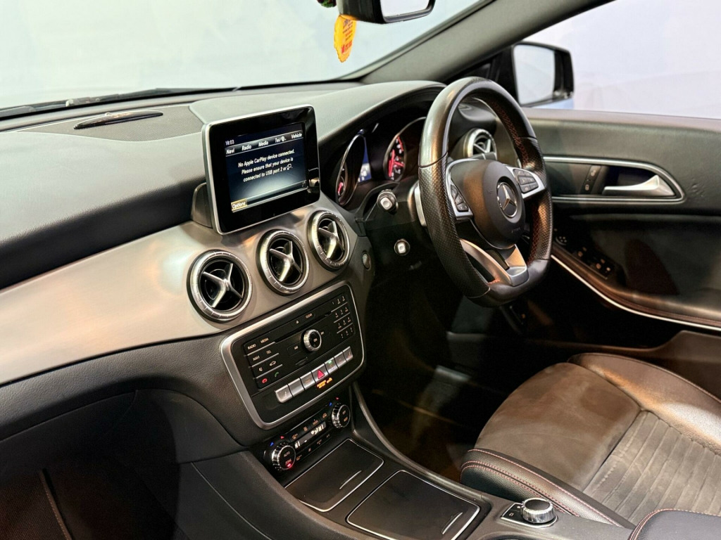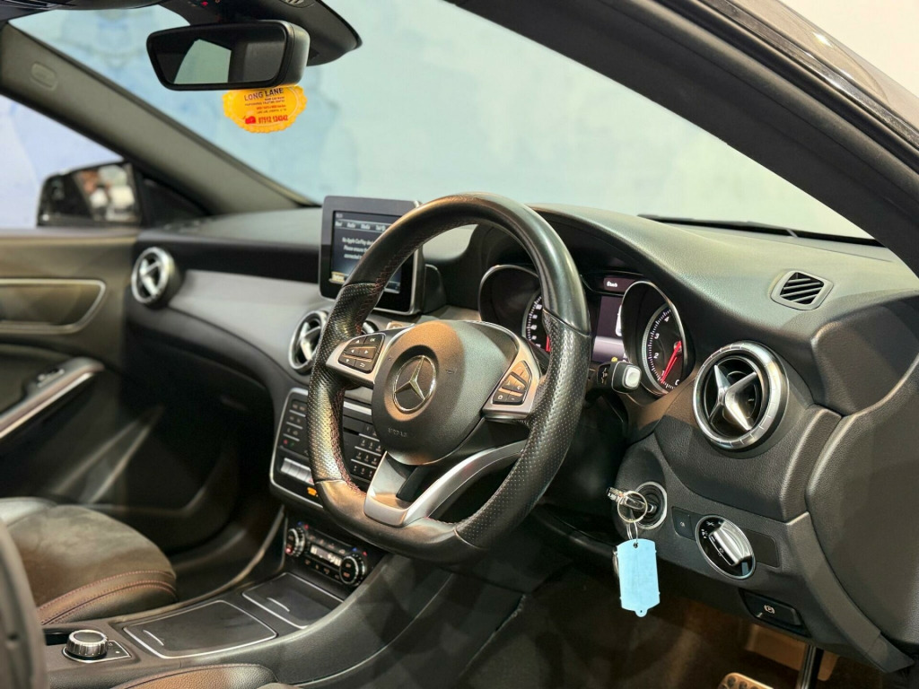 This 2018 Mercedes Benz CLA180 AMG Line offers a superb blend of style and practicality, making it an excellent choice for discerning drivers. Powered by a 1.6 litre petrol engine and meeting Euro 6 emissions standards, this model boasts the sporty AMG Line trim. Inside, you'll find a host of desirable features including heated front seats for added comfort, a panoramic sliding sunroof that floods the cabin with light, and the impressive Harman Kardon Logic 7 surround sound system for an immersive audio experience. Manoeuvring is made easier with a 180 degree reversing camera complete with parking guidelines, and the AMG Exclusive Package further enhances the premium feel.This Mercedes Benz CLA180 AMG Line stands out with its impressive fuel economy, achieving a highlight of 52 miles per gallon, which indicates it is more economical than many similar vehicles. Furthermore, its low insurance group rating suggests that running costs will be more affordable. The vehicle also benefits from low CO2 emissions, demonstrating its environmental consideration compared to other cars in its class. mand online system, dab digital radio tuner, garmin map pilot navigation system, media display - 8in, mercedes connect me - remote online, reversing camera with parking guidelines - 180 degree view, surround sound system - harman kardon logic 7, airbags - rear sidebags, headlights - adaptive high beam assist, 18in alloy wheels - amg multi-spoke design in high-gloss black with high-sheen finish, heated windscreen washer system, mirror package, panoramic sliding sunroof, ambient lighting - 12 colours, amg exclusive package, amg exclusive package - leather - lava black with red perforations, artico leather-dinamica microfibre - black with contrast stitching, heated front seats, rear armrest with twin cup holder and through-loading facility, stowage package, selective damping system, 18in alloy wheels - amg multi-spoke design in titanium grey with high-sheen finish, artico leather-dinamica microfibre - black with red contrast stitching, 18in alloy wheels - amg 5-twin spoke painted in black with a high sheen finish, abs - anti-lock braking system with bas - brake assist, amg bodystyling, attention assist, active bonnet, active brake assist with hold function and hill start assist, adaptive brake assist, adaptive brake lamps, air conditioning - air vents with chrome surround and cruciform nozzle, airbag - kneebag for driver, airbags - dual stage - driver and front passenger, airbags - sidebags for driver and front passenger, airbags - windowbags for driver and front passenger, ambient lighting - interior door handles, ambient lighting in headrests, anti-theft protection package, armrest - front on centre console with fore-aft adjustment and contrast stitching with stowage compartment beneath, audio 20 radio-cd, automatic child seat recognition sensor, automatic front passenger airbag deactivation, beltline strips - black, brake calipers with mercedes-benz lettering at the front, brake pad wear indicator, bumpers - body coloured, childproof locks - manually operated for rear doors and electrically operated for rear power windows, courtesy and warning lights in front doors and boot lid, crash-responsive emergency lighting, cruise control with limiter, door handles - body coloured, door mirrors - electrically adjustable and heated, door mirrors - painted black with integrated led indicators and aspherically curved mirror glass, double cup holder in centre console, dynamic select, esp - electronic stability programme with asr - acceleration skid control, esp curve dynamic assist, electric parking brake, electric windows - 4, electronic key - chrome surround, first aid kit and warning triangle, floor mats - red stitched edging - amg lettering, fluid level warning indicator for fuel - oil - coolant and washer fluid, footwell lighting - front and rear, glass - rear windscreen - heated with timer control, headlamp assist - automatic headlamp activation in dark conditions, headlamps - led high performance with integrated led daytime running lights, isofix and top-tether child seat fixing points in rear - two outer seats, illuminated front door sills with mercedes-benz lettering, illuminated glove compartment, instrument cluster with 4 analogue dials and needles suspended in six-o-clock position, interior lighting - sun visor with illuminated vanity mirror for driver and front passenger, interior lighting in rear with integral reading lights and locator lighting, keyless-go starting function, led tail lights, lamp failure indicator, lighting in stowage compartment, load securing rings in luggage compartment, media display - 7in, media interface, mercedes connect me - standard services, outside temperature gauge, parking pilot, privacy glass - from b-pillar backwards, radiator grille - diamond with pins in chrome and single louvre in high-gloss black with chrome insert, rain-sensing windscreen wipers with two sensitivity settings, rear fog light, remote central locking and crash sensor with emergency opening function, roof lining - black, seat belts - rear three-point - 3, seat belts reminder - front and rear, seat occupancy sensor - front passenger seat, seats - front cushion angle adjustment, seats - front cushion length adjustment, seats - front seats - height adjustable, seats - rear seat backrests - split folding 1-3 - 2-3, service indicator assyst, side skirts - body-coloured, smartphone integration, sports direct steering with variable servo assistance and variable steering ratio, sports pedals in brushed stainless steel with black rubber studs, sports seats with integrated head restraints, steering column - manually adjustable for height and reach, steering wheel - 3-spoke leather - 12-button multi-function with flattened lower section and perforated grip area and red contrast stitching, steering wheel - gear shift paddles, suspension - comfort - lowered by 20mm front and 15mm rear, thermotronic - luxury automatic 