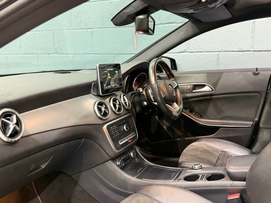 This 2017 Mercedes Benz CLA180 AMG Line offers a superb blend of style and practicality. As a Euro 6 compliant model, it features a 1.6 litre petrol engine and is presented in the desirable AMG Line trim. This particular example benefits from a host of premium features including a panoramic sliding sunroof, heated front seats as part of the AMG Exclusive Package, and KEYLESS-GO for effortless entry and locking. Manoeuvring is made simple with the reversing camera, offering a 180 degree view with parking guidelines.This Mercedes Benz CLA180 AMG Line stands out with its impressive fuel economy, achieving up to 52 miles per gallon, which is better than many similar vehicles. Furthermore, its low CO2 emissions and low insurance group rating indicate that running costs are kept to a minimum, making it an economical choice for everyday driving. in alloy wheels - amg 5-twin spoke painted in black with a high sheen finish, abs - anti-lock braking system, amg bodystyling, asr - acceleration skid control, attention assist, active bonnet - pedestrian safety measure which detects an impact and raises bonnet by 65mm, active brake assist with hold function - hill start assist - priming and dry braking in the wet, active braking assist, air conditioning - thermotronic luxury automatic climate control - two-zone, air vents with chrome surround and cruciform nozzle, airbag - kneebag for driver, airbags - automatic front passenger airbag deactivation, airbags - driver and front passenger, airbags - sidebag for driver and front passenger - combined thorax-pelvis bag, airbags - windowbags, ambient lighting - interior door handles, ambient lighting - single colour in headrests, anti-theft protection package, armrest - front on centre console with fore-aft adjustment and contrast stitching with stowage compartment beneath, audio 20 cd multimedia system, beltline strips - black, bluetooth interface with hd voice-capable hands-free function and audio streaming, brake calipers with mercedes-benz lettering at the front, braking - adaptive brake lights - flash under emergency braking, brushed stainless steel sports pedals with rubber studs, bumpers - body coloured, cd player - mp3-wma-aac-wav-compatible, childproof locks - manually operated for rear doors and electrically operated for rear power windows, controller on centre console, crash-responsive emergency lighting, cruise control with limiter, dashboard trim - light aluminium with longitudinal grain, door handles - body coloured, door mirrors - electrically adjustable and heated, door mirrors - painted black with integrated led indicators and aspherically curved mirror glass, double cup holder in centre console, dynamic select, esp cornering dynamics assist, electric parking brake, electric windows - 4, electronic key - chrome surround, exhaust system - twin-pipe with rectangular tailpipes in polished stainless steel, first aid kit, floor mats - red stitched edging - amg lettering, fluid level warning indicator for fuel - oil - coolant and washer fluid, footwell lighting - front and rear, glass - rear windscreen - heated with timer control, headlamp assist - automatic headlamp activation in dark conditions, headlamps - led high performance with integrated led daytime running lights, isofix and top-tether child seat fixing points in rear - two outer seats, illuminated front door sills with mercedes-benz lettering, illuminated glove compartment, instrument cluster - fluid level warning indicator for fuel - oil - coolant and washer fluid, instrument cluster - outside temperature display, instrument cluster - service indicator assyst, instrument cluster - trip computer in multi-function display showing current fuel consumption, instrument cluster with 4 analogue dials and needles suspended in six-o-clock position, interior lighting - courtesy white and warning red lights in the front doors and boot lid, interior lighting - rear interior lighting with integral reading lamps and locator lighting, interior lighting - sun visor with illuminated vanity mirror for driver and front passenger, led rear tail lights, lighting in storage compartment and sun visors with illuminated vanity mirrors, load securing rings in luggage compartment, media display - 7in, mercedes me connect, parking pilot, power steering - sports direct-steer with speed-sensitive servo assistance and variable steering ratio, privacy glass from b-pillar backwards, radiator grille - diamond grille with pins in chrome and single high-gloss painted louvre with chrome inserts, radio with twin tuner and traffic information decoder - tp-ta, remote central locking and crash sensor with emergency opening function, roof lining - black, sd card slot, seat belt reminder - front and rear, seat belts - rear three-point - 3, seat occupancy sensor - front passenger seat, seats - front cushion length adjustment, seats - front seats - height adjustable, seats - front seats with adjustable seat cushion angle, seats - rear seat backrests - split folding 1-3 - 2-3, seats - sports, side skirts - body coloured, smartphone integration, steering column - manually adjustable for height and reach, steering wheel - 3-spoke 12-button multi-function sports steering wheel in leather with perforated in grip area - flattened bottom section and red contrast stitching, suspension - comfort - lowered by 20mm front and 15mm rear, tirefit with tyre inflation compressor, third brake light in led technology, two usb connections in centre armrest for external audio devices and storage media, tyre pressure monitoring system, warning triangle, wiper system - windscreen wipers including rain sensor with two sensitivity stages, comand online system, garmin map pilot navigation system, media display - 8in, mercedes connect me - remote online, reversing camera with parking guidelines - 180 degree view, 8in colour display, mercedes me - remote online services, mercedes me connect - remote online, 18in alloy wheels - amg multi-spoke design in high-g