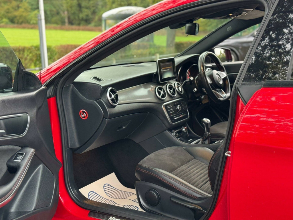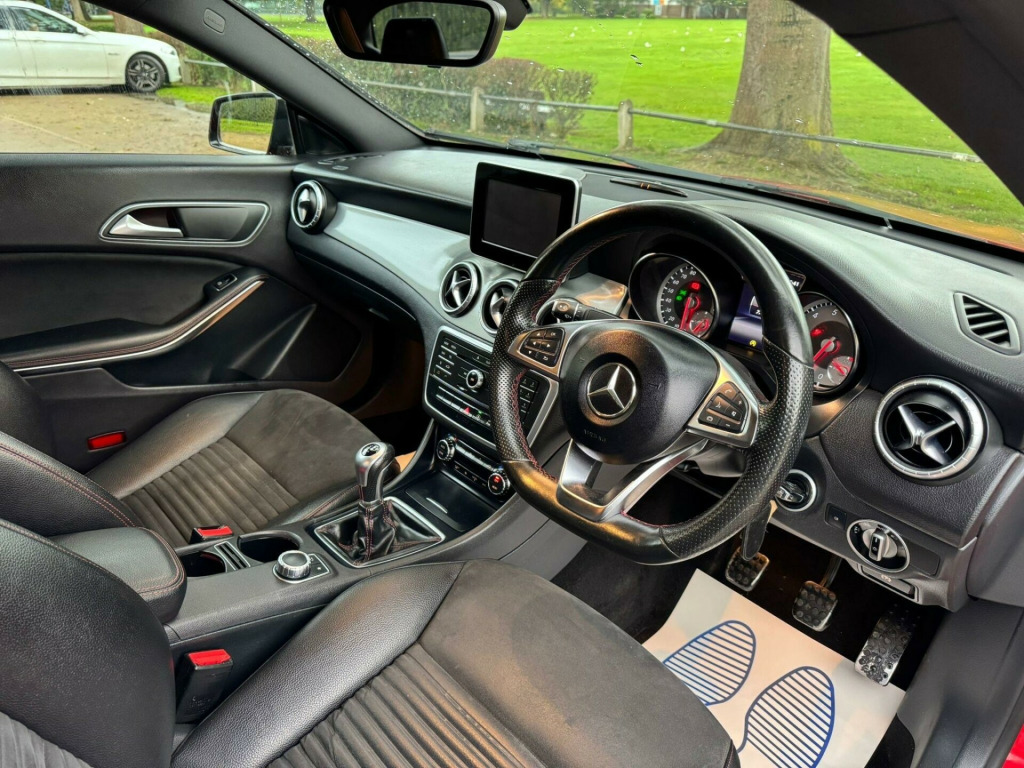 This 2015 Mercedes Benz CLA180 AMG Sport is a standout example, having been cherished by only two owners. It boasts a sophisticated AMG Sport trim and is powered by an efficient 1.6L petrol engine, meeting the Euro 6 emission standards. Inside, you'll find the desirable AMG Exclusive Package featuring luxurious Lava Black leather with striking red perforations. This CLA also comes equipped with stylish 18in AMG Multi-Spoke alloy wheels in a black finish, a helpful reversing camera with parking guidelines, a tyre pressure monitoring system, and an 8-inch tablet-style colour display for all your infotainment needs.Experience exceptional running costs with this Mercedes Benz CLA, achieving an impressive fuel economy of 51 miles per gallon. Its low CO2 emissions and low insurance group rating further contribute to its affordability, making it a sensible choice compared to many other vehicles in its class. This combination of premium features, efficient performance, and cost-effective ownership makes the CLA180 AMG Sport a compelling proposition. inch tablet-style colour display, dab digital radio tuner, reversing camera with parking guidelines, 18in alloy wheels - amg multi-spoke design in black finish, amg exclusive package - leather - lava black with red perforations, 12v socket, 18in alloy wheels - amg 5-twin-spoke design, 5.8-inch tablet-style colour display, abs - anti-lock braking system, amg bodystyling - front and rear apron and side skirts, asr - acceleration skid control, attention assist, active bonnet - pedestrian safety measure which detects an impact and raises bonnet by 65mm, active park assist, adaptive brake assist with hold function and hill start assist, adaptive brake lights, air vents with chrome surround and cruciform nozzle, airbag - drivers knee, airbag - dual-stage - front passenger, airbags - dual-stage - driver, airbags - head for driver and front passenger, airbags - windowbags for driver and front passenger, alarm system with immobiliser and interior protection, audio 20 radio-cd, automatic child seat recognition sensor, automatic climate control - two-zone, bas - brake assist, beltline strips - black, bluetooth interface, brake-pad wear warning indicator, bumpers - body-coloured, centre armrest - front with storage, childproof locks - manually operated for rear doors and electrically operated for rear power windows, collision prevention assist, controller on centre console with chrome surround, crash sensor with emergency opening function for doors, crash-responsive emergency lighting, cruise control with speedtronic variable speed limiter, cup holder - twin, door handles - body-coloured, door mirror caps - black, door mirrors - electrically adjustable and heated, door mirrors - integrated led indicators, esp - electronic stability programme, electric parking brake, electronic key - chrome surround, exhaust system - twin-pipe with rectangular tailpipes in polished stainless steel, first aid kit, floor mats - amg, fluid level warning indicator for fuel - oil - coolant and washer fluid, footwell lights in front, gear shift trimmed in leather, glove compartment - illuminated, headlight assist - automatic headlight activation, headlight wash, headlights - bi-xenon, headlights - integrated daytime running lights - led, heated rear window with timer control, high level third brake light - led, isofix and top-tether child seat fixing points in rear - two outer seats, illuminated reading lights and console light in rear roof lining, illuminated vanity mirrors, illumination - storage compartment, illumination for front door sills, illumination for headrests, indicators - lane change function, instrument cluster with four analogue dials and needles suspended in six-o-clock position, integrated head restraints, light failure indicator, light and sight package, load-securing rings in luggage compartment, luggage compartment cover, outside temperature gauge, parking sensor - front, parking sensor - rear, pollen filter, power steering - speed-sensitive power assistance and variable steering ratio, pre-wiring for becker map pilot navigation system, privacy glass, radiator grille - single louvre in diamond design, radio aerial roof spoiler, rain-sensing windscreen wipers, rear fog light, rear seats - split folding 1-3 - 2-3, rear tail lights - led, remote central locking, roof lining - black, seat - passenger height-adjustable, seat belt reminder - front and rear, seat comfort package - seat height adjusters and seat cushion angle adjustment on front seats, seat occupancy sensor - front passenger seat, seats - front manually adjustable, seats - sports, service indicator assyst, side skirts - body-coloured, sidebags for driver and front passenger, speakers x6, sports pedals with rubber studs, steering column - manually adjustable for height and reach, steering wheel - 3-spoke - trimmed in leather with perforated leather in grip area, steering wheel - multi-function, steering wheel - sports - flat bottom design, suspension - lowered by 15mm, tirefit tyre-sealant kit, telephone keypad, trim - light aluminium with longitudinal grain, trip computer, tyre pressure monitoring system, usb port, warning triangle, windows - electric x4