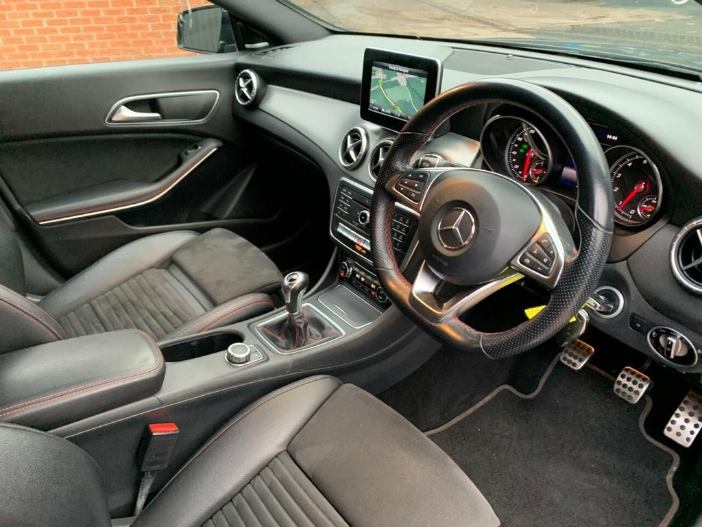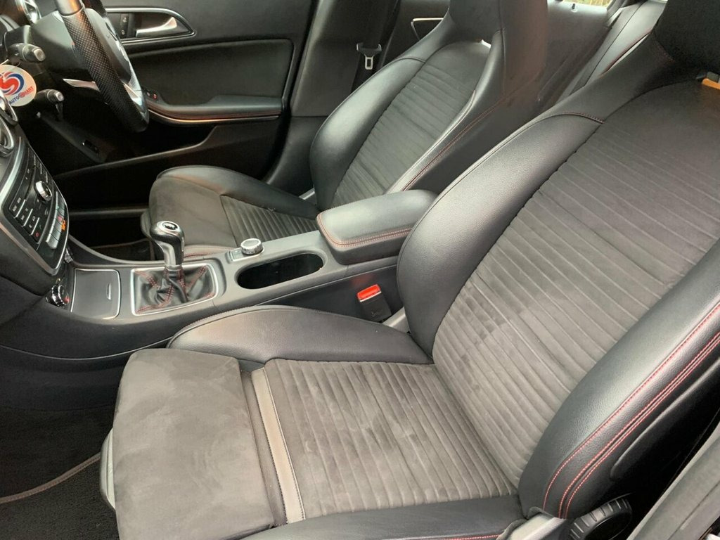 STUNNING MERCEDES CLA 200 AMG LINE EDITION SHOOTING BRAKE MANUAL GEARBOX OFFERED IN GLEAMING COSMOS BLACK/HALF BLACK LEATHER SPORTS SEATS WITH RED STITCHING/DUAL ZONE CLIMATE CONTROL/MULTI FUNCTION STEERING WHEEL/CRUISE CONTROL/ELECTRIC DOOR MIRRORS/FRONT AND REAR PARKING SENSORS/18 INCH AMG ALLOY WHEELS/AMG BODYSTYLING/SUN PROTECTION GLASS/SERVICE HISTORY/EXCELLENT CONDITION INSIDE AND OUT/SERVICE HISTORY/PX WELCOME/JUST ARRIVED AND AWAITING PREPERATION. 18in Alloy Wheels - AMG 5 Twin Spoke Des, 7-inch Tablet-Style Media Display, ABS - Anti-Lock Braking System with BAS , Active Bonnet - Pedestrian Safety Measur, Active Brake Assist with Hold Function -, Adaptive Brake Assist, Air Conditioning - THERMOTRONIC Luxury A, Air Vents with Chrome Surround and Cruci, Airbag - Kneebag for Driver, Airbags - Dual Stage - Driver and Front , Airbags - Sidebags for Driver and Front , Airbags - Windowbags for Driver and Fron, Ambient Lighting - Interior Door Handles, Ambient Lighting in Headrests, AMG Bodystyling with Front and Rear Apro, Anti-Theft Protection Package, Armrest - Front on Centre Console with F, Artico Leather-Dinamica Microfibre - Bla, ATTEN