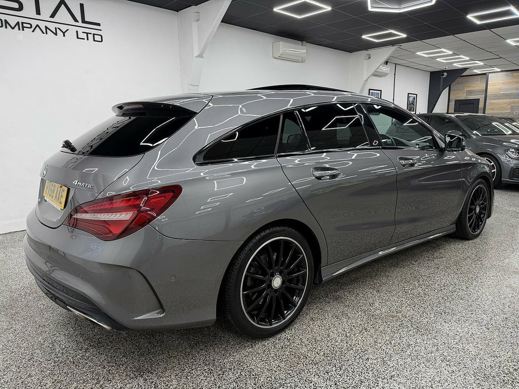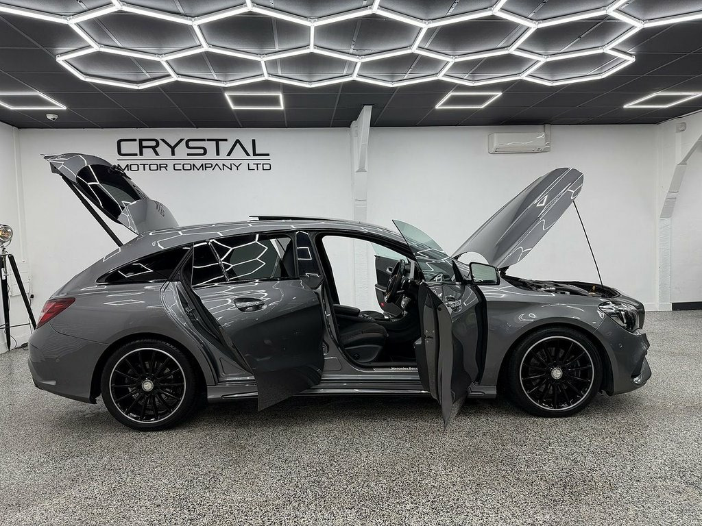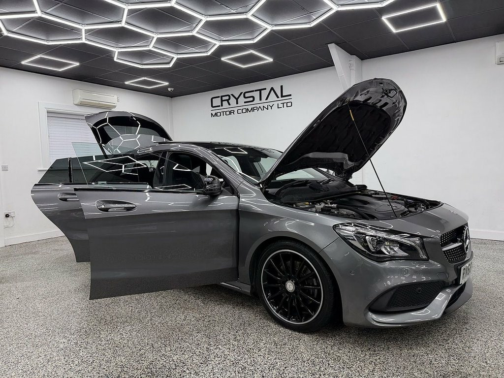 Crystal motor company are delighted to offer for sale this beautifully presented 2018 Mercedes-Benz CLA 2.0 CLA220 AMG Line Night Edition (Plus) Shooting Brake 5dr Petrol 7G-DCT 4MATIC Euro 6 (s/s) (184 ps) finished in GREY. This car comes with TWO KEYS, FOUR FORMER KEEPERS, SERVICE HISTORY. This car is equipped with 18" MULTISPOKE ALLOY WHEELS, FRONT AND REAR PARKING SENSORS, REAR REVERSING CAMERA, ELECTRIC FOLDING WING MIRRORS, OPENING PANORAMIC ROOF, PART LEATHER SEATS, ELECTRIC FRONT SEATS, MEMORY FRONT SEATS, HEATED FRONT SEATS, PADDLE SHIFT, CRUISE CONTROL, DYNAMIC DRIVE SELECTION, FM/AM RADIO, BLUETOOTH AUDIO, BLUETOOTH PHONE CONNECTION, SATNAV, APPLE CARPLAY, ANDROID AUTO. The car is 100% HPi clear. Part exchange and finance are available and all major credit and debit cards accepted. Crystal Motor Company Ltd Used Programme includes a full PDI inside and out, MOT, mileage certificate and a full inside and out valet. You can request a personalised video with attention given to any specifics you would like a better view of and we will be pleased to assist you. Likewise, we offer our customers a free collection service. Our journey began in 1996 with the aim to deliver the best possible customer experience, you will enjoy a completely hassle free approach, no pressure and great prices, values we stand by to this day. Looking to finance your next car? We have over 30 lenders on board to help each customer with their financial circumstance. Every vehicle benefits fro 18in Alloy Wheels - AMG 10 Spoke Design, 8-inch Tablet-Style Media Display, ABS - Anti-Lock Braking System with BAS , Active Bonnet - Pedestrian Safety Measur, Active Brake Assist with Hold Function -, Adaptive Brake Assist, Air Conditioning - Air Vents with Chrome, Air Conditioning - THERMOTRONIC Luxury A, Airbag - Kneebag for Driver, Airbags - Automatic Front Passenger Airb, Airbags - Dual Stage - Driver and Front , Airbags - Sidebags for Driver and Front , Airbags - Windowbags for Driver and Fron, Ambient Lighting - Interior Door Handles, Ambient Lighting in Headrests, AMG Bodystyling, Anti-Theft Protection Package, Armrest - Front on Centre Console with F, ATTENTION Assist - Alerts the D