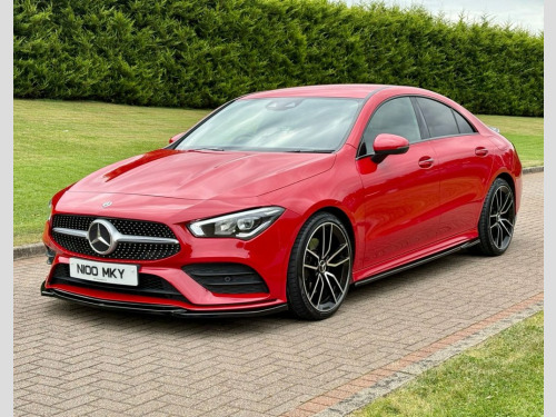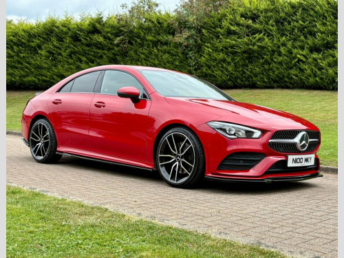 December 2019 Mercedes CLA220d AMG Line Premium Auto in Red. Full Service History & MOT'd to December 2025. Loaded with spec including Widescreen Digital Cockpit, Navigation System, Ambient Lighting, Full Leather Interior, Heated Seats, Multifunctional Steering Wheel, Dual Climate Control, Cruise Control, Bluetooth, DAB Radio, LED Daytime Running Lights, Aero Styling Kit etc. Fitted with Brand New 19" Alloys & Tyres (Optional Extra £995) FINANCE AVAILABLE AT KEEN RATES!! Viewing by Appointment Only Please. 18in Alloy Wheels - AMG 5-Twin-Spoke Des, ABS - Anti-Lock Braking System with BAS , Active Bonnet - Pedestrian Safety Measur, Active Brake ASSIST, Active Lane Keeping Assist, Adaptive Brake Lights, Air Conditioning - Air Vents with Surrou, Air Conditioning - THERMOTRONIC Luxury A, Airbag - Kneebag for Driver, Airbags - Dual-Stage - Driver and Front , Airbags - Head and Sidebags - Driver and, Airbags - Windowbags for Driver and Fron, Alarm System with Immobiliser and Interi, AMG Bodystyling, ATTENTION Assist - Monitors Steering Beh, Augmented Reality Navigation, Automatic Child Seat Recognition Sensor , Beltline Strips - Chrome, Bonnet with Power Domes, Brake Calipers - Mercedes-Benz Letterin
