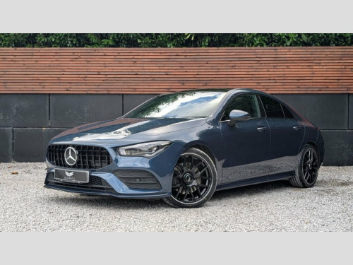 THIS FANTASTIC EXAMPLE OF A MERCEDES CLA COMES WITH A GREAT SPEC INCLUDING  - Gloss black GTS style grille - 19" Alloy wheels with brand new tyres  - Denim blue metallic paintwork - Automatic transmission with gearshift paddles - Black leather interior with gloss black and aluminium trims - Panoramic tinted glass sunroof - Digital instrument display - High resolution widescreen media display with DAB - Electric memory seats in. steering column and mirrors (memory pack) - 64 colour ambient lighting  - Upgraded Mercedes midline sound system - Reverse camera - Apple / Android CarPlay - Wireless charging pad - Electric folding mirrors - Lane keep assist - Dynamic LED headlights with automatic high beam assist - Heated seats   - Optional upgrades include:  - Brake caliper painting to a colour of your choice - Optional gloss black mirrors - Optional gloss black badges - Window surround de-chrome - Optional ceramic coating - Optional machine polish - Optional rear privacy - Optional extended 3 year manufacturer equivalent warranty available  - The fitment of the brand new tyres, alloy wheels and styling parts are subject to a fee of £249. This will also warrant the fitted parts for 12 months. - Number of keys to be confirmed at the point of sale. Leather - Black, Denim Blue, ABS - Anti-Lock Braking System with BAS , AMG Bodystyling, ATTENTION Assist - Monitors Steering Beh, Active Bonnet - Pedestrian Safety Measur, Active Brake ASSIST, Active Lane Keeping Assist, Adaptive Brake Lights, Air Conditioning - Air Vents with Surrou, Air Conditioning - THERMOTRONIC Luxury A, Airbag - Kneebag for Driver, Airbags - Dual-Stage - Driver and Front , Airbags - Head and Sidebags - Driver and, Airbags - Windowbags for Driver and Fron, Alarm System with Immobiliser and Interi, Automatic Child Seat Recognition Sensor , Beltline Strips - Chrome, Bonnet with Power Domes, Brake-Pad Wear Warning Indicator, Braking - Adaptive Brake Assist with HOL, Brushe