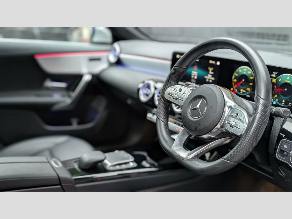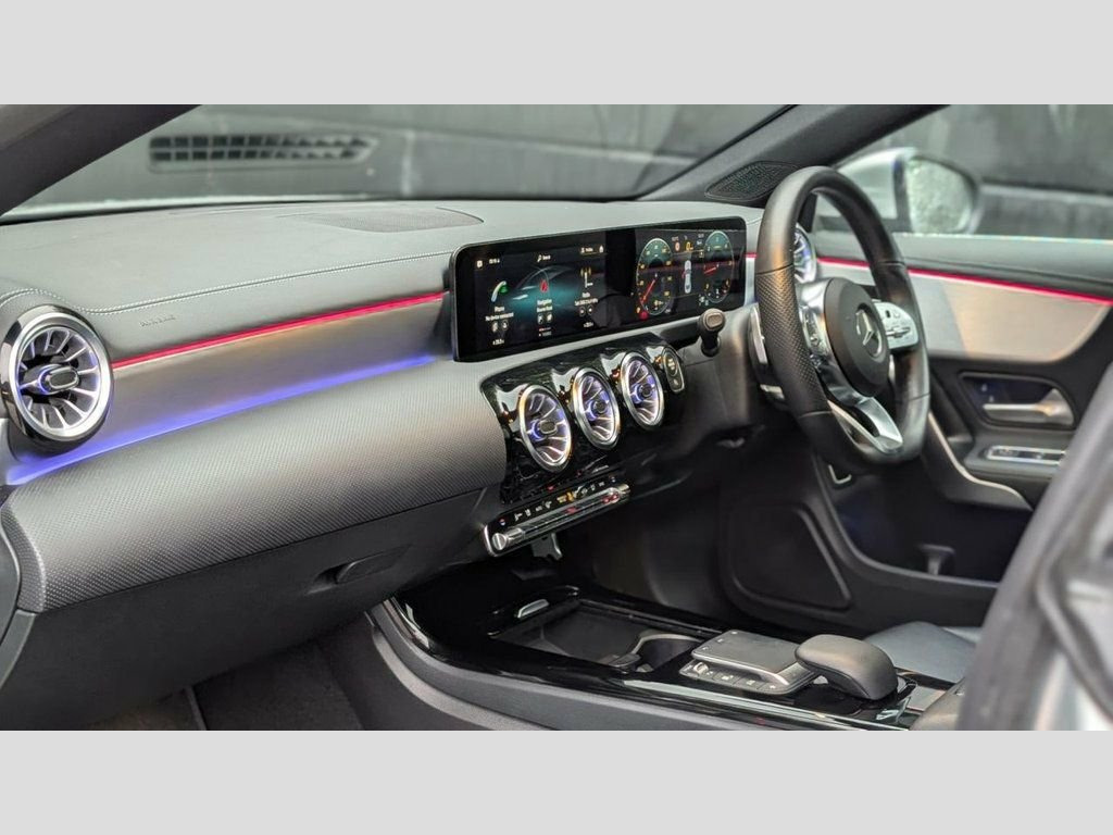 THIS FANTASTIC EXAMPLE OF A MERCEDES CLA COMES WITH A GREAT SPEC INCLUDING | Gloss black GTS style grille | 19" Alloy wheels with brand new tyres | Gloss black styling kit | Iridium silver metallic paintwork | Automatic transmission with gearshift paddles | Black leather interior with gloss black and aluminium trims | Panoramic glass sunroof | Digital widescreen instrument display | High resolution widescreen media display with DAB | 64 colour ambient lighting | Upgraded Mercedes sound system | Reverse camera | Apple / Android CarPlay | Wireless charging pad | Electric folding mirrors | Lane keep assist | Dynamic LED headlights with highbeam assist | Heated seats - Brake caliper painting to a colour of your choice - Optional gloss black badges - Optional gloss black mirrors - Window surround de-chrome - Optional ceramic coating - Optional machine polish - Optional rear privacy - Optional extended 3 year manufacturer equivalent warranty available - The fitment of the brand new tyres, alloy wheels and styling parts are subject to a fee of £249. This will also warrant the fitted parts for 12 months. - Number of keys to be confirmed at the point of sale. Leather - Black, ABS - Anti-Lock Braking System with BAS , AMG Bodystyling, ATTENTION Assist - Monitors Steering Beh, Active Bonnet - Pedestrian Safety Measur, Active Brake ASSIST, Active Lane Keeping Assist, Adaptive Brake Lights, Air Conditioning - Air Vents with Surrou, Air Conditioning - THERMOTRONIC Luxury A, Airbag - Kneebag for Driver, Airbags - Dual-Stage - Driver and Front , Airbags - Head and Sidebags - Driver and, Airbags - Windowbags for Driver and Fron, Alarm System with Immobiliser and Interi, Automatic Child Seat Recognition Sensor , Beltline Strips - Chrome, Bonnet with Power Domes, Brake Calipers - Mercedes-Benz Lettering, Brake-Pad Wear Warning Indicator, Braking - Adaptive