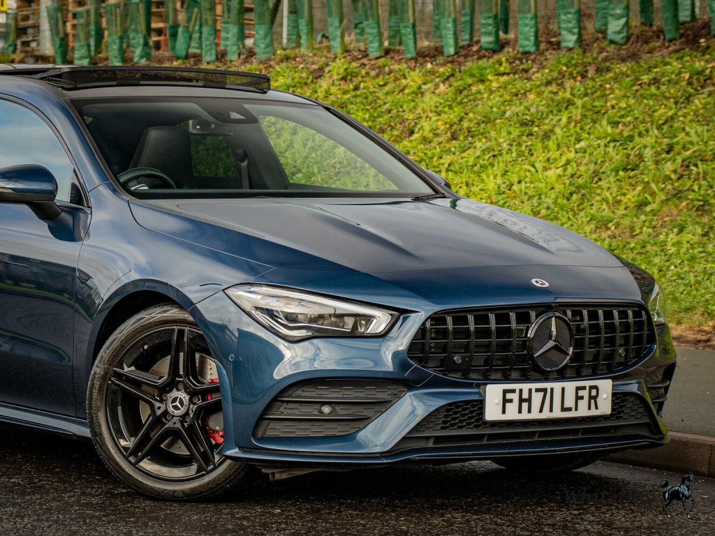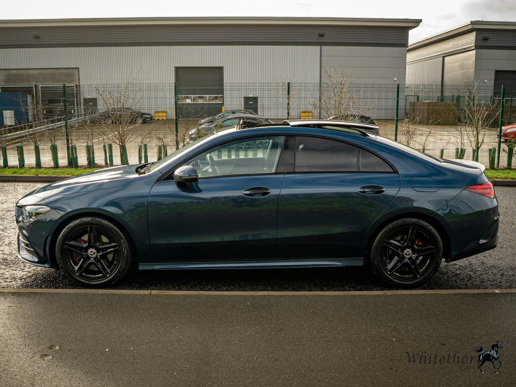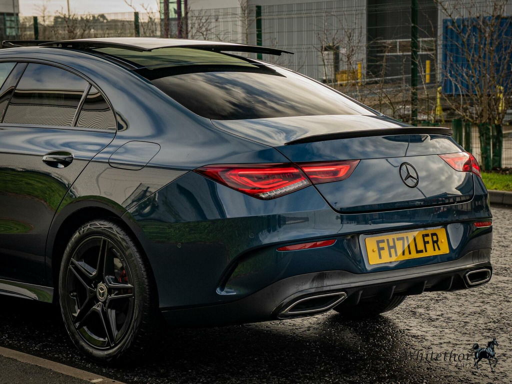 FREE DELIVERY WITHIN 200 MILES – Here we have a stunning Mercedes CLA220d AMG Line Premium Plus 2 finished in Denim Blue Metallic. This example being the fully loaded Premium Plus 2 trim comes with fantastic specification from the factory, with things such as: Panoramic Glass Sunroof – Burmester Sound System – Heated and Electrically Adjustable Front Seats – 10.25 Digital Displays – 18 AMG 5 Twin Spoke Alloy Wheels – Reversing Camera – 64 Colour Ambient Lighting – Active Lane Keeping Assist – MULTIBEAM LED Headlights with Adaptive Highbeam Assist Plus – Privacy Glass – MBUX Multimedia System – and much more. This car has had 3 services in total (2 Mercedes, 1 Specialist) last carried out at 60,000 miles. The MOT expires January 2027. 3 Month £2000 Claim Limit Warranty is included with the sale but the option to upgrade to a 12M, 24M, & 36M £5000 Claim Limit Nation Wide Premium Autoguard Warranty with Breakdown Cover is available. Multiple Finance Options, Competitive Part Exchange Prices. All Cars Are HPI, MotorCheck & Experian Clear. Further Vehicle Delivery Options Also Available. All Rights Reserved - Whitethor cars exercise all reasonable care and skill in providing you with vehicle information and data. The specification is attained through HPI, Experian & Autotrader VRM. Options Sold as packs may be shown individually, spec check is a guide so please contact us or physically verify any info that is crucial.