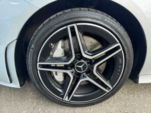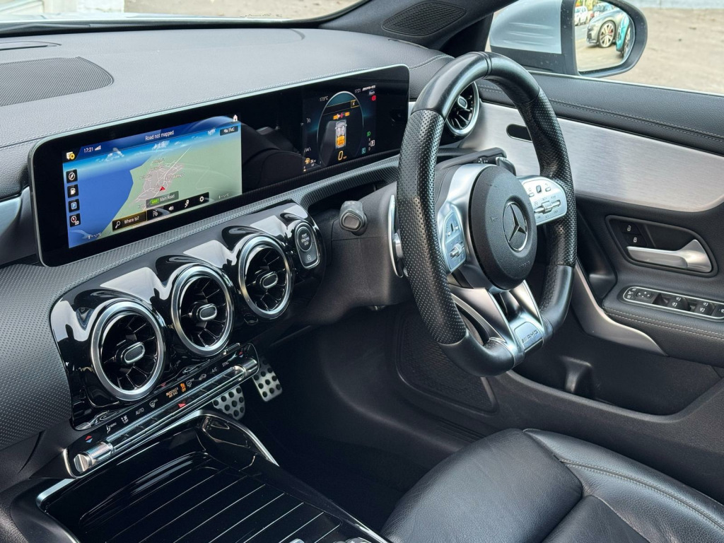 Experience the thrill of driving a 2021 Mercedes-Benz CLA35 AMG, a car that combines luxury with performance. This model boasts an AMG trim and a powerful 2.0L petrol engine, complemented by a suite of features designed for comfort and convenience. Stay connected on the move with dual Bluetooth interfaces and keep your devices charged wirelessly with the wireless charging feature. The vehicle includes Headlamp Assist, which provides automatic headlamp activation, and LED high-performance headlamps with integrated LED daytime running lights, ensuring excellent visibility. Enjoy the added comfort of heated front seats, perfect for those chilly mornings.The Mercedes-Benz CLA35 AMG stands out with its impressive acceleration, reaching 0-62mph in just 4.9 seconds. This rapid acceleration demonstrates the vehicle's superior performance capabilities when compared to similar vehicles. Paired with a four-wheel-drive system and Euro 6 emission class, this CLA offers both exhilarating performance and environmental consciousness.. 18in Alloy Wheels - AMG - 5-Twin-Spoke Bicolour Design, ABS - Anti-Lock Braking System with BAS - Brake Assist, AMG Bodystyling, AMG Radiator Grille with Twin Blade Lamella and AMG Lettering, AMG Suspension, ATTENTION Assist - Monitors Steering Behaviour and can Help Alert to Long Journey Fatigue, Active Bonnet - Pedestrian Safety Measure which Detects an Impact and Raises Bonnet by 65mm, Active Brake ASSIST, Active Lane Keeping Assist, Adaptive Brake Lights, Air Conditioning - Air Vents with Surround in Silver Chrome, Air Conditioning - THERMOTRONIC Luxury Automatic Climate Control - Two-Zone with Display, Airbag - Kneebag for Driver, Airbags - Dual-Stage - Driver and Front Passenger, Airbags - Head and Sidebags - Driver and Front Passenger, Airbags - Windowbags for Driver and Front Passenger, Alarm System with Immobiliser and Interior Protection - Thatcham Category 1, Automatic Child Seat Recognition Sensor - Pressure Sensor, Beltline Strips - Chrome, Bonnet with Power Domes, Brake Calipers with AMG Lettering on Front, Brake-Pad Wear Warning Indicator, Braking - Adaptive Brake Assist with HOLD Function and Hill Start Assist, Brushed Stainless Steel Sports Pedals with Rubber Studs, Bumpers - Body Coloured, Centre Armrest - Front with Stowage, Childproof Locks - Manually Operated for Rear Doors and Electrically Operated for Rear Power Windows, Chrome Weather Strip, Crash-Responsive Emergency Lighting, Cruise Control with Limiter, DAB Digital Radio Tuner, Direct-Steer Speed Sensitive Steering, Door Handles - Body Coloured, Door Mirrors - Electrically Adjustable and Heated with Integrated LED Indicators, Door Sills - Front Door Sills with Mercedes-Benz Lettering, Dual Bluetooth Interfaces, Dynamic Select with a Choice of Driving Modes - Slippery-Comfort-Sport-Sport Plus and Individual, ESP - Electronic Stability Programme with ASR - Acceleration Skid Control, ESP Curve Dynamic Assist, Electric Parking Brake, Exhaust System - AMG Sports Exhaust System with Two Round Tailpipes Attached to the Rear Apron, Exhaust System Featuring Automatically-Controlled Exhaust Flap, First Aid Kit and Warning Triangle, Floor Mats with Stitched AMG Lettering, Front Apron with Flics as Air Deflector Elements on the Outer Air Intakes, Front Splitter and Trim Elements on the Louvres in the Outer Air Inlets in Silver Chrome, Glass - Rear Windscreen - Heated with Timer Control, Hard-Disk Navigation, Headlamp Assist - Automatic Headlamp Activation, Headlamps - LED High Performance with Integrated LED Daytime Running Lights, Heated Front Seats, Hey Mercedes - Voice Activation, High Level Third Brake Light - LED, ISOFIX and Top-Tether Child Seat Fixing Points in Rear - Two Outer Seats, Instrument Cluster - Fluid Level Warning Indicator for Fuel - Oil - Coolant and Washer Fluid, Instrument Cluster - Outside Temperature Display, Instrument Cluster - Service Indicator ASSIST, Instrument Cluster - Trip Computer in Multi-Function Display with Current Fuel Consumption Indicator, Instrument Display - 7in Display, KEYLESS-GO Starting Function, LED Rear Tail Lights, Lamp Failure Indicator, Light and Sight Package, Live Traffic and Map Updates, Luggage Nets on Driver and Front Passengers Backrests, MBUX Multimedia System, Media Display - 10.25-inch with Touchscreen, Mercedes Me Connect - Standard Services, Mercedes-Benz Sound System - 100W, Mirror Package, Navigation Services, Parking Package, Pre-Installation for Mercedes-Benz Link, Pre-Installation for Private Car Share, Pre-Installation for Vehicle Monitoring, Pre-Installation for Vehicle Set-Up, Privacy Glass, Radio Aerial Integrated into Windshields Front and Rear, Rain-Sensing Windscreen Wipers with Two Sensitivity Settings, Rear Apron with a Diffuser Insert, Rear Axle - Multi-Link, Rear Fog Light, Remote Central Locking and Crash Sensor with Emergency Opening Function, Roof Lining - Black, Seat Belt Reminder - Front and Rear, Seat Belts - Black, Seat Belts - Rear Three-Point - 3, Seat Comfort Package, Seat Oc.
