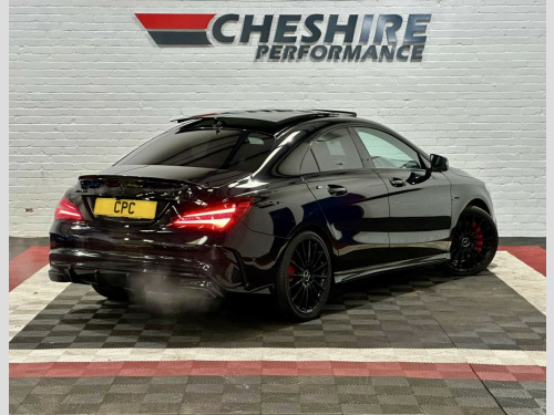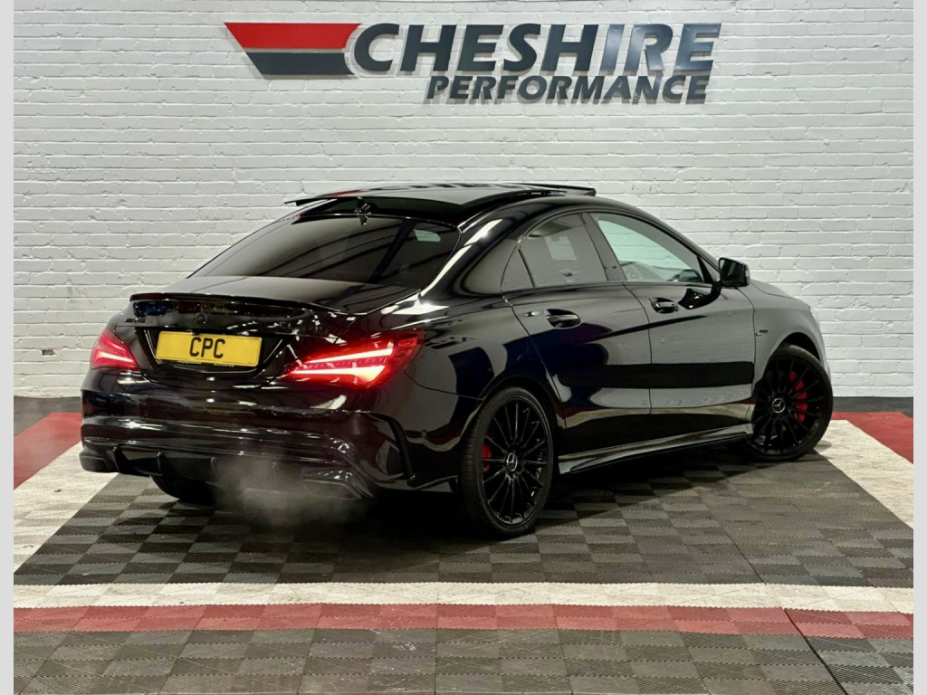 2018 67 MERCEDES-BENZ CLA45 2.0 AMG 5DR. , This Vehicle Comes With Warranty As Standard, Please Call Us For More Details!, , Stunning Example With Only 3 Previous Keepers From New Presented In Mercedes Cosmos Black Paintwork With Contrasting Black Half Leather And Alcantara Recaro Seats Complete With 19 Inch Gloss Black Alloy Wheels. , Covering 64,000 Miles From New, Backed Up With Full Service History Which Is Up To Date In The Vehicles Service Book-A Well Maintained Example. Very Clean Throughout With Excellent Bodywork, Unmarked Interior And Outstanding Wheels, New Owner Wont Be Disappointed. , Its 2.0 Litre Turbo Petrol Engine Produces 376Bhp And 450nm Of Torque And Is Completely Standard. This Is Matched With Its 7 Speed Automatic Gearbox With The Option Of Changing Gear With F1 Style Paddle Shifters Which Makes For A Superb Drive!, , Outstanding Spec Includes;, *Mercedes Cosmos Black Paintwork. *Black Half Leather And Alcantara Heated Recaro Seats. *19 Inch AMG Alloy Wheels Finished In Gloss Black Paintwork. *Mercedes Drive Modes. (Individual, Comfort, Sport, Sport+), *Electronic Tilt And Slide Panoramic Sunroof. *Electronic Retractable Roof Blind. *Brushed Aluminium Interior Inlays. *Night Pack. *Multi Function Steering Wheel. *Cruise Control. *Parking Sensors. *Reverse Camera. *Heated Wing Mirrors. *Automatic Xenon Headlights. *Automatic Windscreen Wipers. *Mercedes Multi Media Interface System. *Satellite Navigation System. *DAB Radio. *Media Interface. *CD/DVD Player. *Bluetooth Connectivity. *Memory Card. *AMG Illuminated Door Sills. *Ambient Interior Lighting. *Split Folding Rear Seats. , Excellent Spec Includes, Electric Windows, Central Locking System, Fog Lights, Trip Computer, Height Adjustable Steering Wheel, Rear View interior Mirror, Front And Rear Interior Lights, Rear Heated Screen, Cup Holders, Rear Arm Rest, Isofix And Much More. , All Our Vehicles Have Been Road Tested With Multi Point Checks And We Welcome RAC Or AA Inspections, For Your Added Peace Of Mind All Of Our Vehicles Are HPI Clear. , We Can Provide A Decision Within 30 Minutes Please Call Us To Discuss Your Requirements, Our Finance Partners Include Close Brothers | CF247 | Motonovo | Evolution And Others. , We Offer Full Dealer Facilities Including A Comfortable Customer Office An Indoor Viewing Area And We Accept All Methods Of Payment, We Are Open 7 Days A Week Please Call Ahead To Ensure The Vehicle Of Interest Is Still Available, Sales 0161 336 2007 Or General Enquiries 0161 335 0008. , Every effort has been made to ensure the vehicle has been described accurately in accordance with its age and mileage, The data above details the usual specification of the most recent model of this vehicle and may vary for the actual vehicle for sale. , Please always check the vehicle specification prior to purchase. If You Have Any Questions Please Get In Touch And We Will Be Happy To Help. , All Our Vehicles Come With Warranty Included, Extended Warranty Options Available, We Offer Finance With Competitive HP And PCP Deals Available, Visit Our Website To Use Our Online Calculator And Apply Online Today!