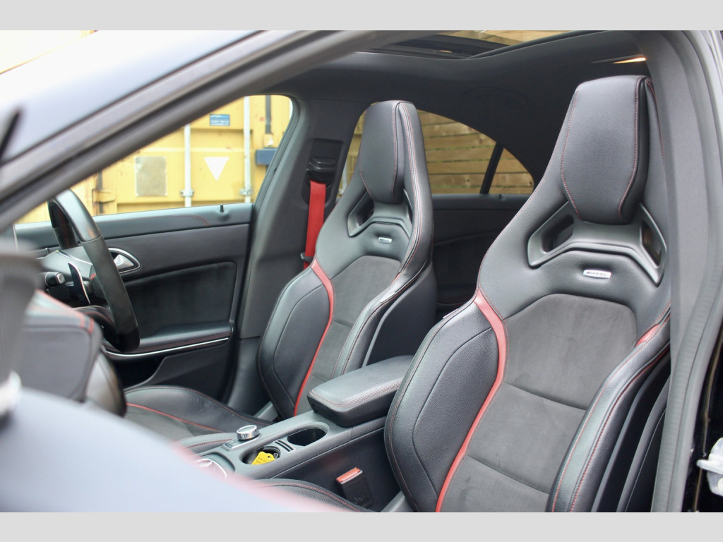Strictly appointment only, 2025 Autotrader highly rated award winner, Low rate finance available, Nationwide delivery offered. , UKI (Sudbury) Limited are pleased to offer this 2018 (68) Mercedes-Benz CLA 45 AMG for sale presented in Cosmos black metallic. This two owner CLA 45 is in fantastic condition throughout and comes with full Mercedes-Benz main dealer service history, spark plugs and dual clutch transmission oil/filter replaced in 2023 and automatic transmission oil/filter change in 2022. We will also complete a service on this car ourselves prior to sale. , There is an excellent specification on this CLA 45 which includes - AMG switchable exhaust, Electric slide/tilt panoramic sunroof, Harman Kardon Logic7 audio, AMG night package, Front and rear parking sensors, Park assist, Reverse camera, LED headlights, Automatic high beam assist, Automatic lights, Rain sensing wipers, 19 AMG multi spoke alloy wheels, Darkened rear glass, AMG aerodynamic bodykit, AMG leather/dinamica sports seats, Heated front seats, Electric folding door mirrors, Keyless GO, Satellite navigation, Bluetooth telephone and media, DAB radio, Apple CarPlay, Android auto, Red painted brake calipers, Electric front seats with memory, AMG performance steering wheel, Automatic climate control, Cruise control. , All of our vehicles are HPI clear, they also come with an M.O.T with no advisories (where applicable) and a standard 3 month/2,500 miles (Which ever comes first) warranty with options to upgrade to 3 years, we also have trained valets who are experienced in applying the Williams F1 Ceramic paint protection which we can offer at discounted rates to all of our customers. If not using UKI (Sudbury) for finance the remainder of the balance must be paid by bank transfer. We do not accept debit or credit cards. UKI Sudbury Limited charge a £99 admin fee.