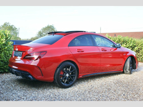 2017/17 Mercedes-Benz CLA 45 AMG 4Matic finished in jupiter red with artico leather and dinamica black interior with red contrast stitching. Only two owners from new with an impeccable full service history and fantastic specification! Spec includes 19 inch alloy wheels in gloss black, AMG centre caps, matching Michelin pilot sport 4 tyres all round, red brake calipers, panoramic glass sunroof, privacy glass, AMG sports exhaust, AMG drivers package, AMG ride control selective damping suspension, mirror package, electric folding mirrors, front and rear parking sensors, Bi-Xenon headlights with LED daytime running lights, half leather and alcantara AMG performance steering wheel with centre dial, AMG carbon fibre dashboard, COMAND satellite navigation system, DAB radio, Apple Car Play, Android Auto, USB and SD connection, bluetooth, heated seats, dual zone climate control, cruise control, multi-function steering wheel, adjustable drive modes including race mode and interior ambient lighting. Full service history having had a total of 7 services and was last serviced in January 2025 at 54087 miles. 18in Alloy Wheels - AMG 10 Spoke Design , 19in Alloy Wheels - AMG Cross-Spoke - Pa, ABS - Anti-Lock Braking System with BAS , Active Bonnet, Active Brake Assist with Hold Function a, Adaptive Brake Assist, Adaptive Brake Lamps, Air Conditioning - Air Vents with Black , Airbag - Kneebag for Driver, Airbags - Dual Stage - Driver and Front , Airbags - Sidebags for Driver and Front , Airbags - Windowbags for Driver and Fron, Ambient Lighting - Interior Door Handles, AMG Bodystyling, AMG Drive Unit with Leather-Trimmed Gear, AMG Drivers Package, AMG High-Performance Braking System with, AMG Instrument Cluster with Colour Displ, AMG Performance Exhaust, AMG Performance Seats, AMG Radiator Grille w