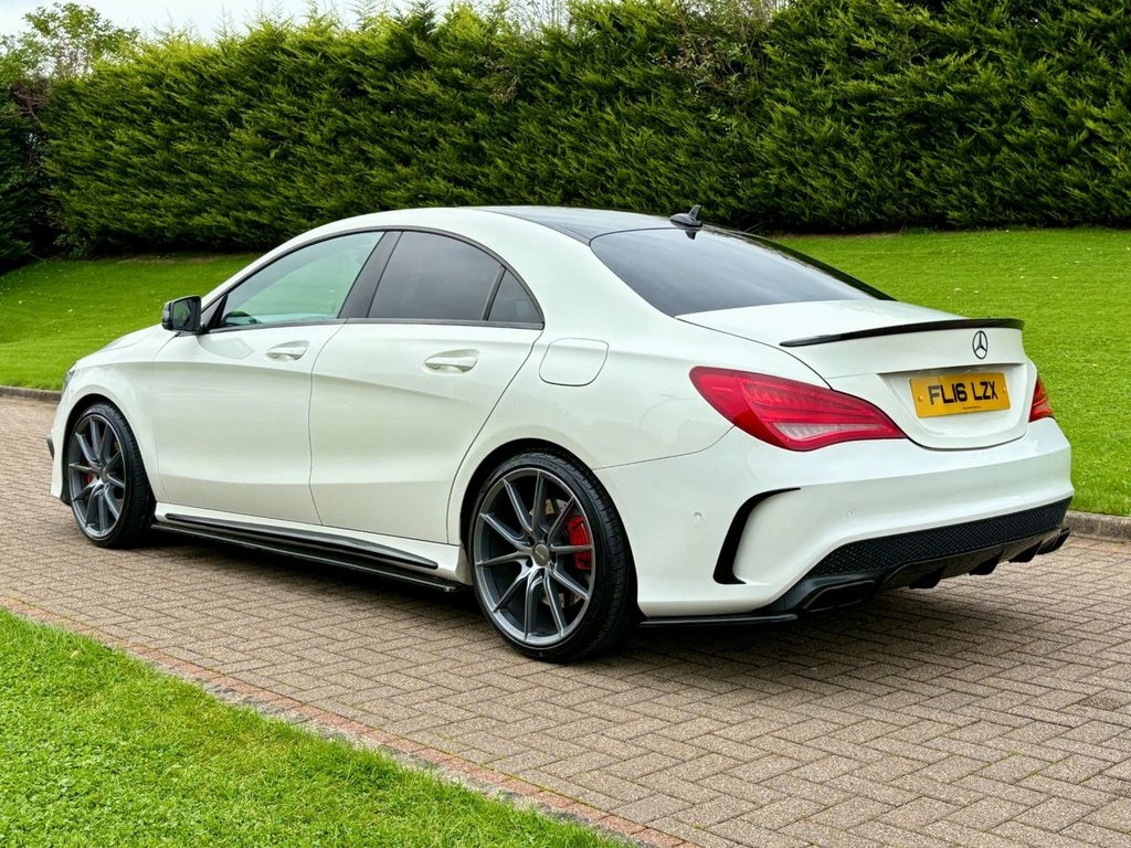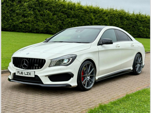 March 2016 Mercedes CLA45 4Matic AMG Auto in Calcite White. Full Service History & MOT'd to August 2026. Loaded with spec including LED Daytime Running Lights, Half Leather / Suede Bucket Seats, Cruise Control, Sport Mode, Upgraded Entertainment System, Multifunctional Steering Wheel, Bluetooth, DAB Radio, Privacy Glass, Starlight Roof etc. Fitted with Brand New 19" Veeman Alloys & Tyres (Optional Extra £1095) FINANCE AVAILABLE AT KEEN RATES!! Viewing by Appointment Only Please. 19in Alloy Wheels - AMG Multi-Spoke Desi, 7in Colour Display, ABS - Anti-Lock Braking System, Active Bonnet - Pedestrian Safety Measur, Active Park Assist with Parktronic, Adaptive Brake Assist with Hold Function, Adaptive Brake Lamps, Air Vents with High Gloss Black Surround, Airbag - Driver, Airbags - Drivers Kneebag, Airbags - Passenger, Airbags - Window, AMG Bodystyling - Front Apron with Split, AMG Bodystyling - Rear Apron with Trim S, AMG Bodystyling - Side Sill Panels with , AMG Boot Lid Spoiler, AMG Drive Unit with Leather-Trimmed Gear, AMG High-Performance Brake System, AMG Instrument Cluster with Colour Displ, AMG Lettering on Boot and TURBO 4MATIC L, AMG Radiator Grille with Twin
