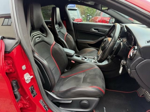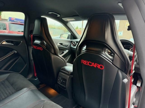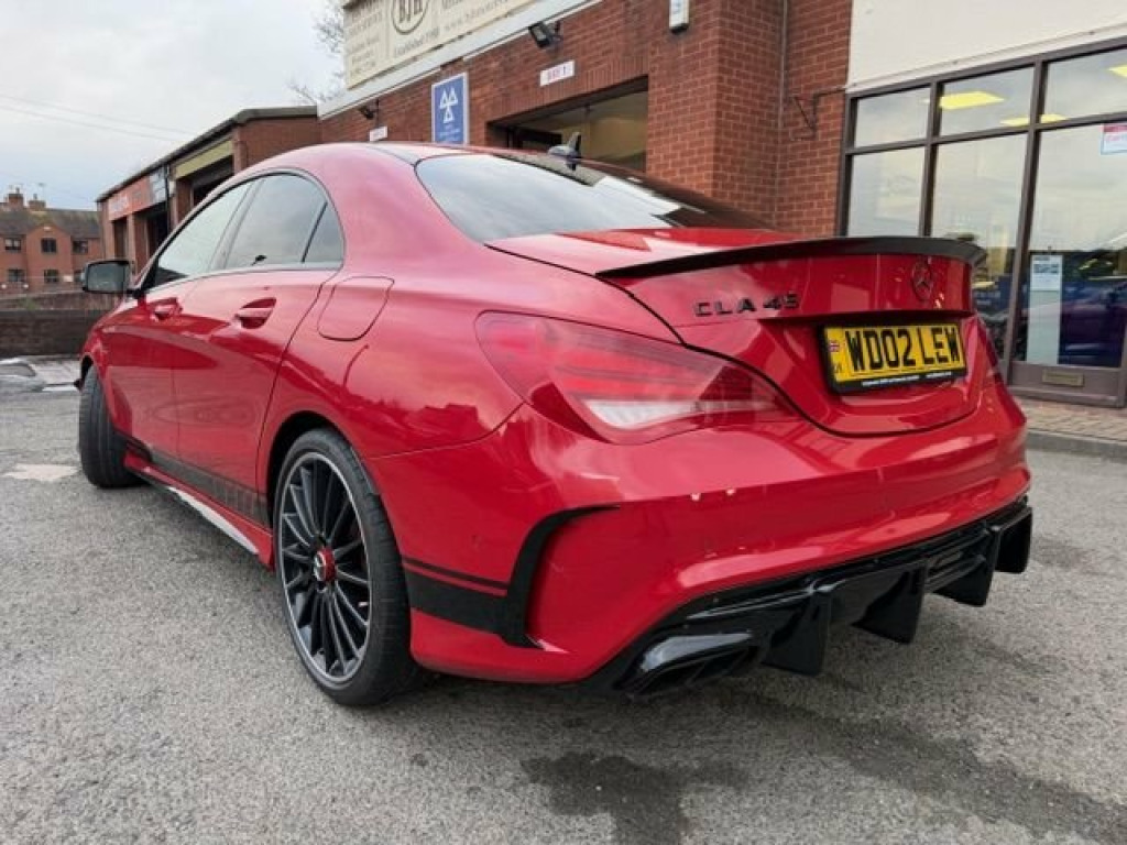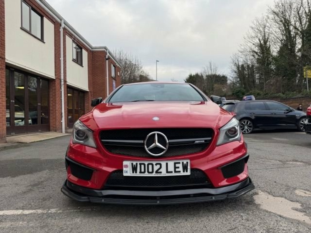 This breath-taking 2014 14-Reg Mercedes CLA 45 AMG 4Matic Auto has to be seen, driven and heard!!!! Presented in special order Jupiter Red with full black/red sports leather seats with red piping, it has covered 94,000 miles with Full Mercedes service history (7 services all Main Dealer and has just been pre-MOT'd with 4 new tyres, new brake discs front and back, front link bars and all other advisories repaired) and comes with what must be every possible extra you could have!!! on top of the standard specification it has £4,500 worth of extras yes £4,500 worth!!! These include Full AMG Aerodynamic Package, AMG Exclusive package, AMG Performance exhaust,19" AMG Alloy wheels, Full AMG Sports interior, full factory wide screen Command/Sat nav Online with media interface and Bluetooth phone prep, AMG Performance steering wheel in leather, Mercedes Bi-Xenon light system, mirror package, with auto dimming interior mirror, Front and rear parking sensors with reverse camera, heated front windscreen and headlamps wash wipe, Xenon headlamps, cruise control with brake function,, Painted Brake Callipers, digital climate control and AMG Rear spoiler!!! without doubt the best spec, best condition example you will find and being petrol is still fully ULEZ Compliant!!!Price also includes Private Reg No Shown "WD02 LEW" 12V Socket, 19in Alloy Wheels - AMG Multi-Spoke Desi, 5.8-inch Tablet-Style Colour Display, ABS - Anti-Lock Braking System, AMG Bodystyling, AMG Bodystyling - Front Apron with Split, AMG Bodystyling - Rear Apron with Trim S, AMG Bodystyling - Side Sill Panels with , AMG Drive Unit with Leather-Trimmed Gear, AMG High-Performance Braking System, AMG Instrument Cluster with Colour Displ, AMG Performance Seats - Contoured Seat S, AMG Radiator Grille with Twin Louvre, ASR - Acceleration Skid Control, ATTENTION Assist, Active Bonnet - Pedestrian Safety Measur, Active Park Assist, Adaptive Brake Assist with Hold Function, Adaptive Brake Lights, Air Vents with Silver Surround and Cruci, Airbag - Dri