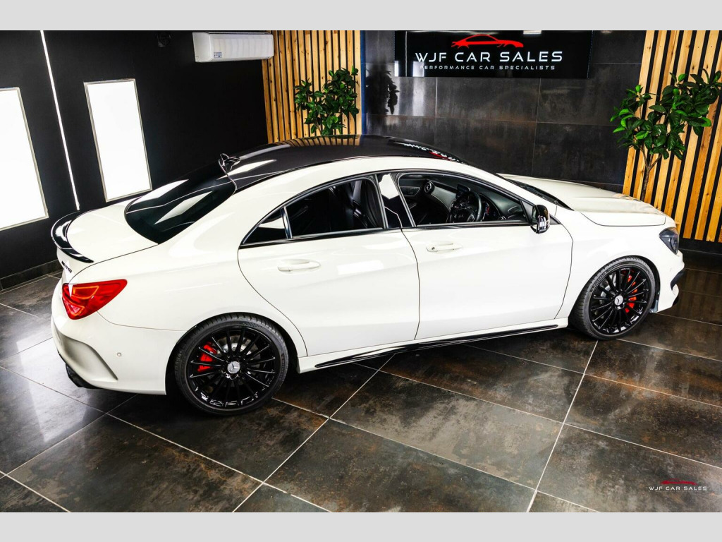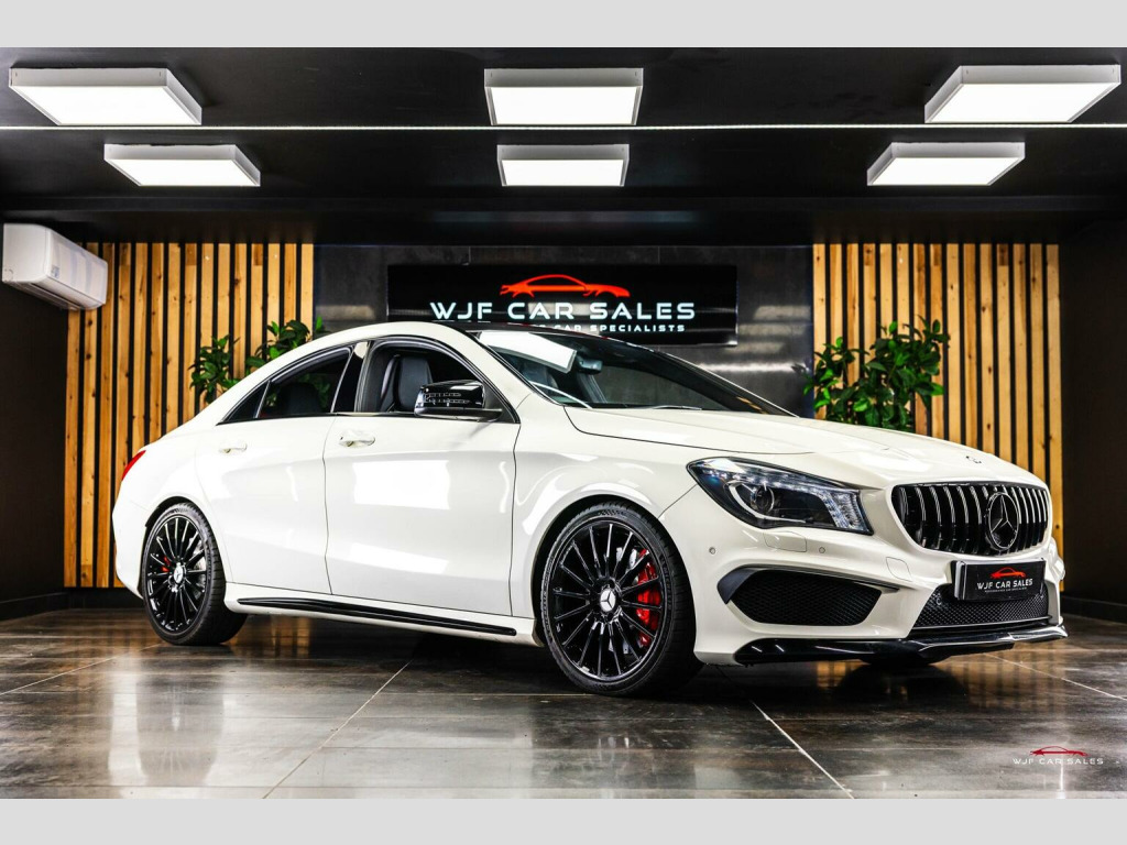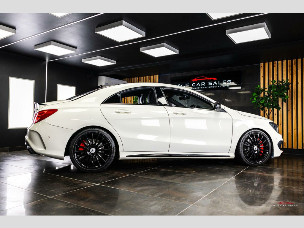 PLEASE SEE WEBSITE WWW.WJFCARSALES.CO.UK, WJF Car Sales Proudly Presents this March 2014 Registered, Mercedes Benz CLA45 AMG, Finished In Calcite White Paint, Covering 50516 Miles, Full Service History, Last Serviced in July 2025, Supplied with 2 Keys and all Documentation, 6 Months Parts and Labour Warranty, 6 Months Breakdown Cover. SPECIFICATION: 19 Inch AMG Multi Spoke Alloys, Active Parking Assist, AMG Performance Seats, Auto Bi-Xenon Headlights, Auto Dimming Mirrors, Blind Spot Monitoring, Bluetooth, Climate Control, Cruise Control, DAB Radio, Electric Adjustable Front Seats, Electric Folding Mirrors, Gloss Black Grill and Spoiler, Harman Kardon Audio, Heated Windscreen Washers, Isofix, Lane Assist, Lane Departure Warning, Memory Package, Multi Function Steering Wheel, Night Package, Parking Sensors, Red Brake Calipers, Reversing Camera, Road Sign Detection, Satellite Navigation, TPMS, USB Ports. SERVICE HISTORY:, 1st Service: 05/03/2015 @ 4983 Miles - Mercedes , 2nd Service: 20/04/2016 @ 8702 Miles - Mercedes, 3rd Service: 12/07/2019 @ 21493 Miles - Mercedes , 4th Service: 07/08/2020 @ 24646 Miles - Indy - Genuine Parts, 5th Service: 12/08/2021 @ 30135 Miles - Mercedes Specialist , 6th Service: 06/04/2023 @ 37812 Miles - Mercedes Specialist , 7th Service: 31/07/2024 @ 44232 Miles - Mercedes Specialist , 8th Service: 29/07/2025 @ 50035 Miles - Mercedes Specialist, FINANCE:, Funding Options Available From 9.9% APR, **Viewings By Appointment ONLY**, Home Delivery Available on our Transporter , Finance Available, Part Exchange Welcome, Reserve for only £200 (refundable), Youtube Video we recommend to watch on your smart TV in 4K, We accept card payments up to £1,000.00, for larger payments it is BACS(bank transfer) so please bring anything you may need to access your online banking on the day including secure keys, card readers etc. We will not release cars without cleared funds, We accept cash payments up to £8000 which are subject to a 1% banking fee. Please note a £350 admin fee is applicable for purchases funded by third party finance lenders.