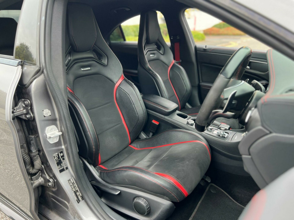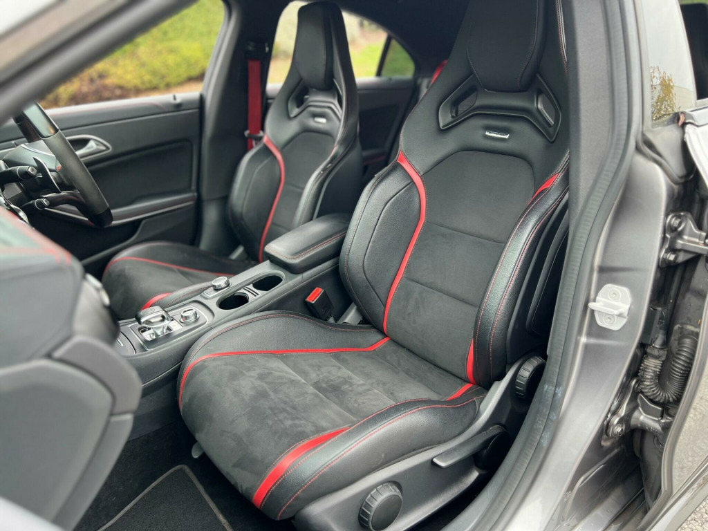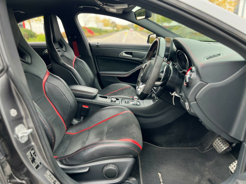 2016 Mercedes-Benz CLA 2.0 CLA45 AMG Coupe SpdS DCT 4MATIC Euro 6 (s/s) 4dr in Grey. Only 48000 warranted miles on the clock. Car comes with a 12 Month Warranty!!! MOT till 11th September 2026. Service History Available: 4 Services. Car starts and drives well with no mechanical faults. Full V5 Available. Good spec including: Sat Nav, Half Leather Seats, Bucket Seats, Exhaust Button, Leather Steering Wheel, Parking Sensors, Bi-Xenon Headlights, CD/DAB Radio/AUX/USB, Bluetooth, AC/Climate Control, Electric Windows, Electric Mirrors, Privacy Glass, Alloy Wheels, Cruise Control, Central Locking and many more. Nationwide Delivery Available. P/X Welcome. HPI Clear. ULEZ Compliant. Any questions don't hesitate to contact us on 07443456706. Whatsapp available as well in alloy wheels - amg 10 spoke design - painted in titanium grey with high-sheen finish, abs - anti-lock braking system, amg bodystyling, amg drive unit with leather-trimmed gear shift, amg high-performance braking system with 3-stage esp, amg lettering on boot and turbo 4matic lettering on front wings, amg performance seats, amg radiator grille with twin louvre, amg spoiler lip, amg sports exhaust system with two twin black chrome plated tailpipes, amg sports suspension, asr - acceleration skid control, attention assist, active bonnet - pedestrian safety measure which detects an impact and raises bonnet by 65mm, active brake assist with hold function - hill start assist - priming and dry braking in the wet, active braking assist, air conditioning - thermotronic luxury automatic climate control - two-zone, air vents with black surround - red insert and cruciform nozzle, airbag - kneebag for driver, airbags - automatic front passenger airbag deactivation, airbags - driver and front passenger, airbags - sidebag for driver and front passenger - combined thorax-pelvis bag, airbags - windowbags, ambient lighting - interior door handles, anti-theft protection package, armrest - front on centre console with fore-aft adjustment and contrast stitching with stowage compartment beneath, audio 20 cd multimedia system, beltline strips - black, bluetooth interface with hd voice-capable hands-free function and audio streaming, brake calipers with amg lettering at front and rear, braking - adaptive brake lights - flash under emergency braking, brushed stainless steel sports pedals with rubber studs, bumpers - body coloured, cd player - mp3-wma-aac-wav-compatible, childproof locks - manually operated for rear doors and electrically operated for rear power windows, controller on centre console, crash-responsive emergency lighting, cruise control with limiter, dab digital radio tuner, designo seat belts in red, door handles - body coloured, door mirrors - electrically adjustable and heated, door mirrors - painted black with integrated led indicators and aspherically curved mirror glass, double cup holder in centre console, dynamic select, esp cornering dynamics assist - amg tuned, electric parking brake, electric windows - 4, electronic key - chrome surround, first aid kit, floor mats - red stitched edging - amg lettering, fluid level warning indicator for fuel - oil - coolant and washer fluid, footwell lighting - front and rear, glass - rear windscreen - heated with timer control, headlamp assist - automatic headlamp activation in dark conditions, headlamps - led high performance with integrated led daytime running lights, isofix and top-tether child seat fixing points in rear - two outer seats, illuminated front door sills with amg lettering, illuminated glove compartment, instrument cluster - amg instrument cluster with colour display and amg menu, instrument cluster - fluid level warning indicator for fuel - oil - coolant and washer fluid, instrument cluster - outside temperature display, instrument cluster - service indicator assyst, instrument cluster - trip computer in multi-function display showing current fuel consumption, instrument cluster with 4 analogue dials and needles suspended in six-o-clock position, interior lighting - courtesy white and warning red lights in the front doors and boot lid, interior lighting - rear interior lighting with integral reading lamps and locator lighting, interior lighting - sun visor with illuminated vanity mirror for driver and front passenger, led rear tail lights, lighting in storage compartment and sun visors with illuminated vanity mirrors, load securing rings in luggage compartment, media display - 7in, mercedes me connect, parking pilot, power steering - amg speed sensitive sports, privacy glass from b-pillar backwards, radio with twin tuner and traffic information decoder - tp-ta, remote central locking and crash sensor with emergency opening function, roof lining - black, sd card slot, seat belt reminder - front and rear, seat belts - rear three-point - 3, seat occupancy sensor - front passenger seat, seats - front seats - height adjustable, seats - front seats with adjustable seat cushion angle, seats - rear seat backrests - split folding 1-3 - 2-3, side skirts - body coloured, smartphone integration, steering column - manually adjustable for height and reach, steering wheel gear shift paddles and race start function, steering wheel - 3-spoke 12-button amg performance steering wheel in nappa leather-dinamica microfibre, tirefit with tyre inflation compressor, third brake light in led technology, trim - amg design in black-red, two usb connections in centre armrest for external audio devices and storage media, tyre pressure monitoring system, warning triangle, wiper system - windscreen wipers including rain sensor with two sensitivity stages