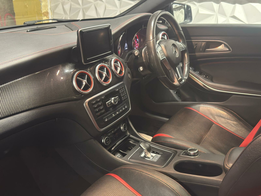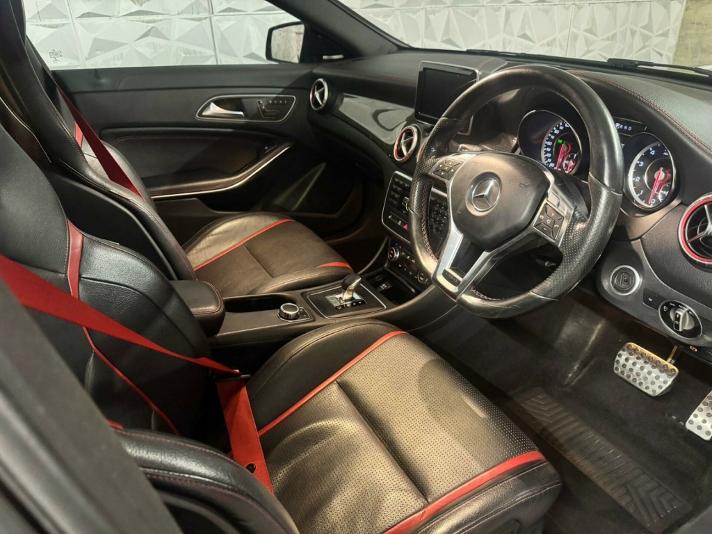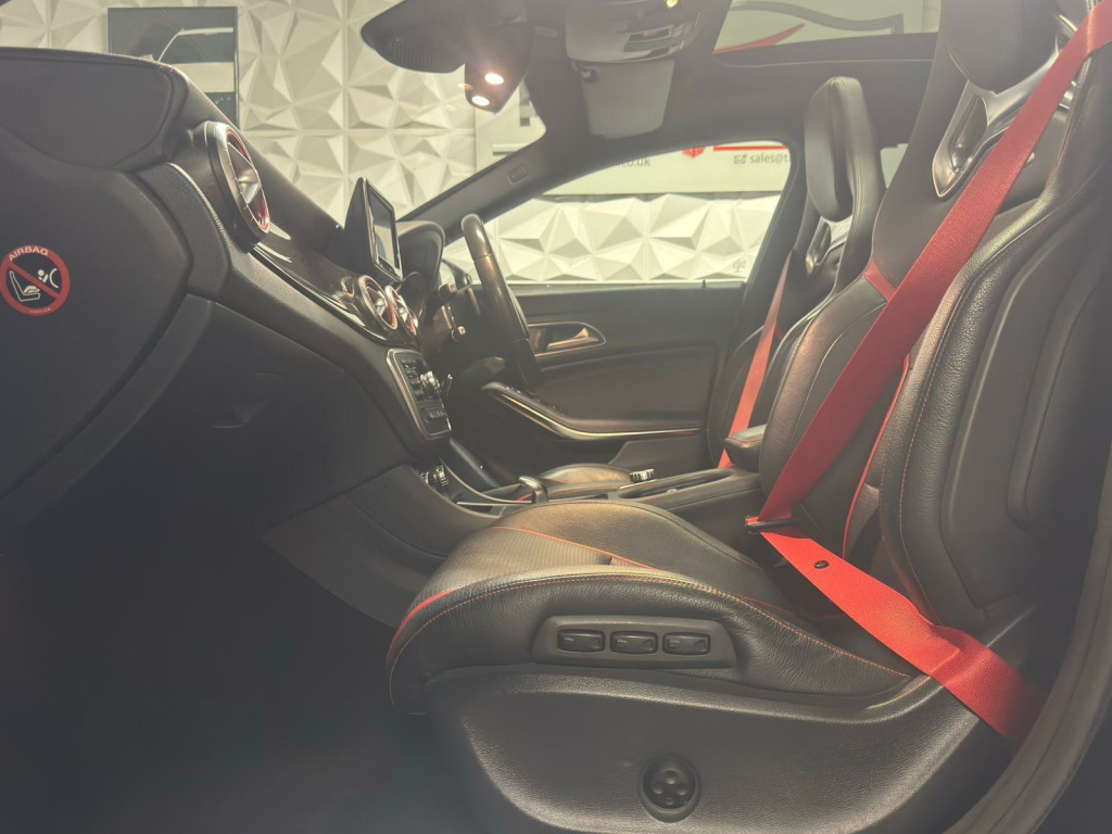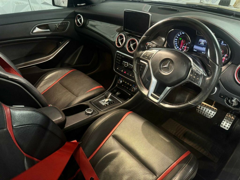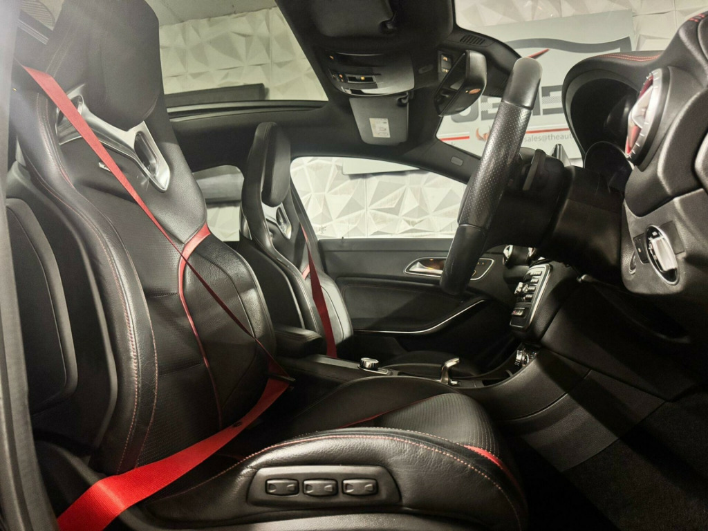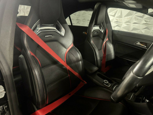 This 2015 Mercedes Benz CLA45 AMG boasts a full service history and a clear vehicle history check, ensuring peace of mind for its next owner. This striking AMG model features a powerful 2.0L petrol engine paired with a four wheel drive system, delivering exhilarating performance. It meets Euro 6 emission standards and benefits from an MOT valid until March 2026. The vehicle was last serviced on 26 November 2025 at 81,110 miles. Notable features include front and rear parking sensors with parking assistance, automatic headlight activation, dual zone automatic climate control, and Bluetooth connectivity.The CLA45 AMG stands out with its impressive acceleration, achieving 0-62mph in just 4.6 seconds. This performance figure indicates a superior driving experience compared to many other vehicles in its class. The combination of its advanced technology, comprehensive service record, and dynamic capabilities makes this Mercedes Benz a compelling choice for those seeking both luxury and sportiness.. 12V Socket, 19in Alloy Wheels - AMG Multi-Spoke Design - Painted in Titanium Grey, 5.8-inch Tablet-Style Colour Display, ABS - Anti-Lock Braking System, AMG Bodystyling, AMG Bodystyling - Front Apron with Splitter in High Gloss Black, AMG Bodystyling - Rear Apron with Trim Strip in High Gloss Black, AMG Bodystyling - Side Sill Panels with Inserts in High Gloss Black, AMG Drive Unit with Leather-Trimmed Gear Shift, AMG High-Performance Braking System, AMG Instrument Cluster with Colour Display and AMG Menu, AMG Performance Seats - Contoured Seat Shape - Head Restraints and AMG Badge, AMG Radiator Grille with Twin Louvre, ASR - Acceleration Skid Control, ATTENTION Assist, Active Bonnet - Pedestrian Safety Measure which Detects an Impact and Raises Bonnet by 65mm, Active Park Assist, Adaptive Brake Assist with Hold Function and Hill Start Assist, Adaptive Brake Lights, Air Vents with High Gloss Black Surround - Red Insert and Cruciform Nozzle, Airbag - Drivers Knee, Airbag - Dual-Stage - Front Passenger, Airbags - Dual-Stage - Driver, Airbags - Head for Driver and Front Passenger, Airbags - Windowbags for Driver and Front Passenger, Alarm System with Immobiliser and Interior Protection, Ambient Lighting in the Four Door Recesses - Door Pulls and Door Trim, Audio 20 Radio-CD, Automatic Child Seat Recognition Sensor, Automatic Climate Control - Two-Zone, BAS - Brake Assist, Beltline Strips - Black, Bluetooth, Bumpers - Body-Coloured, Cable included for iPod Connectivity, Centre Armrest - Front with Storage, Childproof Locks - Manually Operated for Rear Doors and Electrically Operated for Rear Power Windows, Collision Prevention Assist, Controller on Centre Console with Chrome Surround, Crash-Responsive Emergency Lighting, Cruise Control with SPEEDTRONIC Variable Speed Limiter, Cup Holder - Twin, DAB Digital Radio Tuner, Door Handles - Body-Coloured, Door Mirror Housings - High Gloss Black, Door Mirrors - Electrically Adjustable and Heated, Door Mirrors - Integrated LED Indicators, ESP - Electronic Stability Programme, Electric Parking Brake, Electronic Key - Chrome Surround, Exhaust System - AMG Sports with Black-Chrome Plated Tailpipes, First Aid Kit, Floor Mats - AMG, Fluid Level Warning Indicator for Fuel - Oil - Coolant and Washer Fluid, Footwell Lights in Front, Glove Compartment - Illuminated, Headlight Assist - Automatic Headlight Activation, Headlight Wash, Headlights - Bi-Xenon, Headlights - Integrated Daytime Running Lights - LED, Heated Rear Window with Timer Control, High Level Third Brake Light - LED, ISOFIX and Top-Tether Child Seat Fixing Points in Rear - Two Outer Seats, Illuminated AMG Door Sills, Indicators - Lane Change Function, Light Failure Indicator, Load-Securing Rings in Luggage Compartment, Luggage Compartment Cover, Media Interface, Outside Temperature Gauge, Parking Sensor - Front, Parking Sensor - Rear, Power Steering - Speed-Sensitive, Pre-Wiring for Becker Map Pilot Navigation System, Privacy Glass, Radio Aerial Roof Spoiler, Rain-Sensing Windscreen Wipers, Rear Fog Light, Rear Seats - Split Folding 1-3 - 2-3, Rear Tail Lights - LED, Remote Central Locking, Roof Lining - Black, Seat - Drivers Height-Adjustable, Seat - Passenger Height-Adjustable, Seat Belt Reminder - Front and Rear, Seat Comfort Package - Seat Height Adjusters and Seat Cushion Angle Adjustment on Front Seats, Seat Occupancy Sensor - Front Passenger Seat, Service Indicator ASSYST, Sidebags for Driver and Front Passenger, Speakers x6, Sports Pedals with Rubber Studs, Steering Column - Manually Adjustable for Height and Reach, Steering Wheel - 3-Spoke - Trimmed in Leather with Perforated Leather in Grip Area, Steering Wheel - Multi-function, Steering Wheel - Red Stitching, Steering Wheel - Sports - Flat Bottom Design, Storage Compartment Beneath Load Compartment Floor, Sun Visors with Illuminated Vanity Mirrors, Suspension - Sports - Engineered by AMG, TIREFIT Tyre-Sealant Kit, Telephone Keypad, Trim - Light Aluminium with Longitudinal G. Full service history