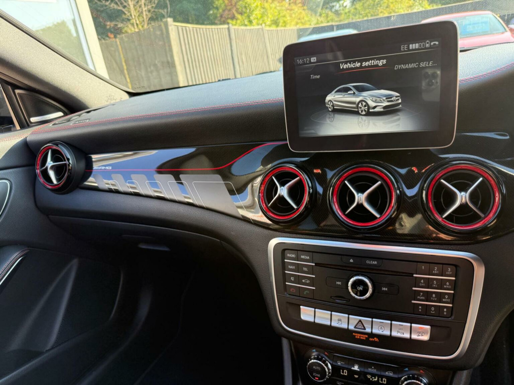*MASSIVE SPEC* , see last photo for spec sheet, This 2016 Mercedes Benz CLA45 AMG is a striking example of performance and luxury. As a Euro 6 compliant model, it combines its potent 2.0 litre petrol engine with a sophisticated four wheel drive system, ensuring exhilarating yet composed handling. The AMG trim level signifies a focus on dynamic driving, enhanced by LED High Performance headlamps with integrated daytime running lights and automatic activation for optimal visibility. Inside, youll find the THERMOTRONIC luxury automatic climate control, offering a dual zone environment for personalised comfort, while the Bluetooth interface with HD voice capability and audio streaming keeps you connected. Manoeuvring is made effortless with the Parking Pilot system, featuring both front and rear sensors. The performance of this CLA45 AMG is truly exceptional, capable of accelerating from 0 to 62 miles per hour in a mere 4.2 seconds. This remarkable acceleration demonstrates its superior engineering and places it ahead of many other vehicles in its class. The combination of its powerful engine, advanced drivetrain.