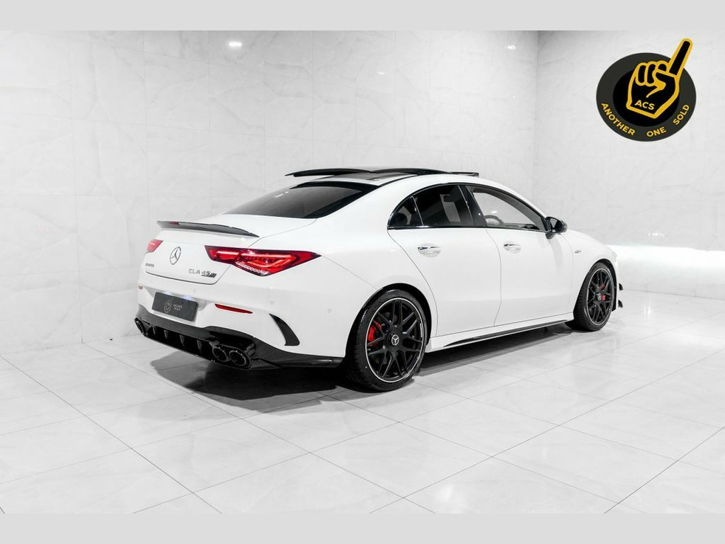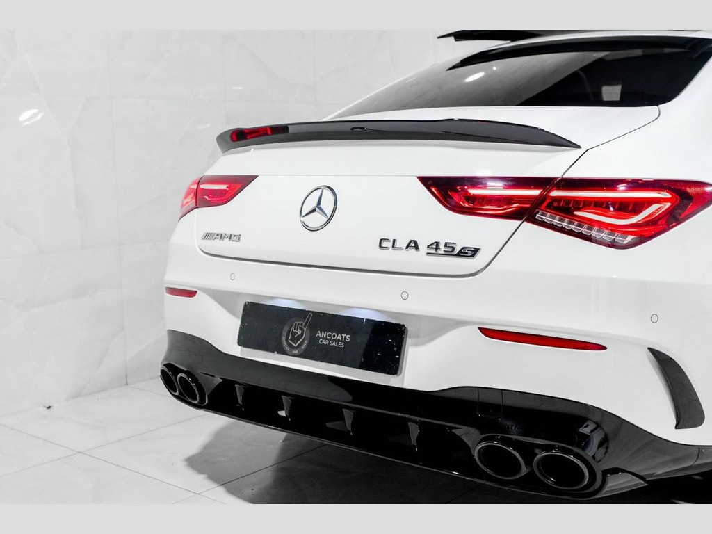 19in Alloy Wheels - AMG Forged Cross-Spo, 3-Stage Electronic Stability Programme -, ABS - Anti-Lock Braking System with BAS , AMG Aerodynamics Package, AMG CLA 45 S Bodystyling, AMG Centre Console - Decidedly Sporty wi, AMG Centre Console is Finished with Trim, AMG Drivers Package, AMG Dynamic Select with a Choice of Driv, AMG High-Performance Braking System with, AMG Leather Package, AMG Menu with Sporty Additional Informat, AMG Night Package, AMG Performance 4MATIC Plus with Torque , AMG Performance Seats, AMG Specific Radiator Grille in High-Glo, AMG Speed-Sensitive Steering with Two Se, AMG Spoiler Lip in Body Colour, AMG Sport Pedals in Brushed Stainless St, AMG Steering Wheel Buttons,