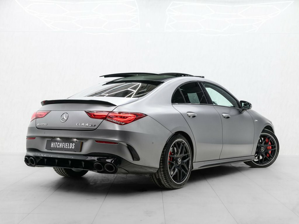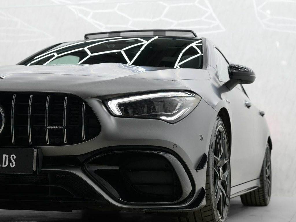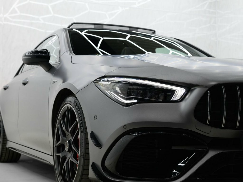 Mountain Grey, 19in Alloy Wheels - AMG Forged Cross-Spo, 3-Stage Electronic Stability Programme -, ABS - Anti-Lock Braking System with BAS , AMG Aerodynamics Package, AMG Bodystyling, AMG CLA 45 S Bodystyling, AMG Centre Console - Decidedly Sporty wi, AMG Centre Console is Finished with Trim, AMG Drivers Package, AMG Dynamic Select with a Choice of Driv, AMG High-Performance Braking System with, AMG Leather Package, AMG Menu with Sporty Additional Informat, AMG Night Package, AMG Performance Seats, AMG Specific Radiator Grille in High-Glo, AMG Speed-Sensitive Steering with Two Se, AMG Sport Pedals in Brushed Stainless St, AMG Steering Wheel Buttons, AMG Suspension, AMG Track Pace - Records L