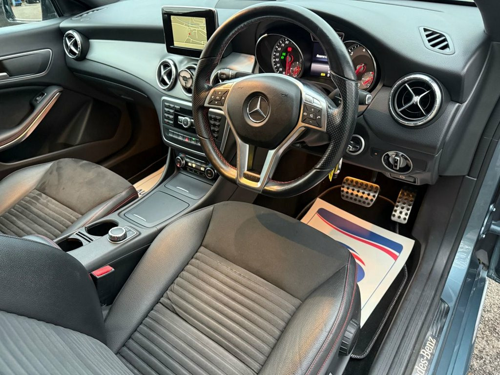 The Mercedes CLA is a small saloon with sleek styling reminiscent of the bigger CLS. Elegant and sporty, with efficient diesel engine, it should attract a younger crowd to the brand. With its good looks, impressive quality, smart technology and punchy, efficient engines, the Mercedes CLA is a very desirable car. Reasons to buy - It's a desirable car, Pretty well equipped, Aerodynamic shape improves efficiency. Just arrived in with us is this beautiful Mercedes-Benz CLA220 AMG Line covering only 31k genuine miles from new. Finished in Universe Blue. It has also had a Night package and privacy glass installed along with AMG body styling to the front and rear bumpers and side aprons. The vehicle sit on 18" AMG 5 twin spoke alloy wheels. We have 2 fully functioning keys for the vehicle. Service history with a total of 6 services carried out at 8k, 11k, 14k, 18k, 21k and most recent completed by ourselves at 31k. We will be putting a new mot on the vehicle with no advisories present. Looking into the interior and Mercedes have detailed the vehicle great, you will see a 3 spoke perforated leather steering wheel with multi function controls and gear shift paddles, Sports seats finished in Artico leather with Dinamica microfibre and contrasting red stitching, Garmin Map Pilot satellite navigation system plus much more the Mercedes have great specification as standard all can be seen in vehicle features. All viewings and test drives are more than welcome, if you require any Universe Blue, 12V Socket, 18in Alloy Wheels - AMG 5-Twin-Spoke Des, 5.8-inch Tablet-Style Colour Display, ABS - Anti-Lock Braking System, AMG Bodystyling - Front and Rear Apron, AMG Bodystyling - Side Skirts, ASR - Acceleration Skid Control, ATTENTION Assist, Active Bonnet - Pedestrian Safety Measur, Active Park Assist, Adaptive Brake Assist with Hold Function, Adaptive Brake Lights, Air Vents with Chrome Surround and Cruci, Airbag - Drivers Knee, Airbag - Dual-Stage - Front Passenger, Airbags - Dual-Stage - Driver, Airbags - Head for Driver and Front Pass, Airbags - Windowbags for Driver and Fron, Alarm System with Immobiliser and Interi, Audio 20 Radio-CD, Automatic Child Seat Recognition
